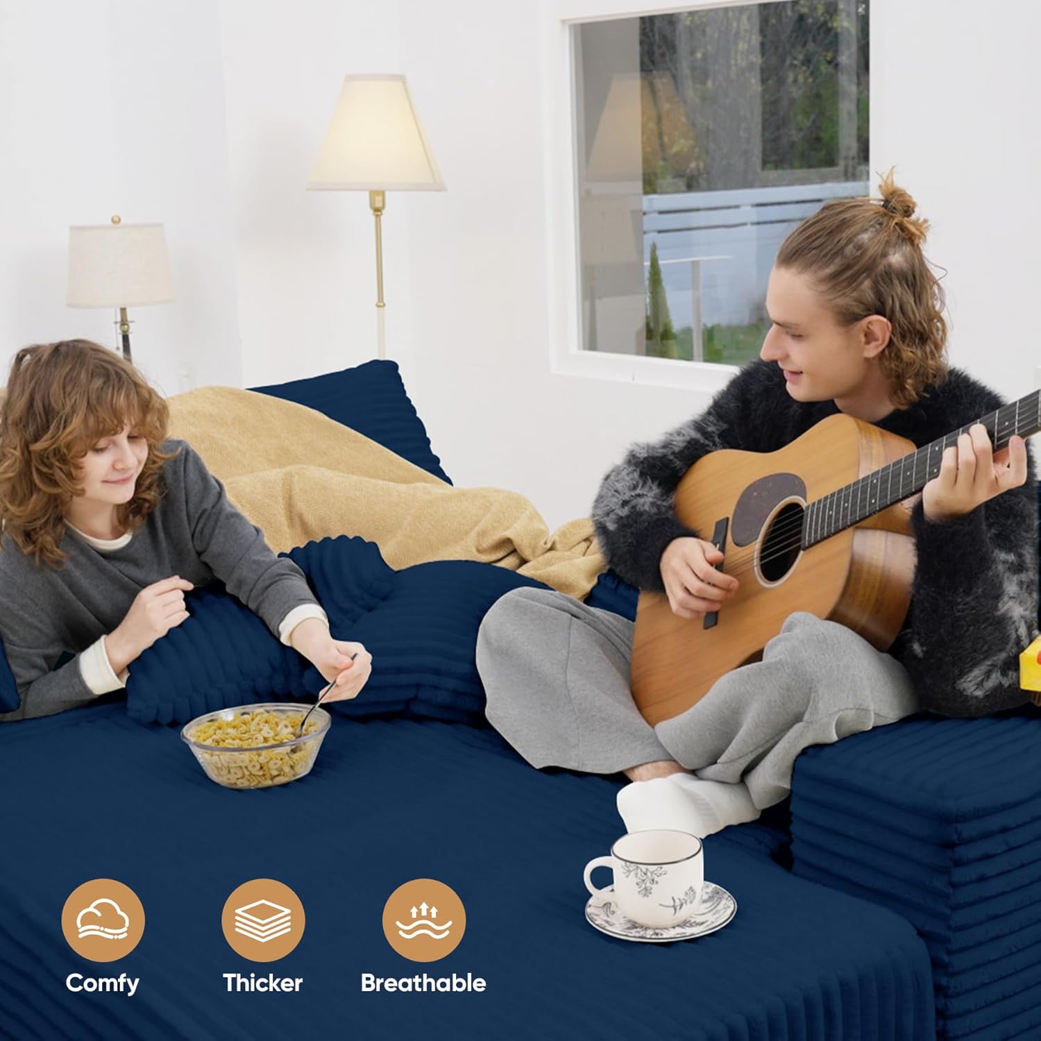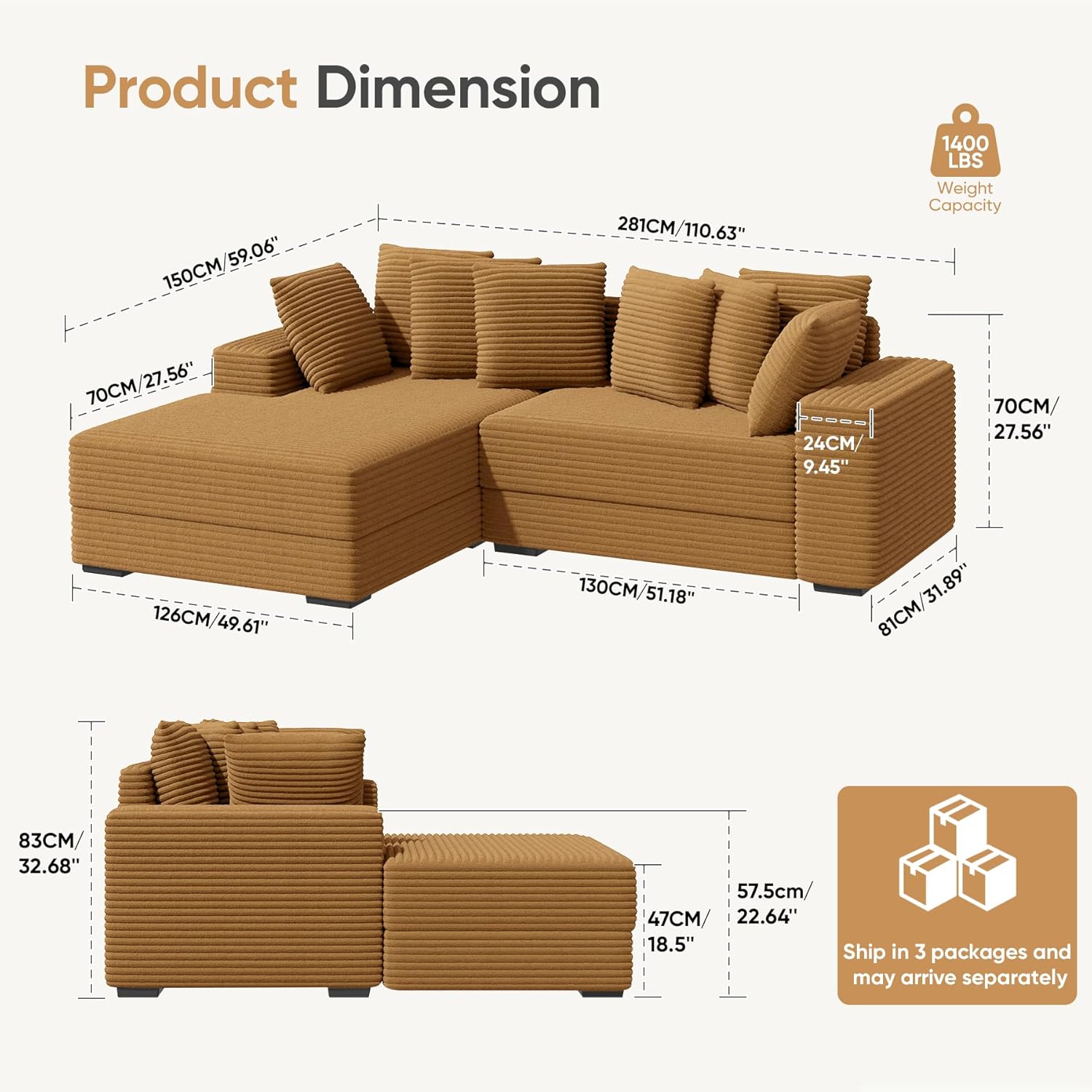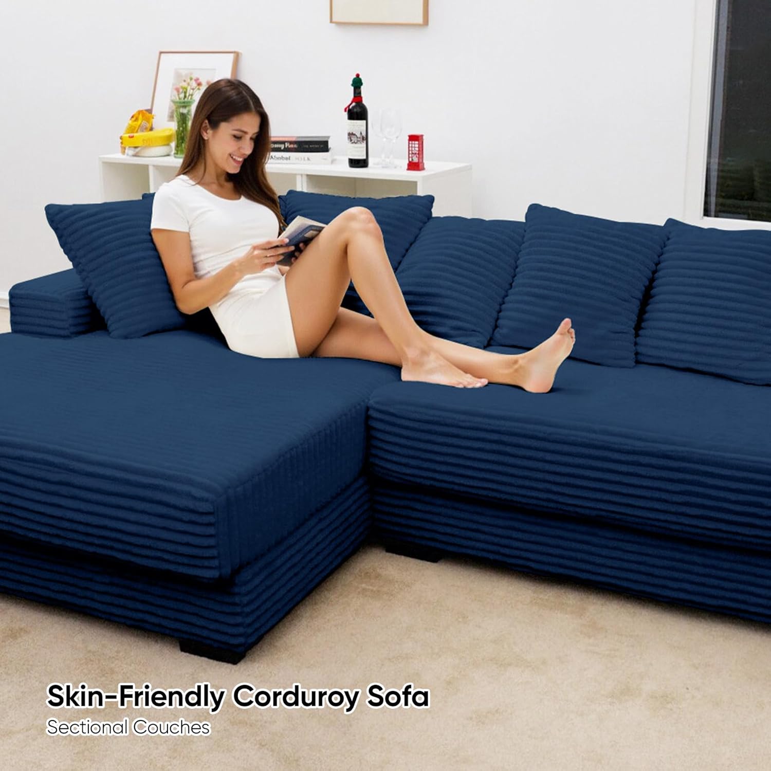 Luxanimarion 111” L-Shaped Cloud Sofa – Reversible Corduroy 8 Pillows