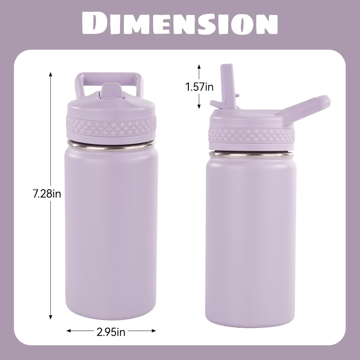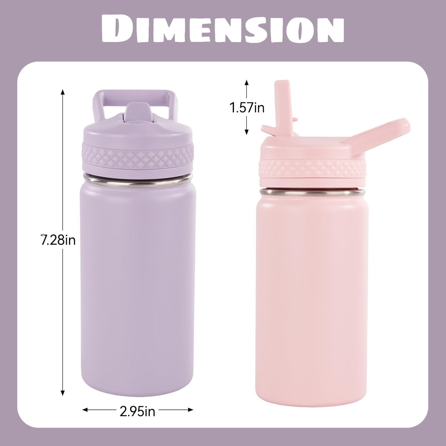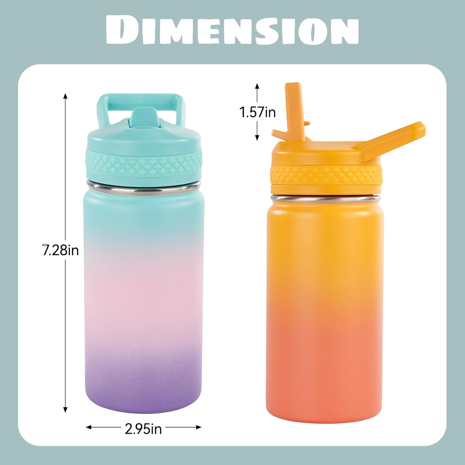 Kerilyn 12oz Insulated Kids Water Bottle Stainless Steel Straw Lid BPA-Free