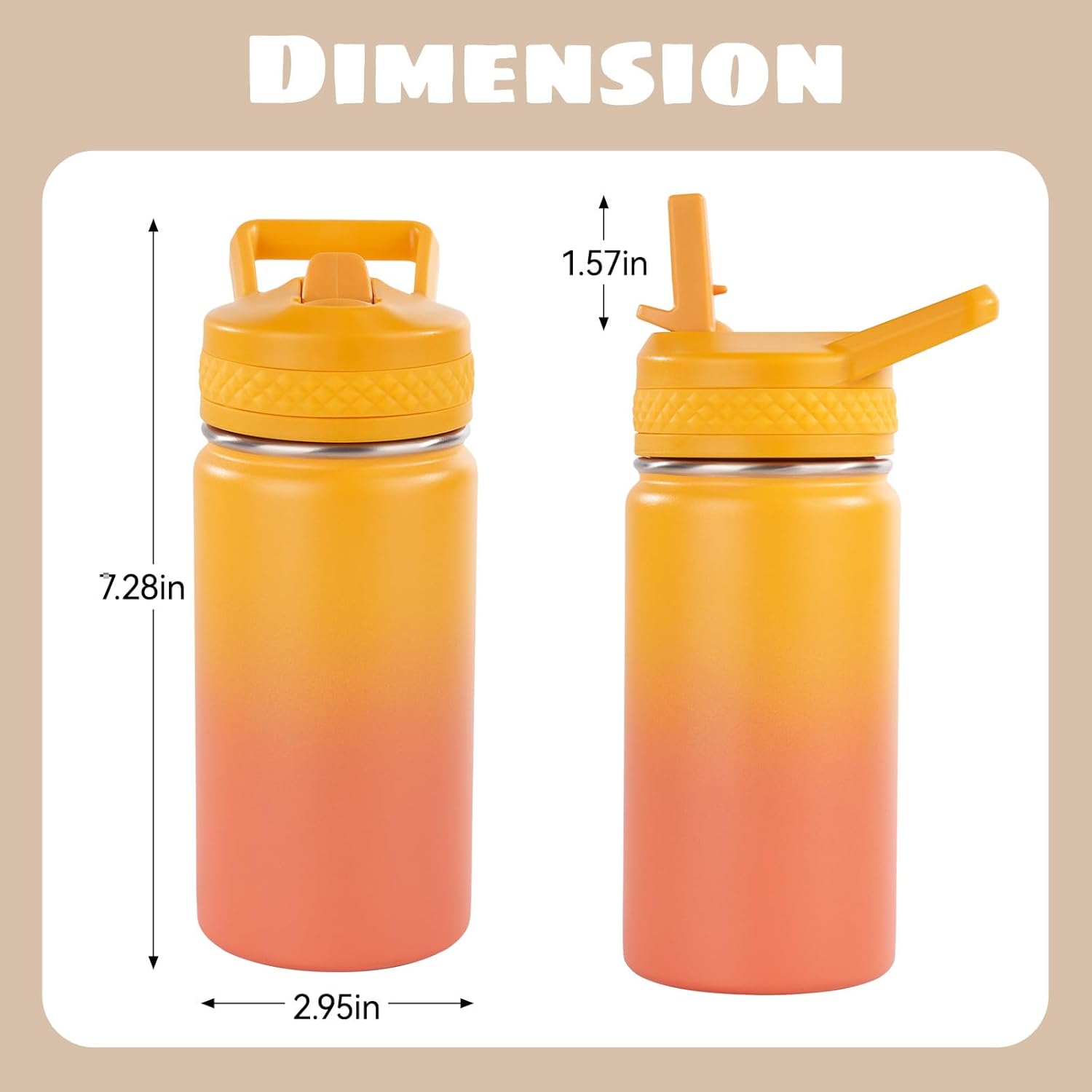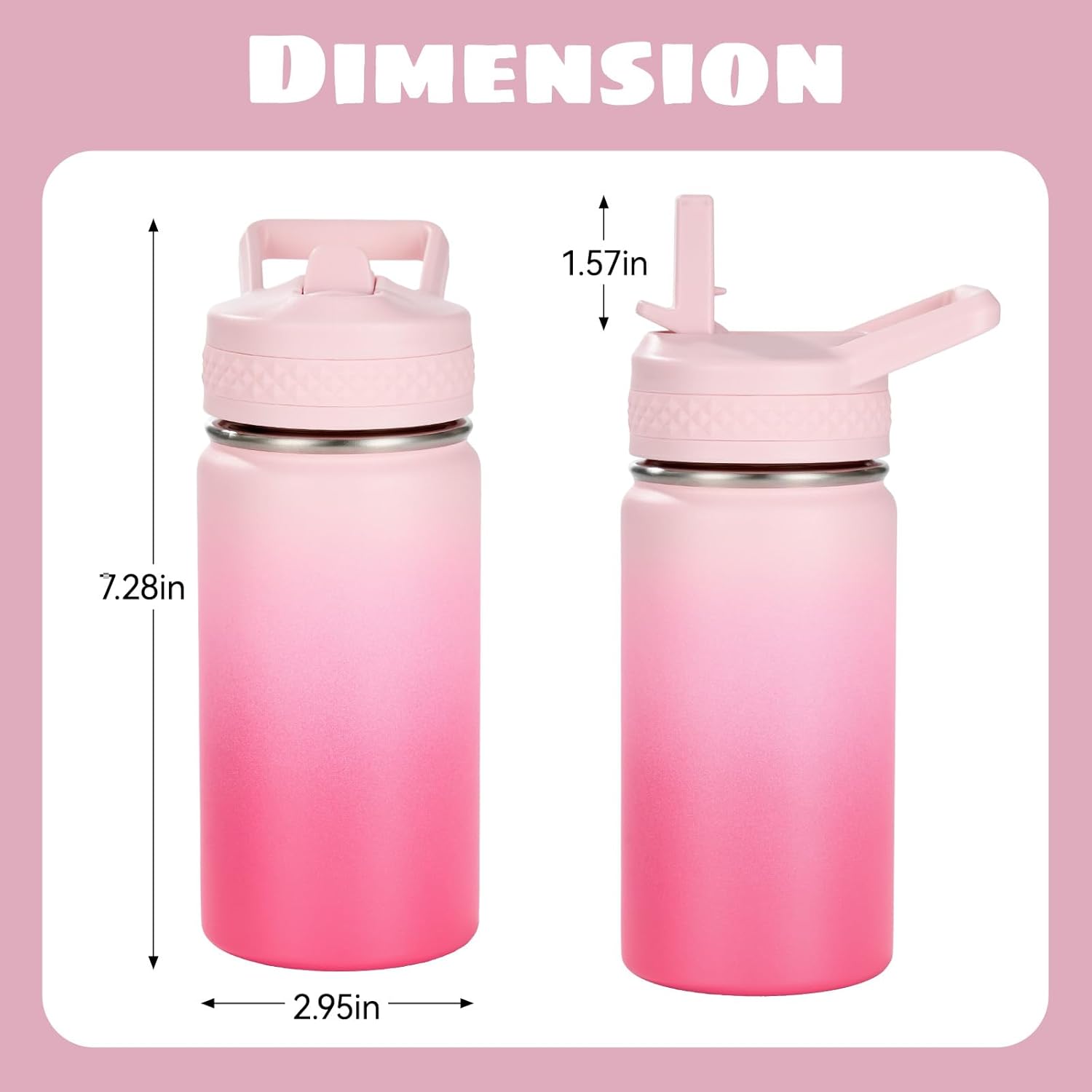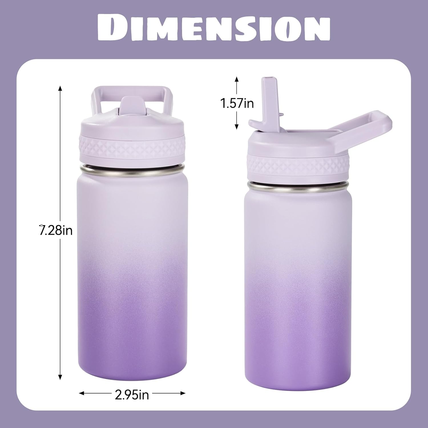 Kerilyn 12oz Insulated Kids Water Bottle Stainless Steel Straw Lid BPA-Free