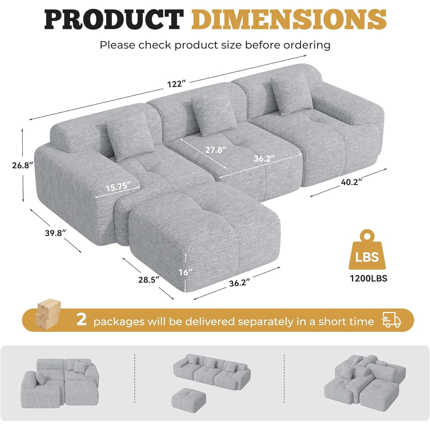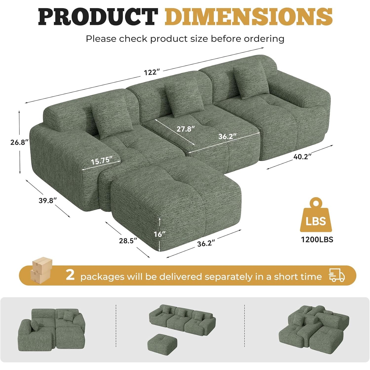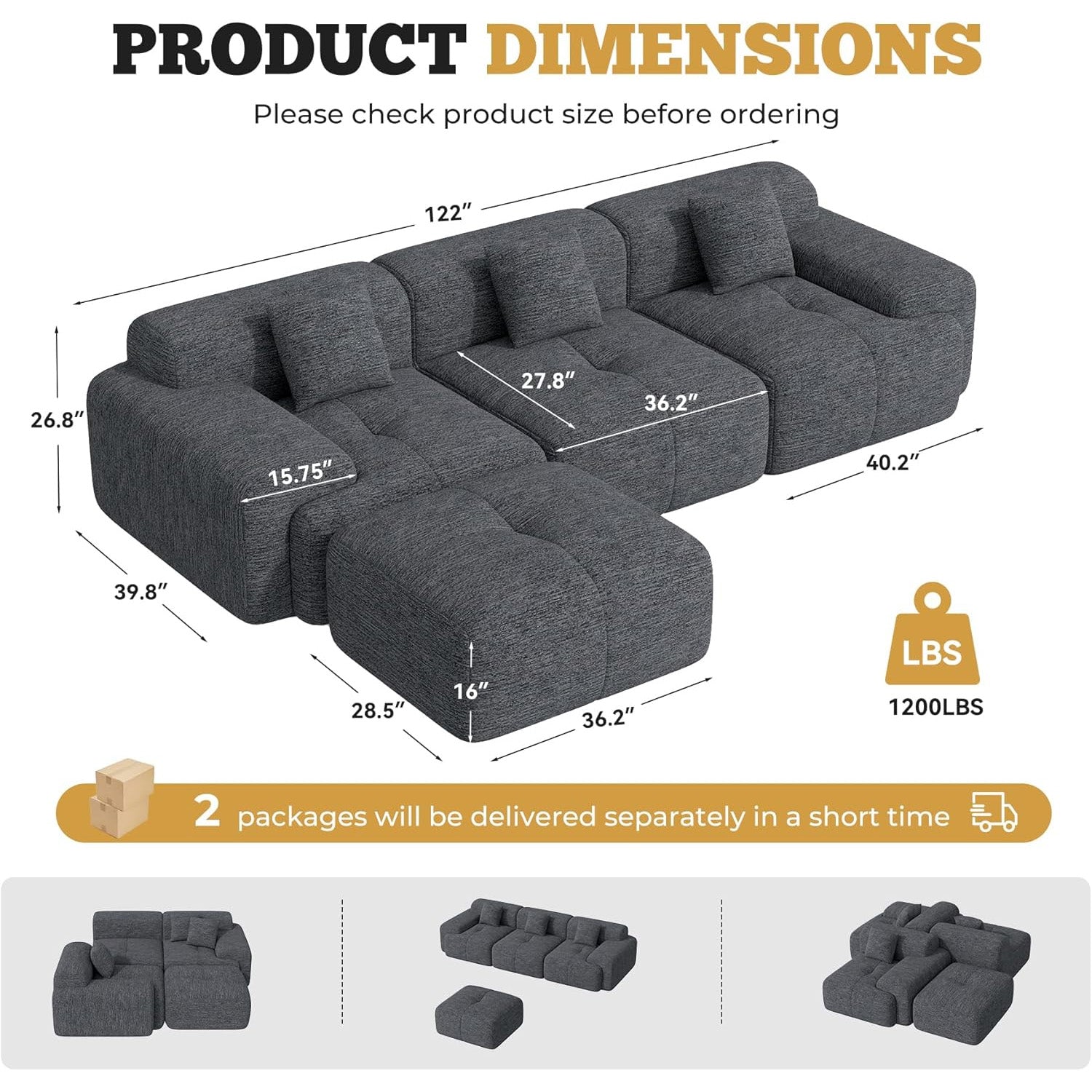 Measuring **118” wide**, with **26.8” deep seats** and **15” wide armrests**, this modular sectional offers generous seating for family and friends. Whether in your **living room, bedroom, or home office**, it creates a cozy, inviting atmosphere that’s perfect for movie nights, naps, or solo reading. 📺💤