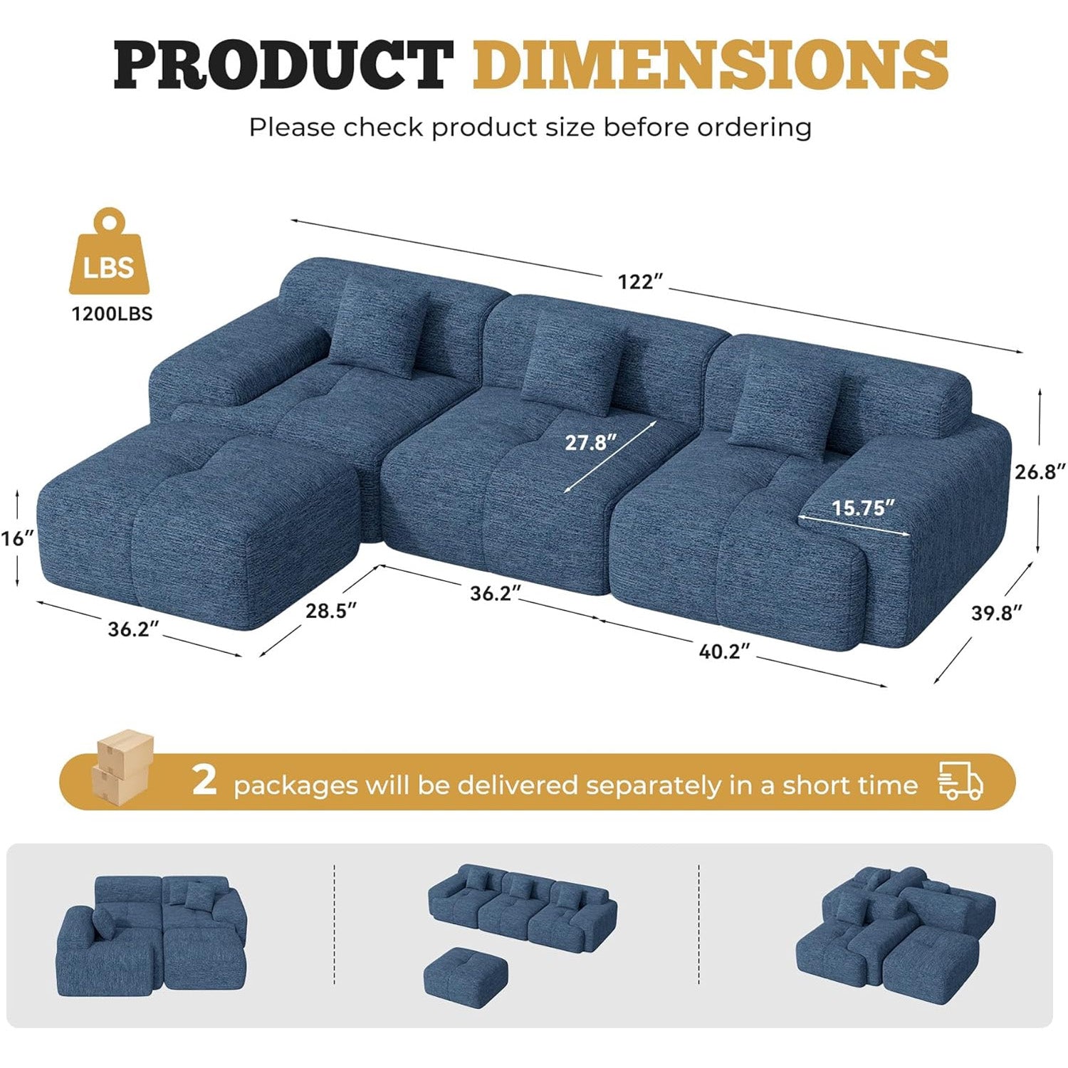 Say goodbye to confusing instructions and missing screws! Your cloud couch arrives **pre-assembled and ready to use**. Just: