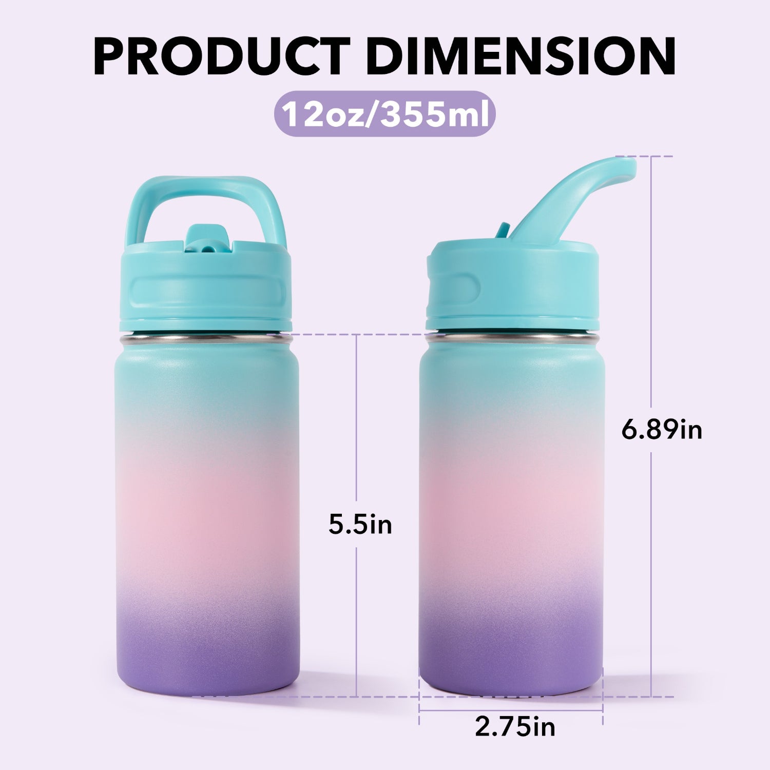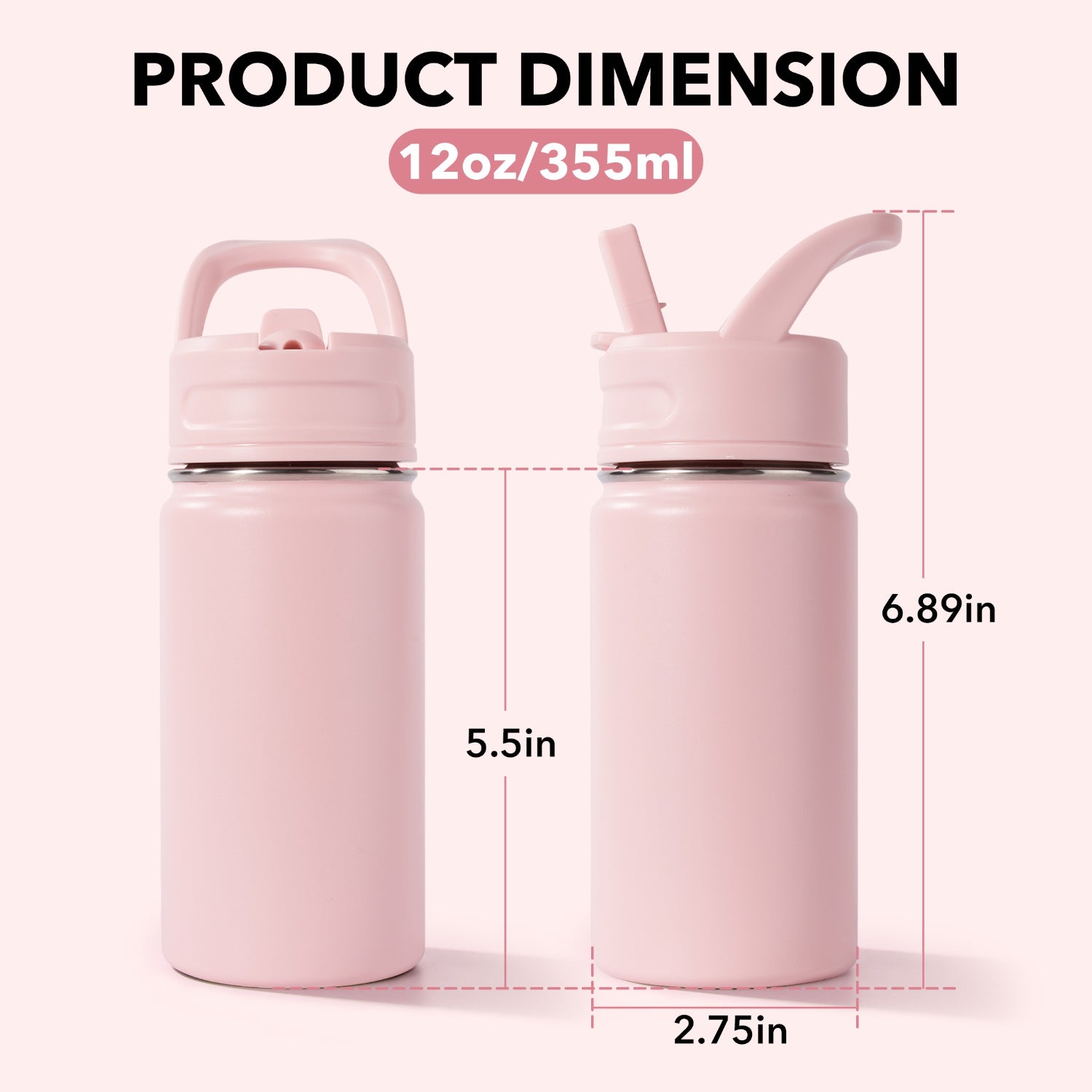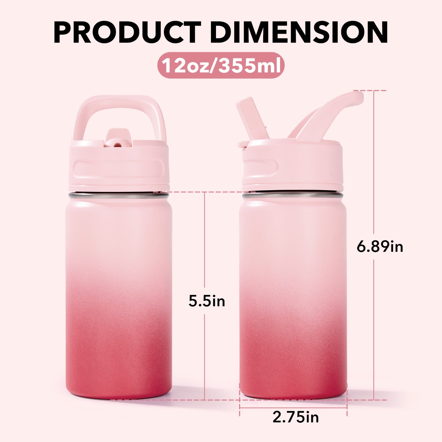 Kerilyn 12oz Stainless Steel Kids Water Bottle – Insulated Leak-Proof with Straw