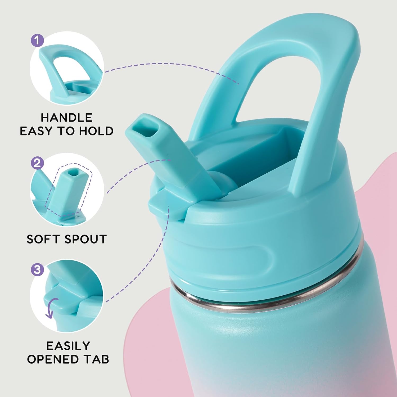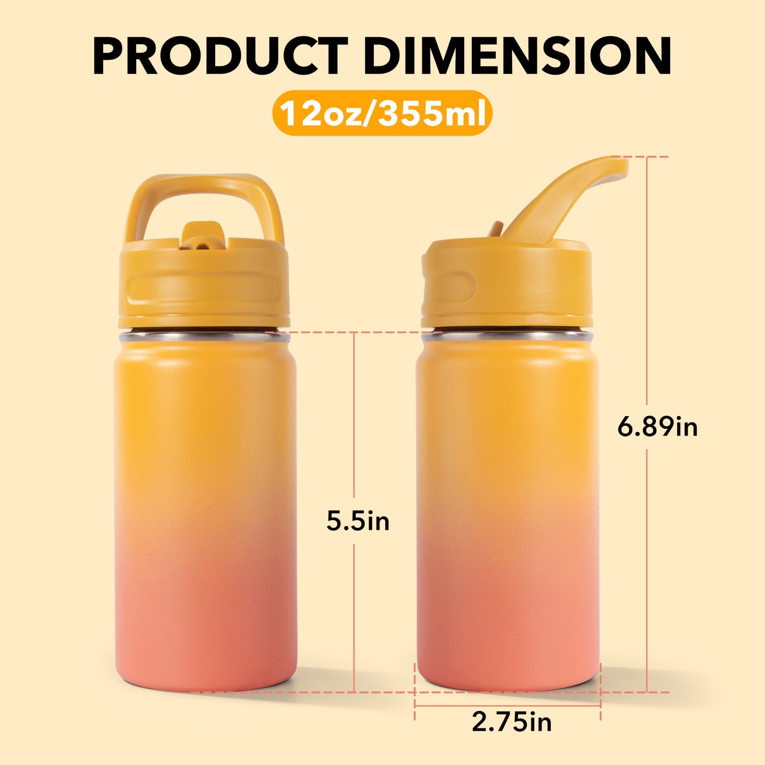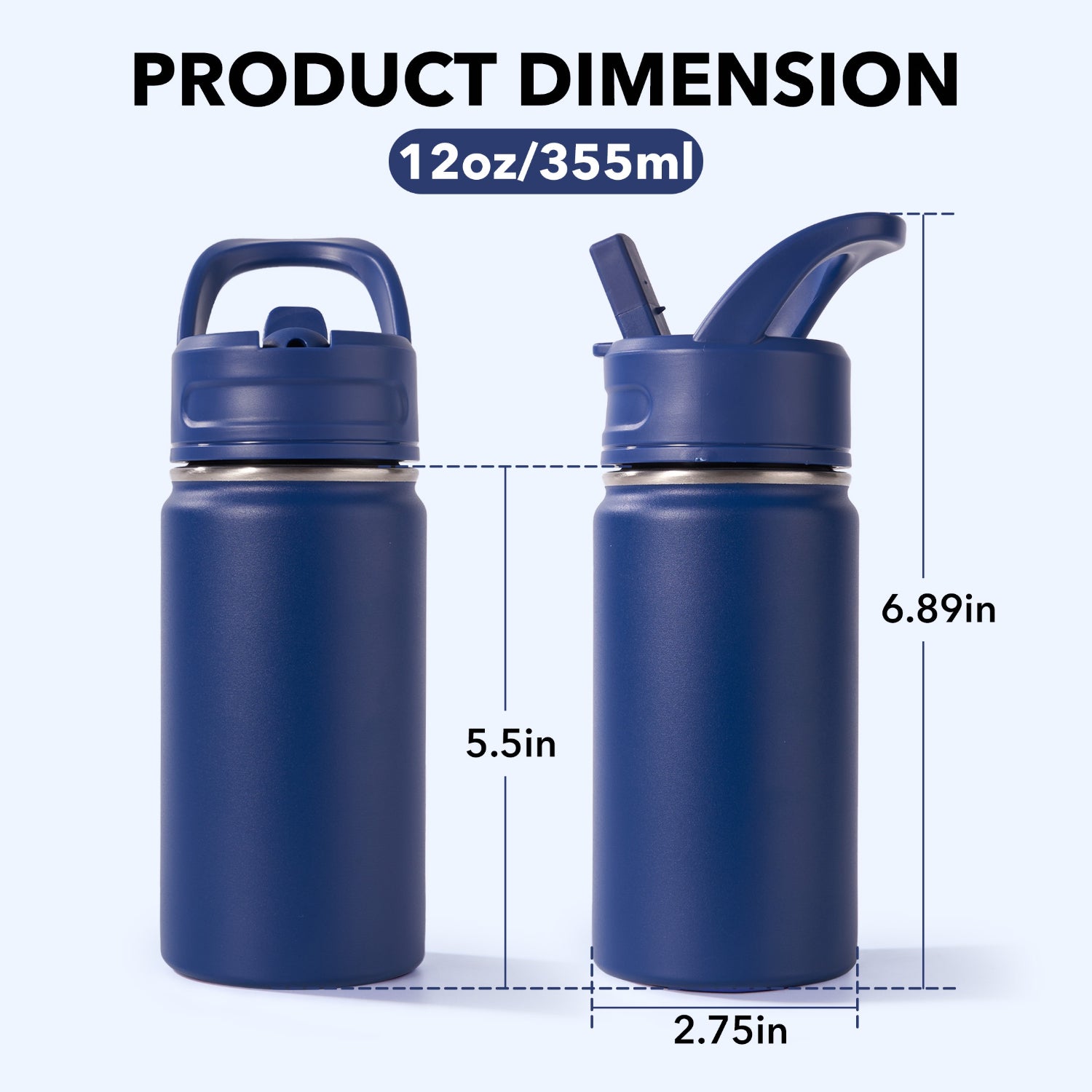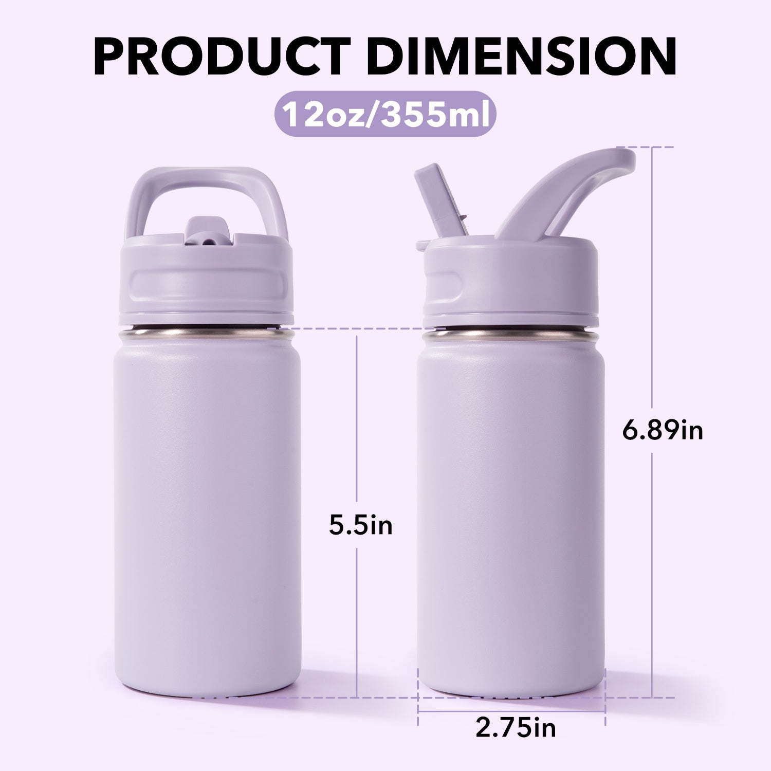 Kerilyn 12oz Stainless Steel Kids Water Bottle – Insulated Leak-Proof with Straw