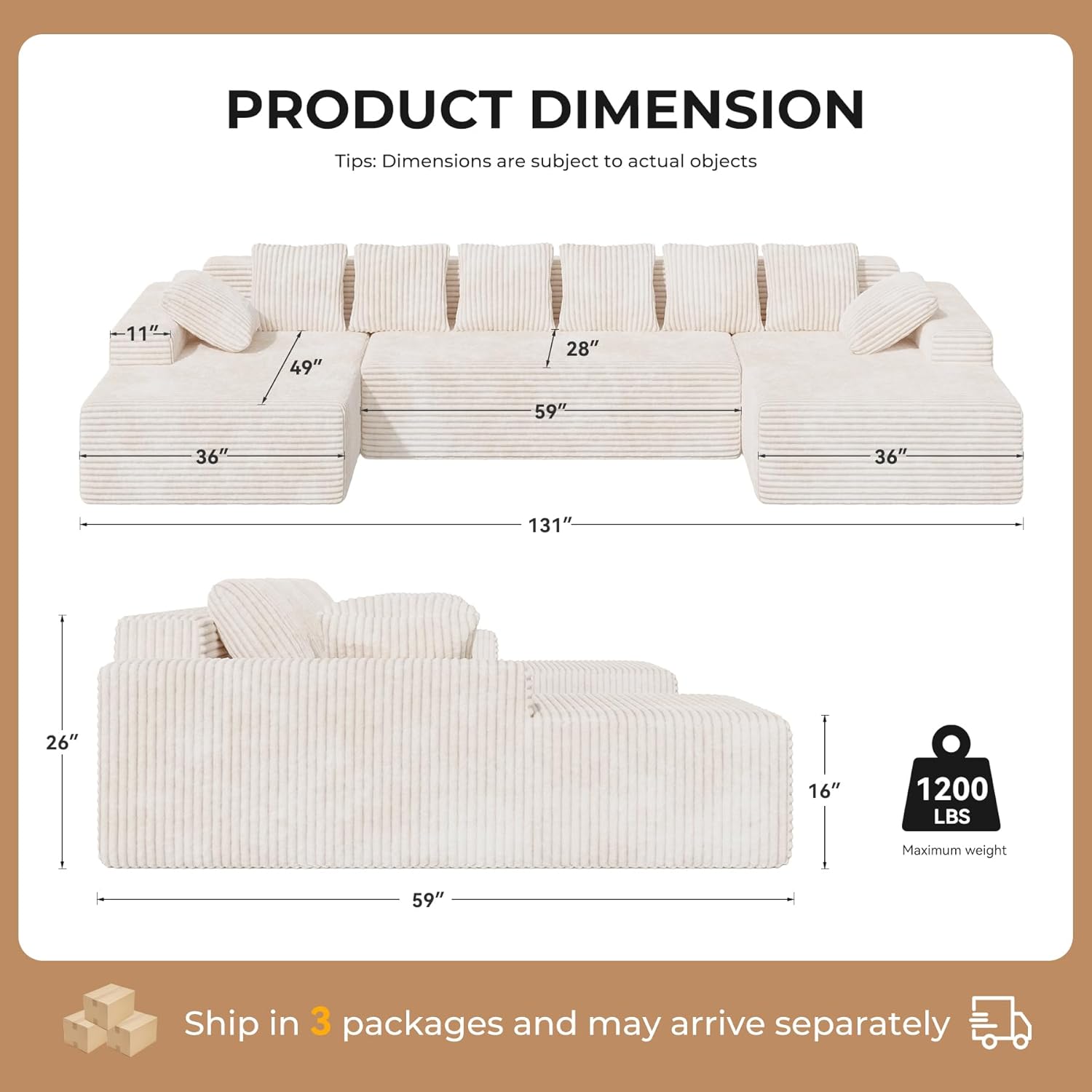 Luxanimarion 131'' Cloud Sectional Couches with Chaise Lounge