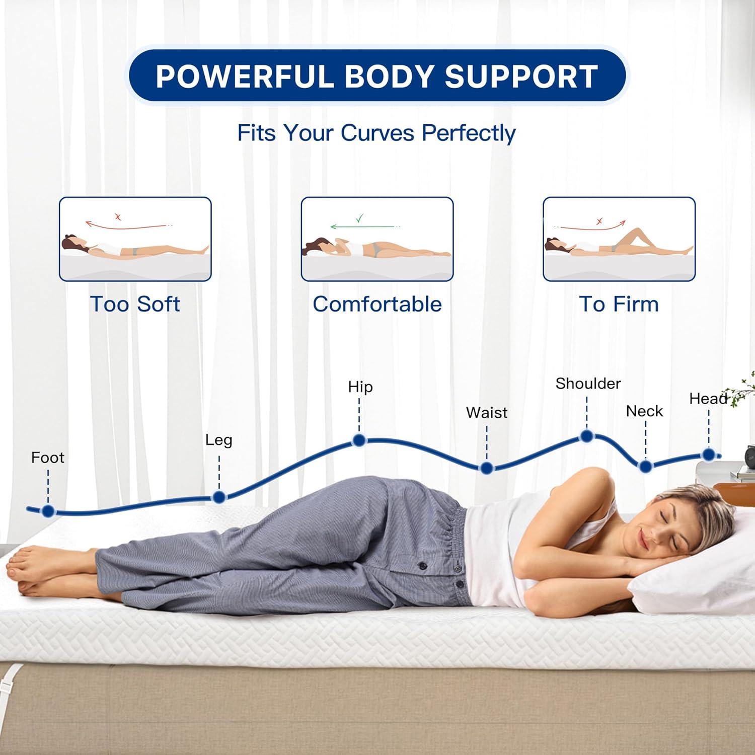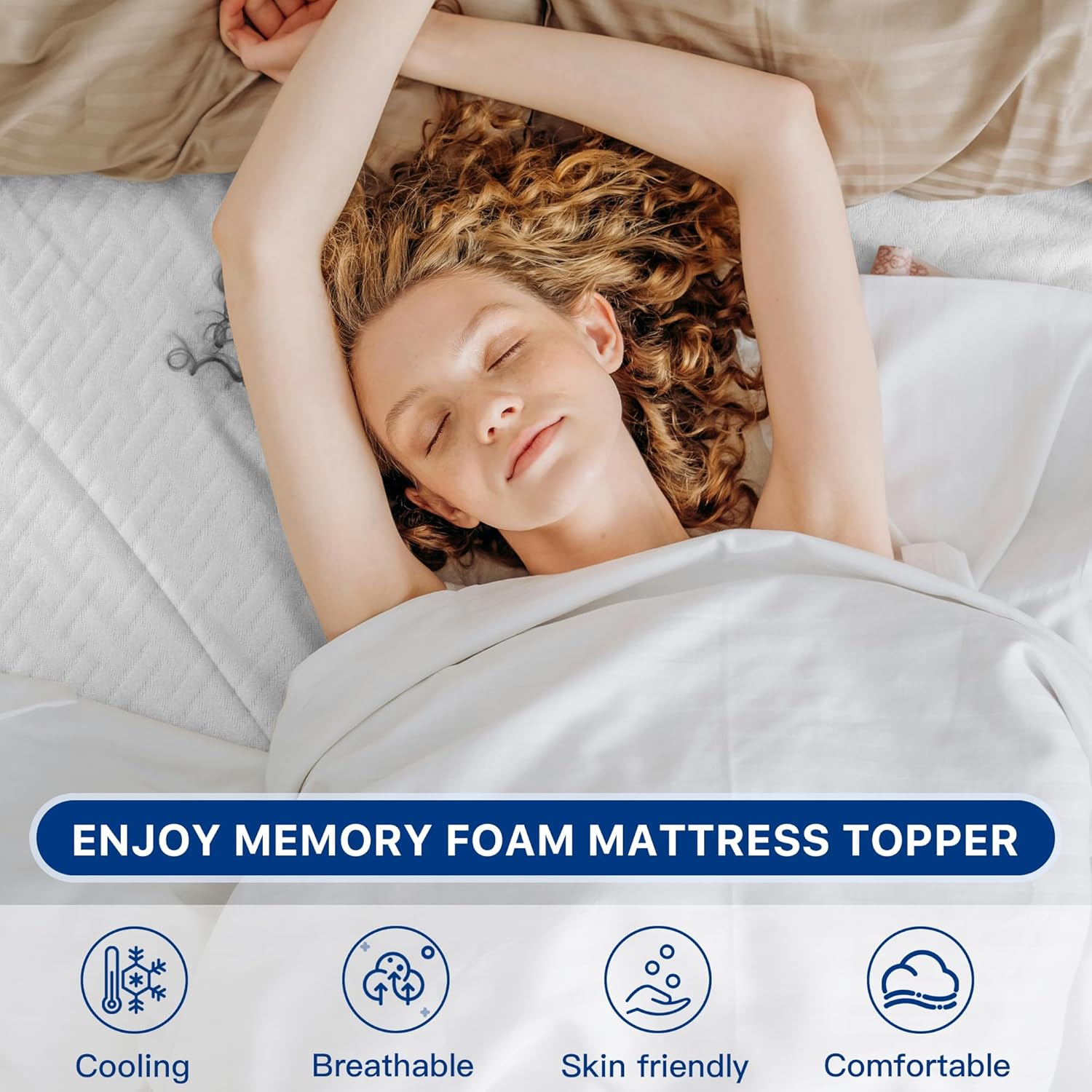 🛏️ 3” Gel Memory Foam Mattress Topper – Cool, Soft & Stay-Put