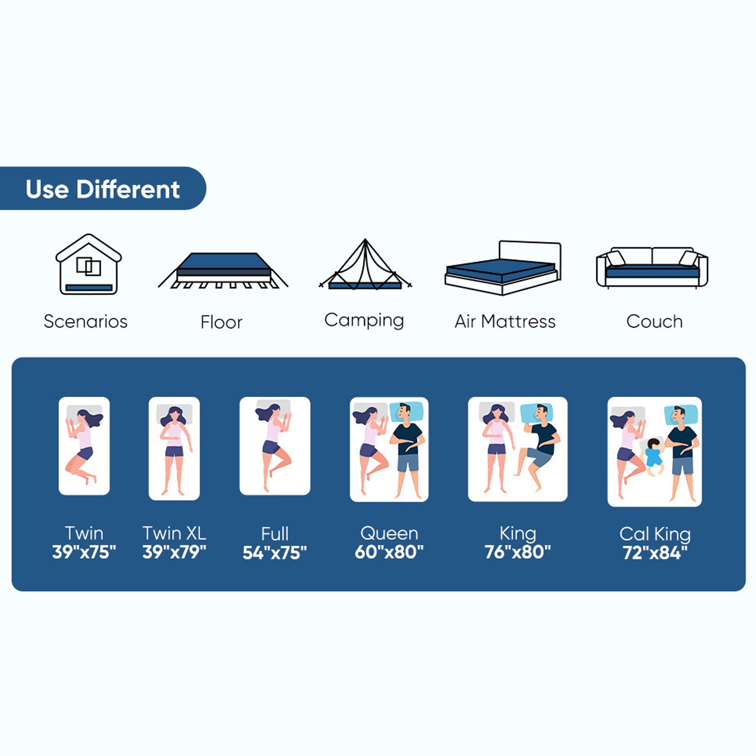 - 🔁 Adjustable elastic straps fit mattresses up to 21” deep