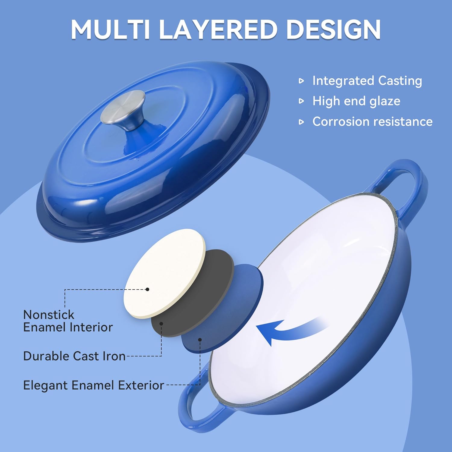 Made with a **high-quality cast iron core** and finished with a **food-grade enamel coating**, this Dutch oven ensures: