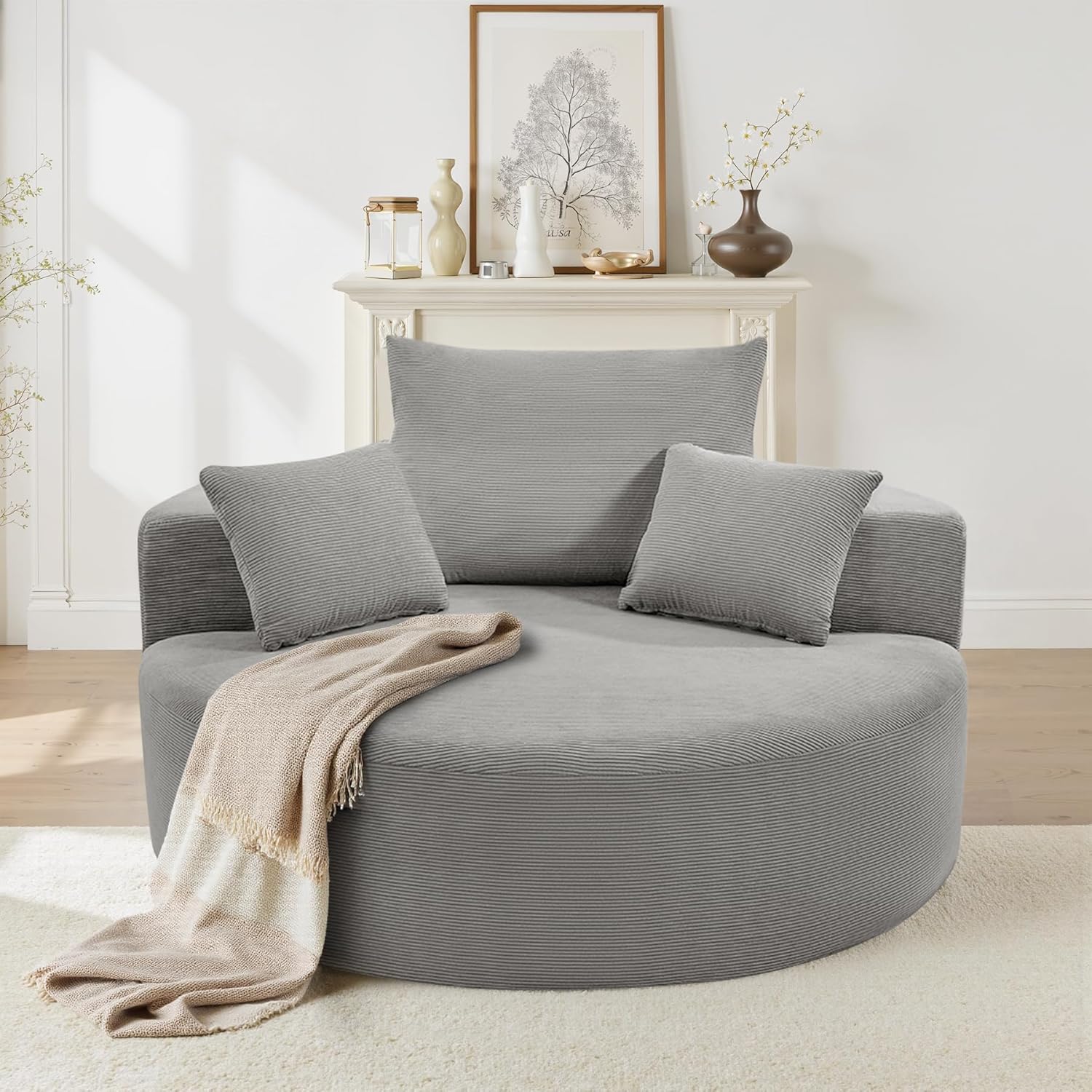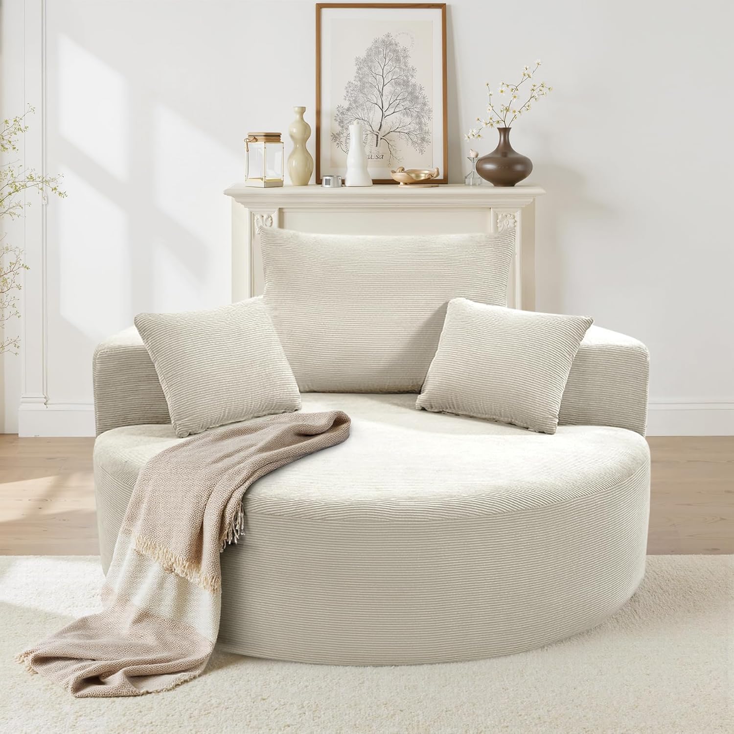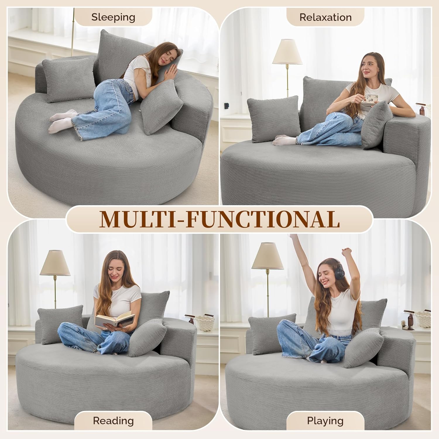 Luxanimarion 55” Corduroy Foam Sofa – Round, Sleeper, with Pillows