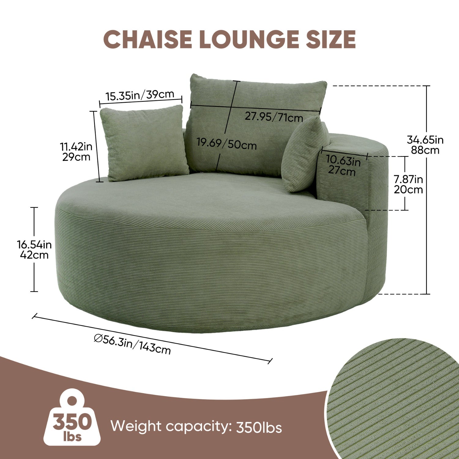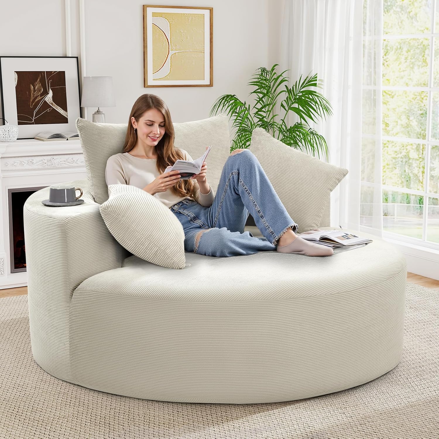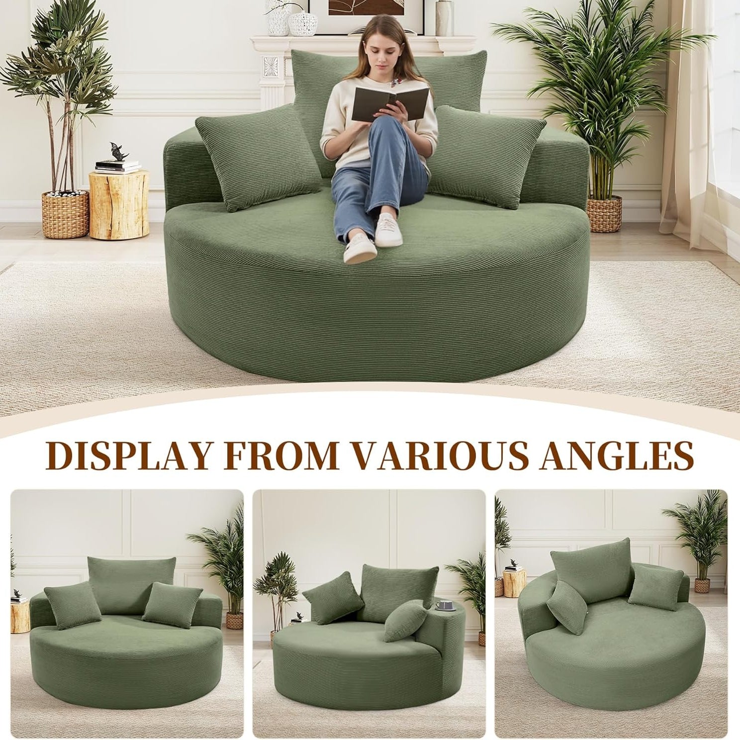 Luxanimarion 55” Corduroy Foam Sofa – Round, Sleeper, with Pillows