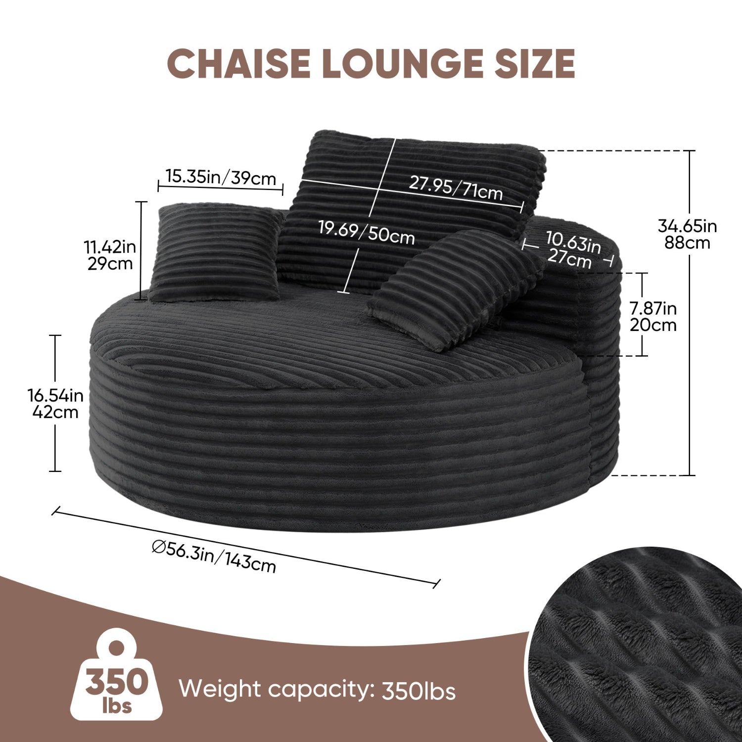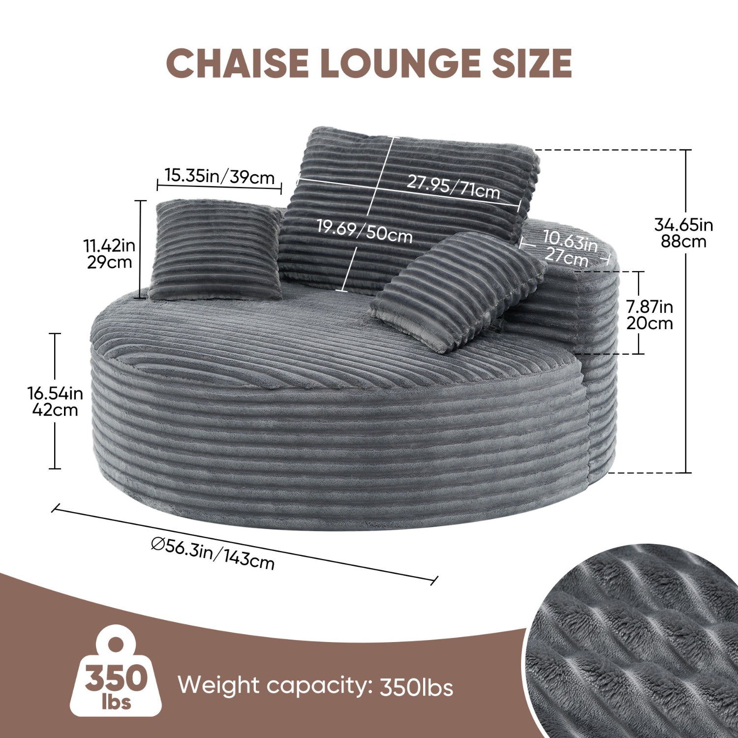 Luxanimarion 55” 3.5cm Thick Corduroy Foam Sofa – Round, with Pillows