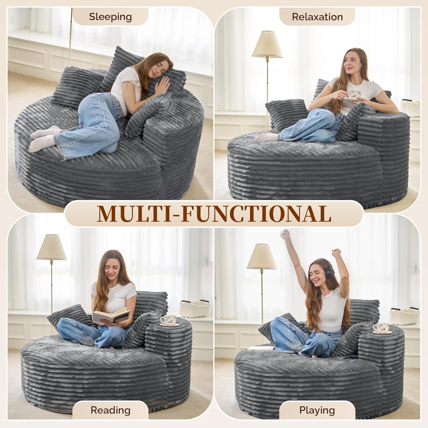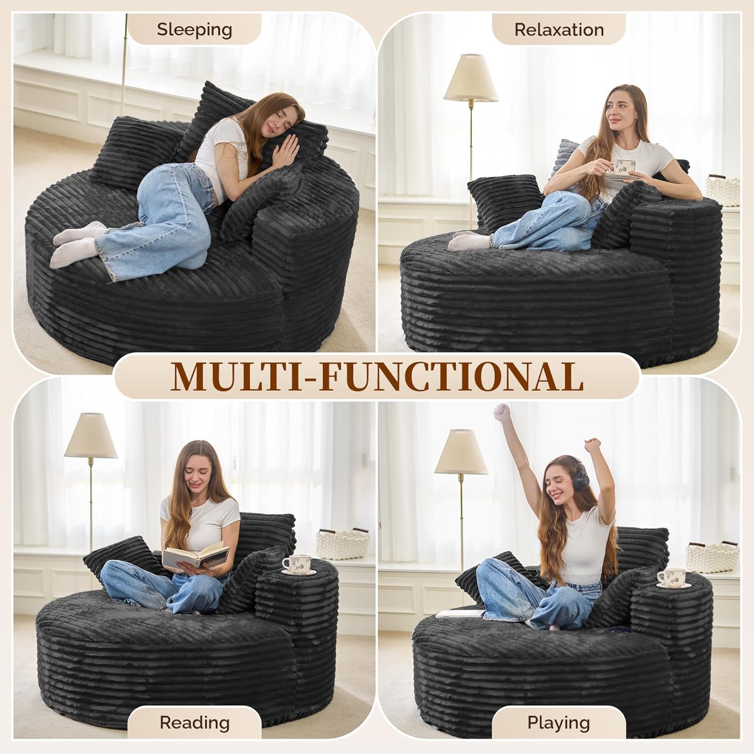 Meet your new favorite spot — this **plush, oversized recliner sofa** is designed for ultimate comfort and effortless style. Whether you're lounging, napping, watching movies, or scrolling through your phone, its **extra-deep 56-inch seat**, soft corduroy fabric, and supportive foam filling make every moment feel like a retreat. 🌿✨