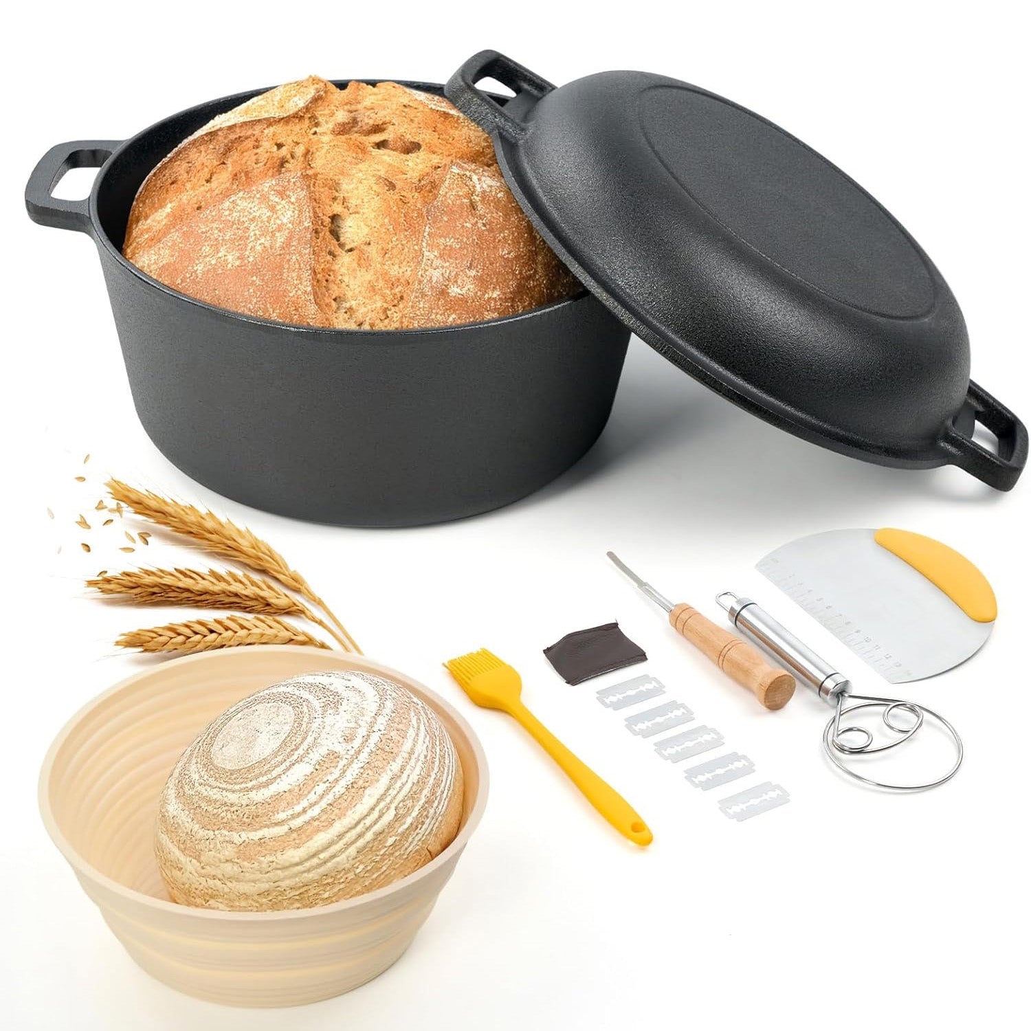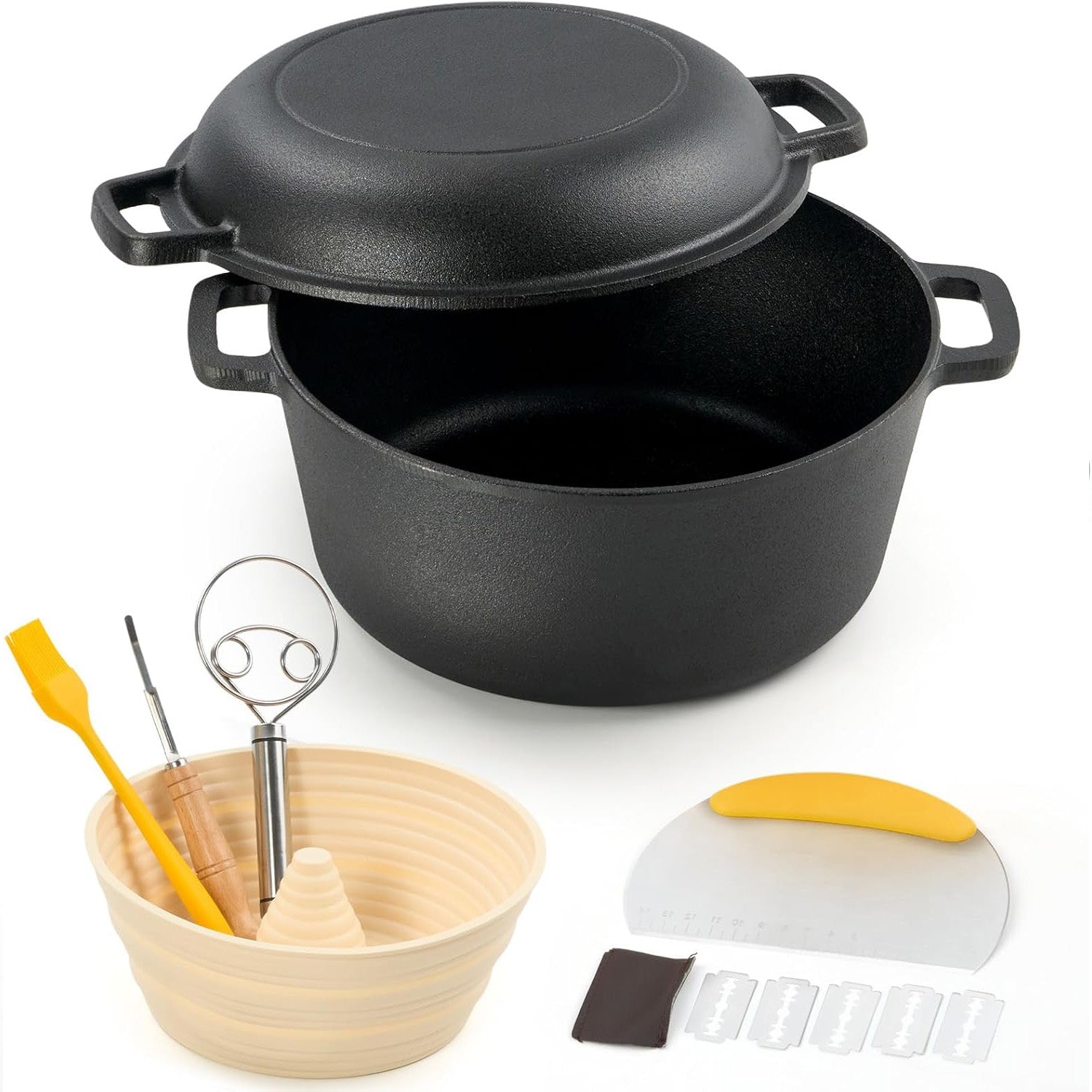 🔥 6.5QT Pre-Seasoned Cast Iron Dutch Oven – Sourdough Bread Kit Included