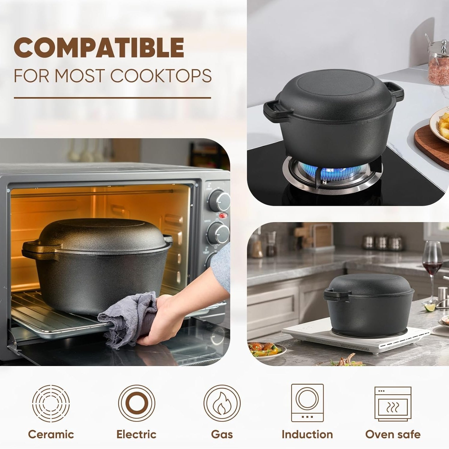 Kerilyn 6.5QT Pre-Seasoned Cast Iron Dutch Oven Dual Handles Oven-Safe