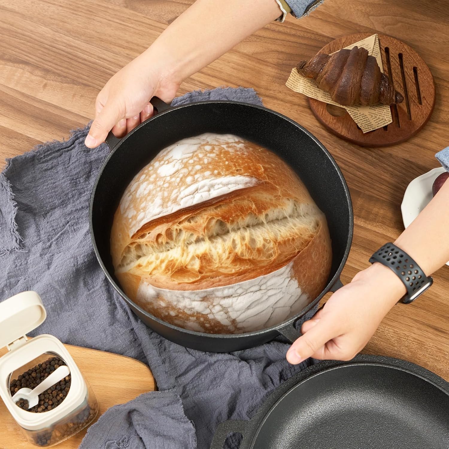 Leveraging the Dutch oven's unique enclosed environment, it ensures even heat distribution while enabling natural steam self-circulation—perfect for creating artisan-style sourdough, no-knead bread, and crispy crusts at home.