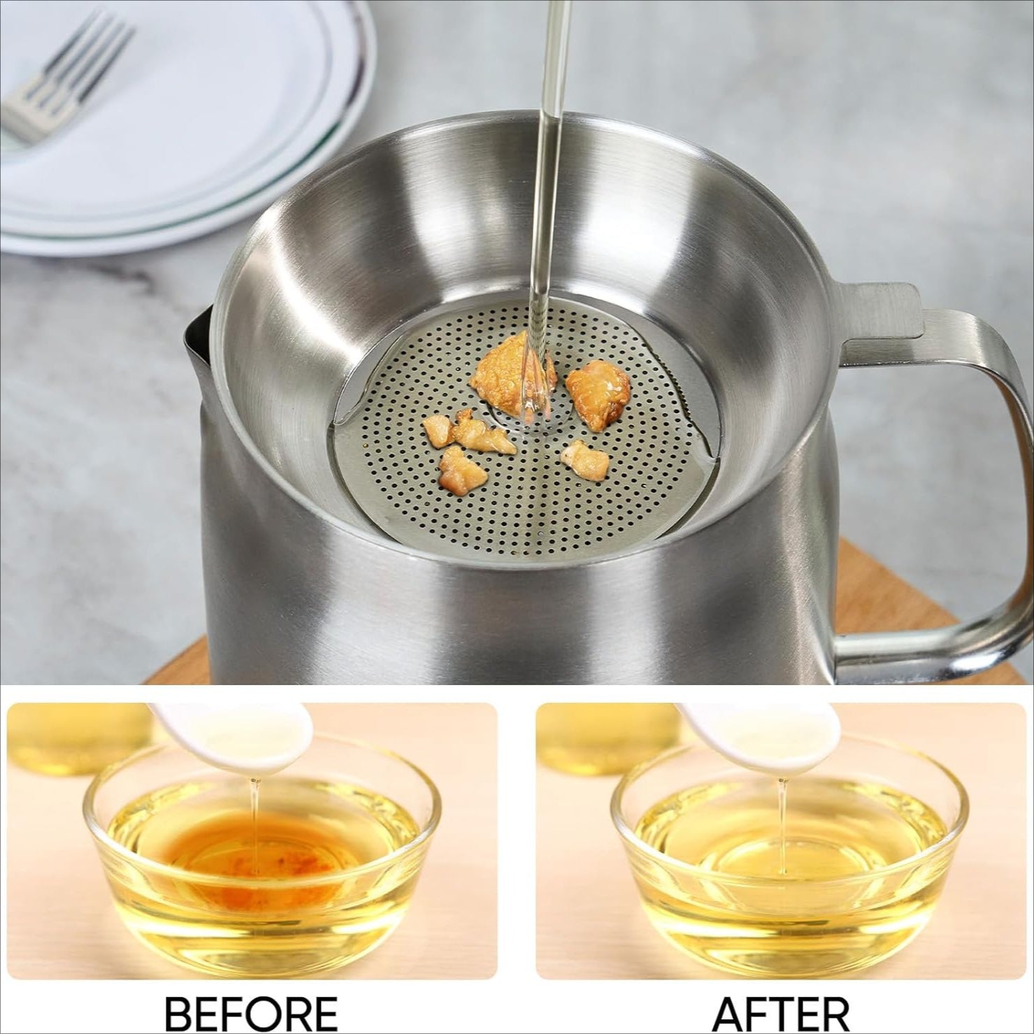 🛢️ 304 Stainless Steel Oil Filter Pot – Store, Filter & Fry!