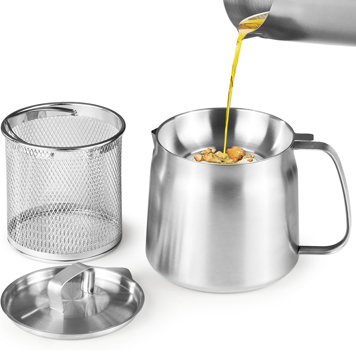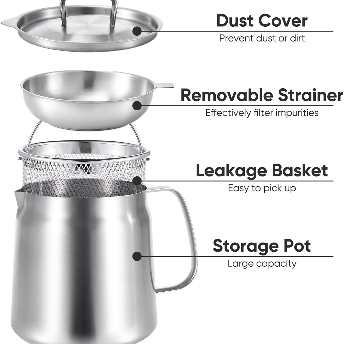 Kerilyn 68oz 304 Stainless Steel Oil Container Cooking Oil Filter Pot