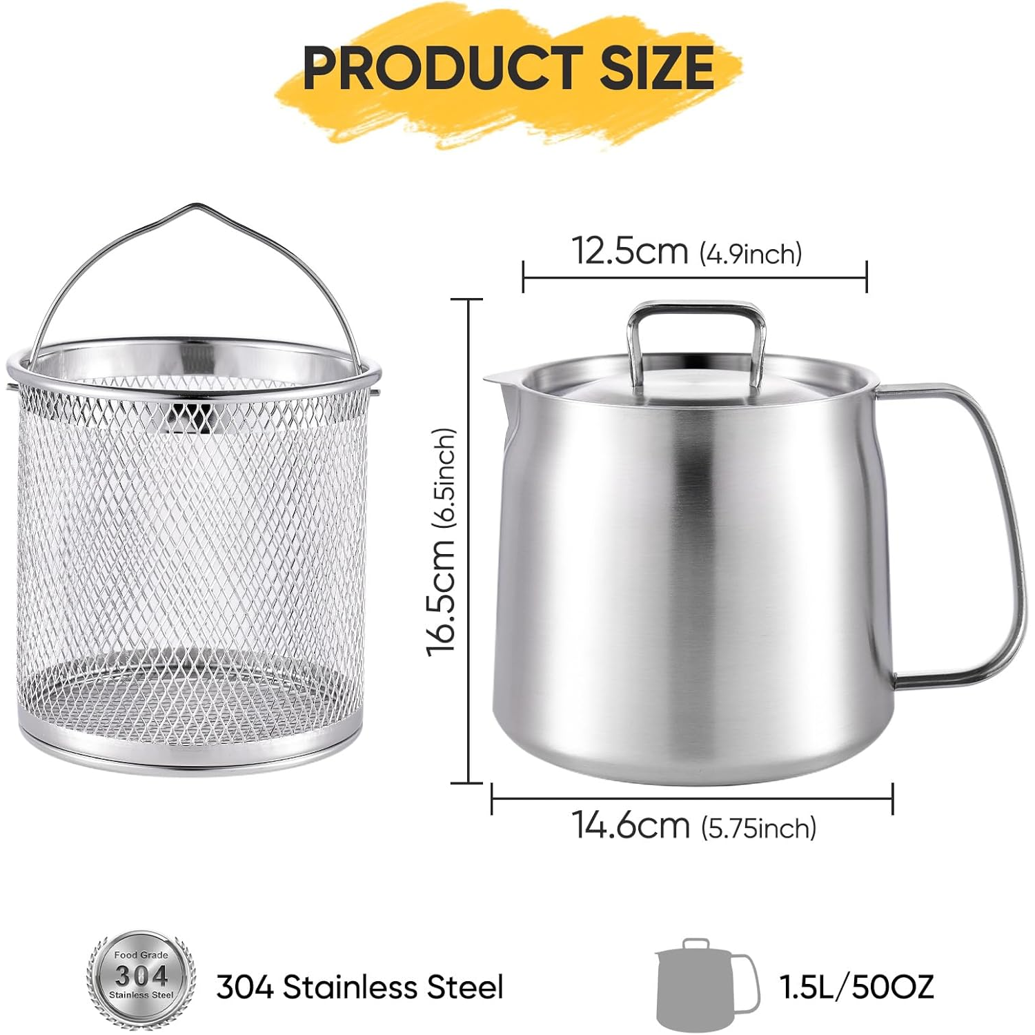 Meet your new kitchen MVP: a **multi-purpose stainless steel pot** that stores oil, filters drippings, and transforms into a **mini deep fryer**! Perfect for saving bacon grease, making flavored oils, or frying crispy fries — all with one sleek, durable tool. 🍟🍳🔥