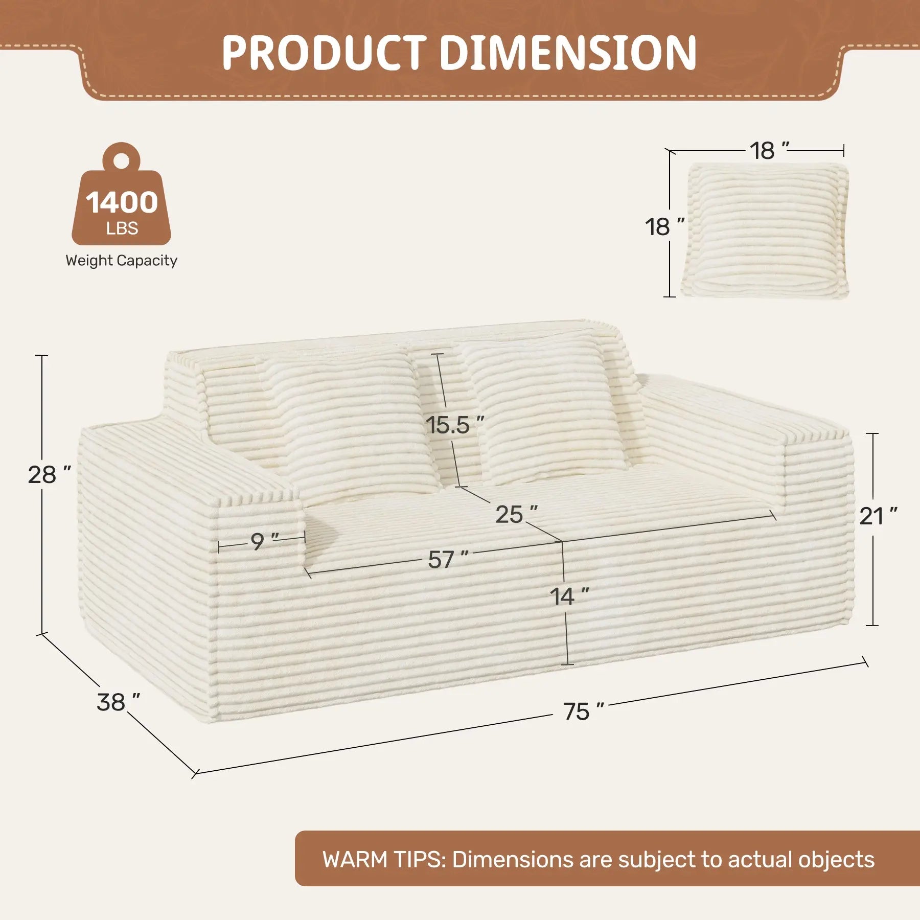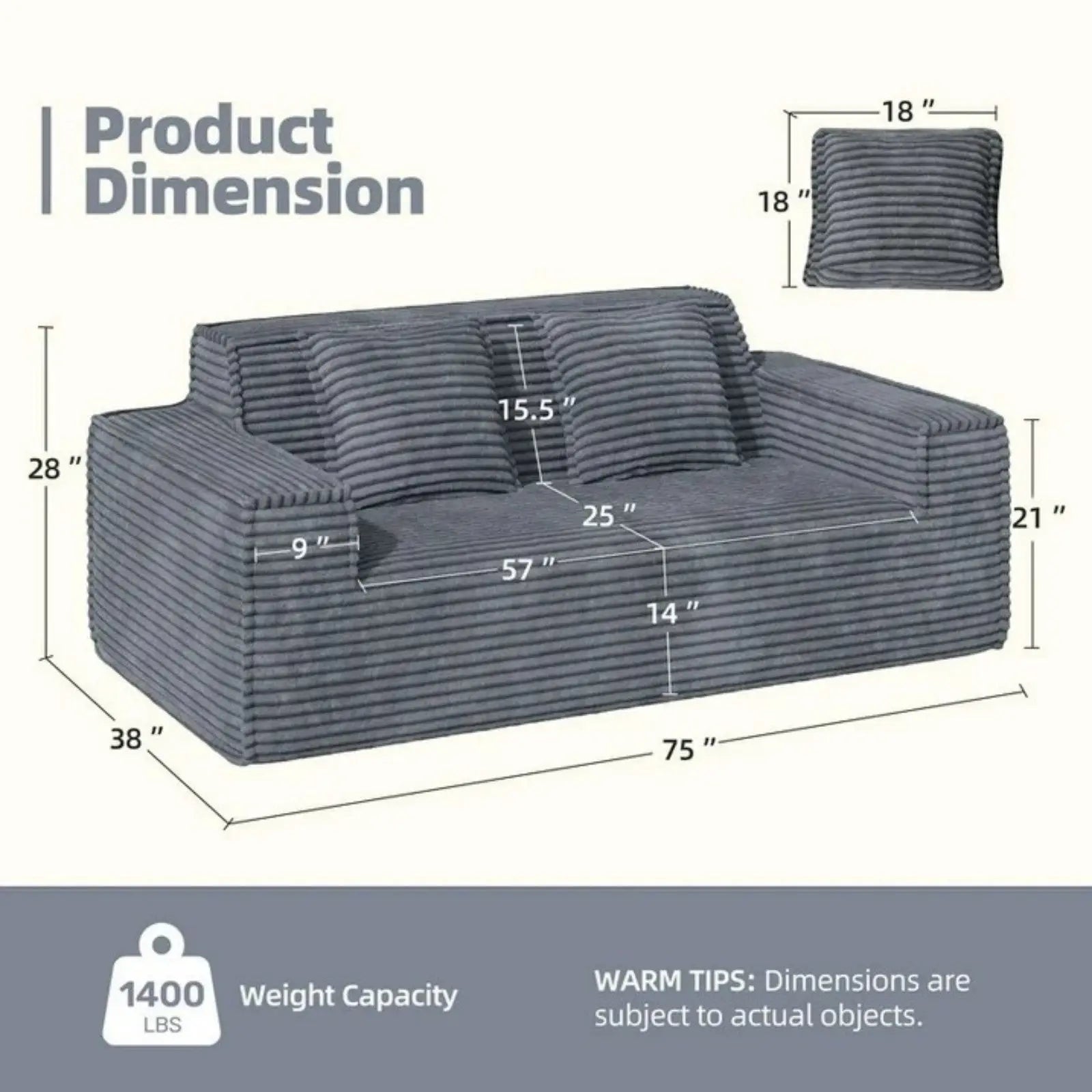At just **75 inches wide**, this two-seater fits seamlessly into smaller spaces without sacrificing comfort or style. The **modern minimalist design** blends with any décor — from cozy boho to sleek contemporary. 🎨