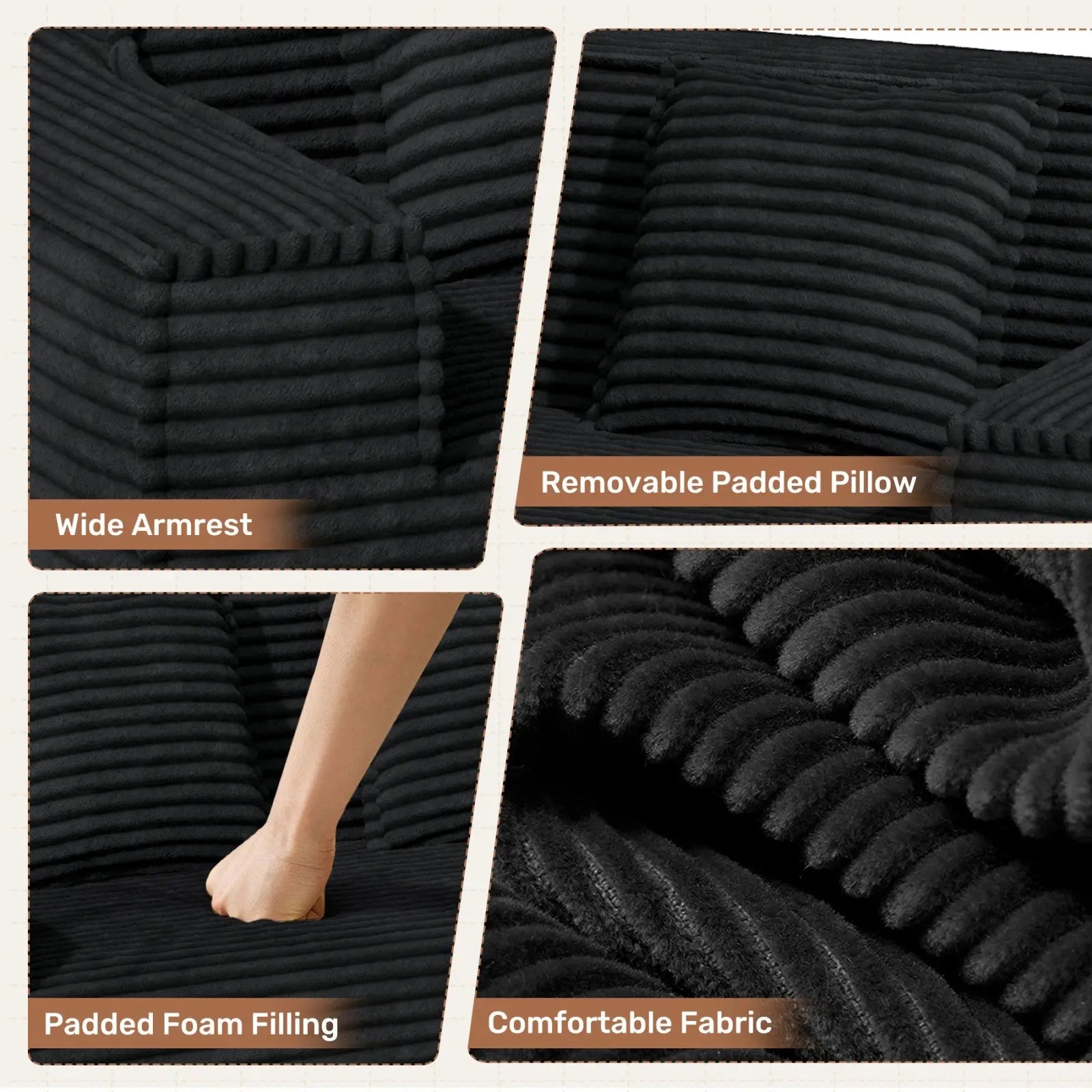 Covered in **luxuriously soft, premium corduroy** that’s: