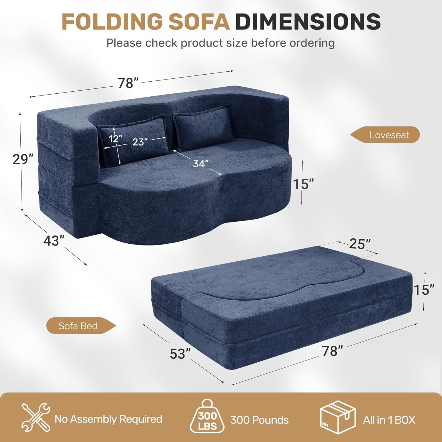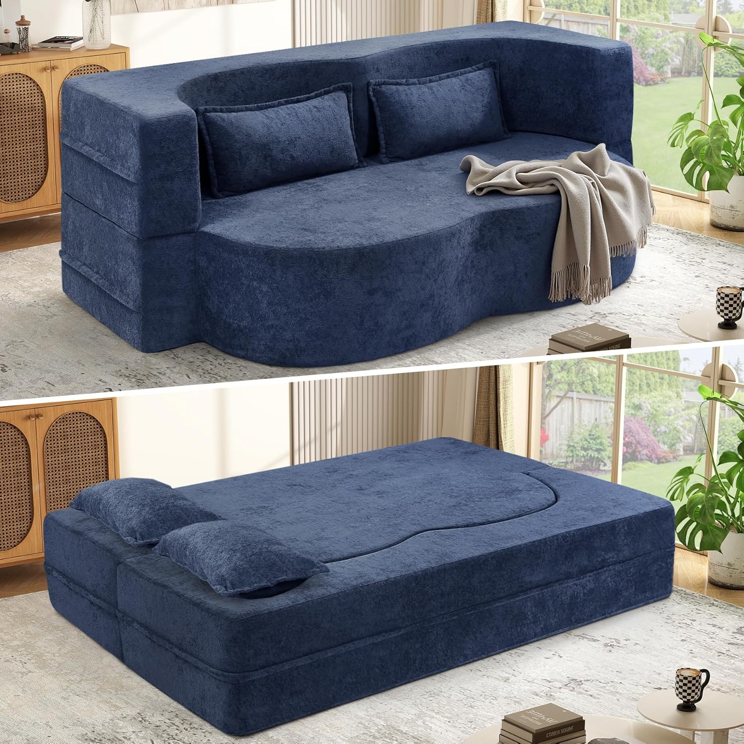 Luxanimarion 78” Velvet Sofa Bed 2-in-1 Memory Foam No Assembly