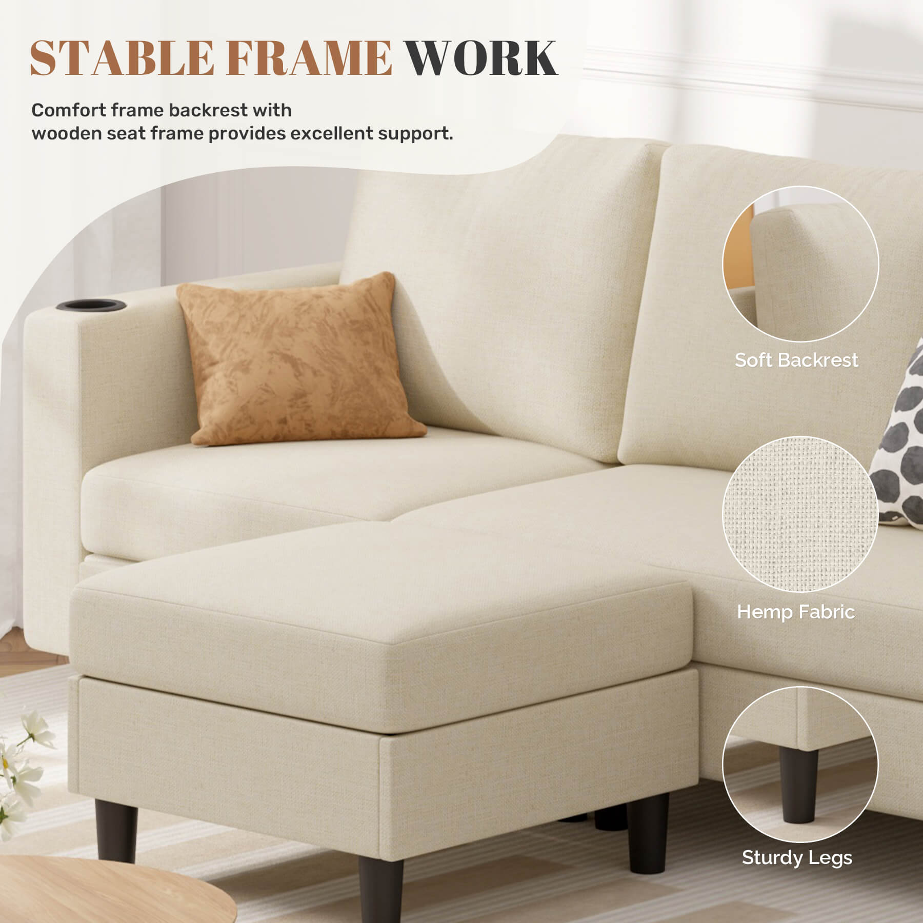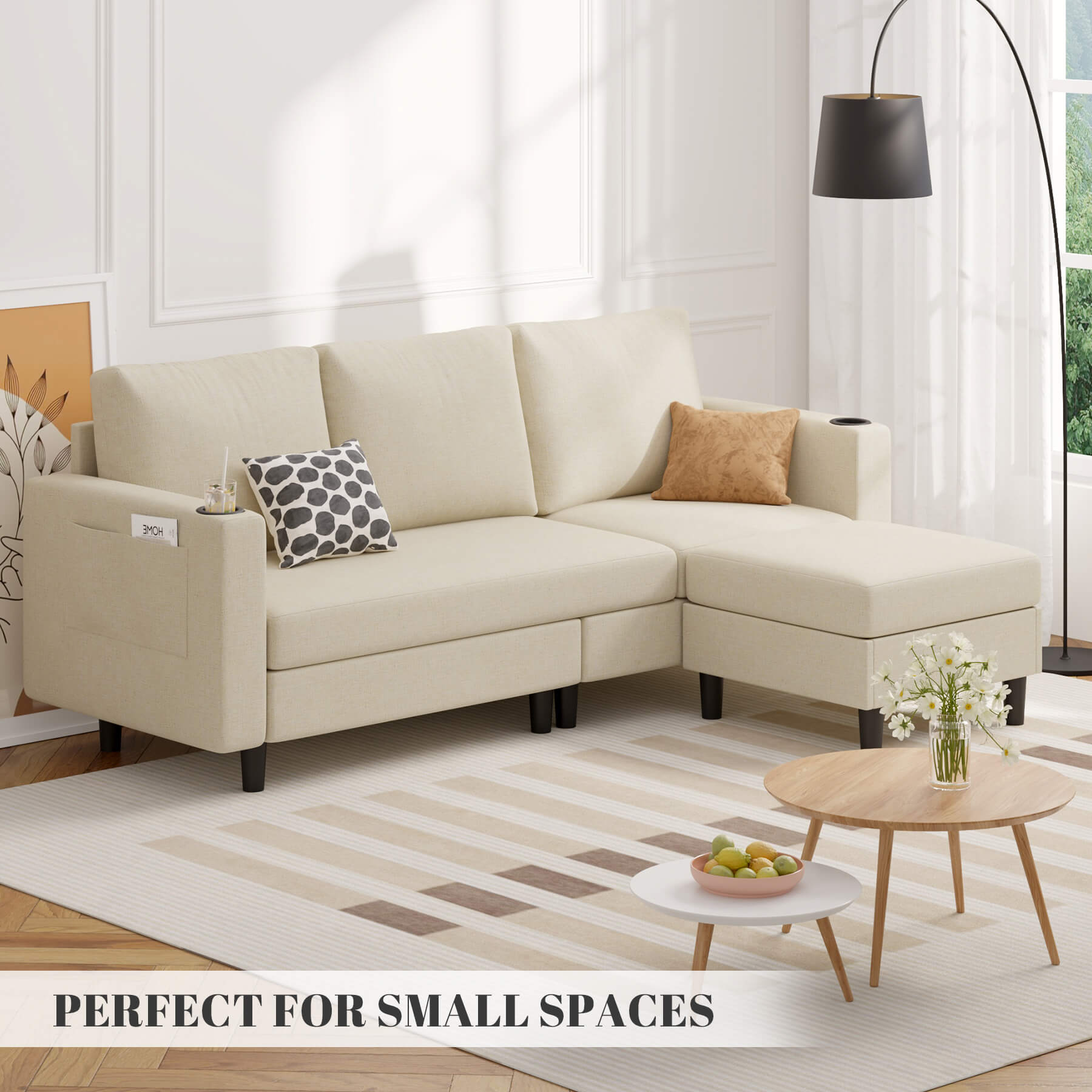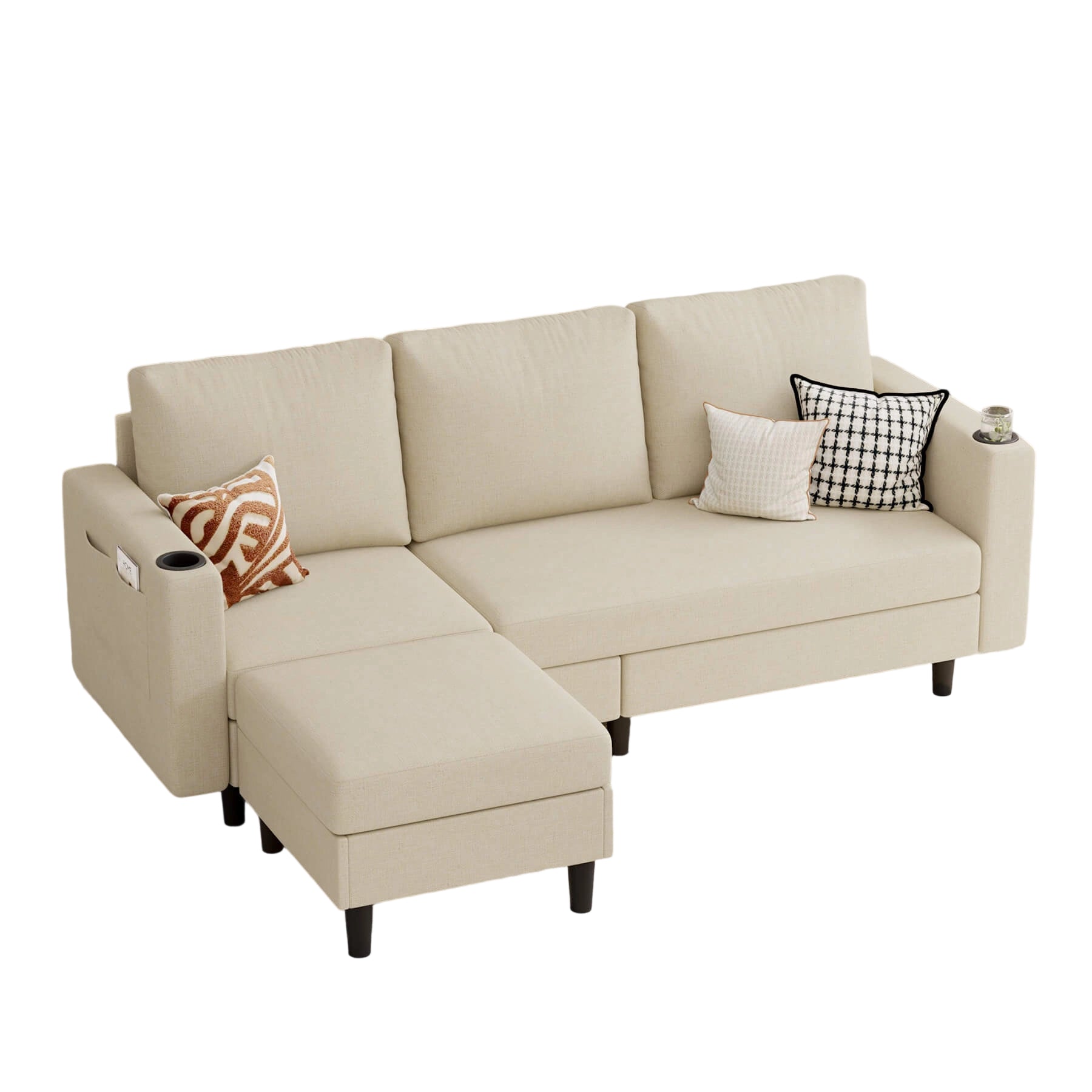 🛋️ Compact Sectional Sofa with Reversible Ottoman – Small Space, Big Comfort