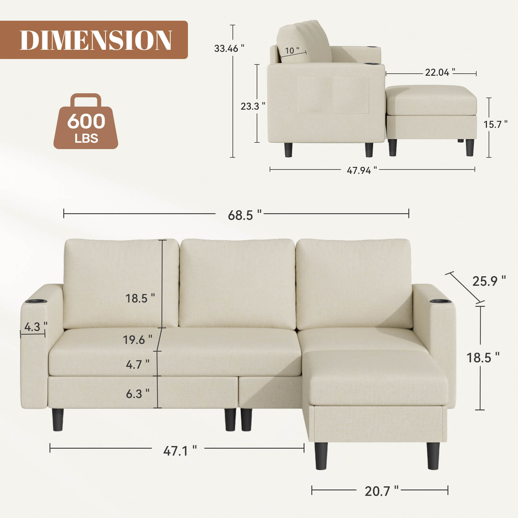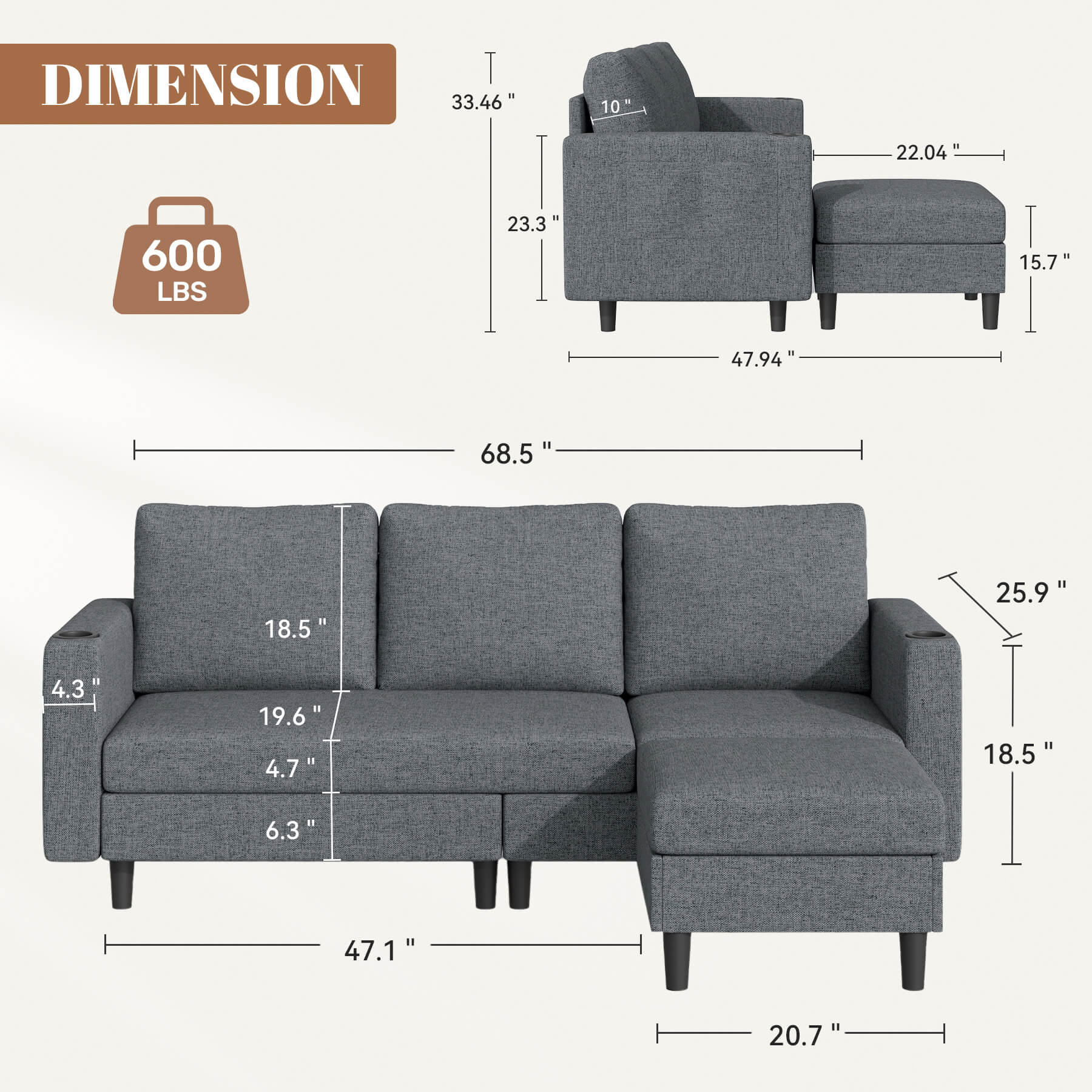 Meet your new favorite couch — a sleek, space-saving sectional designed for apartments, dorm rooms, and cozy living areas. Stylish, durable, and built for real life, it fits up to **three people (680 lbs total)** without sacrificing comfort or quality. 🏡✨