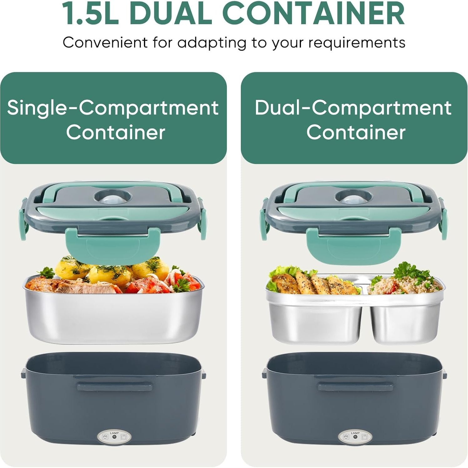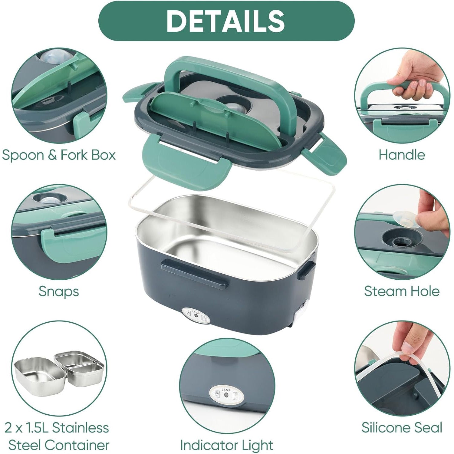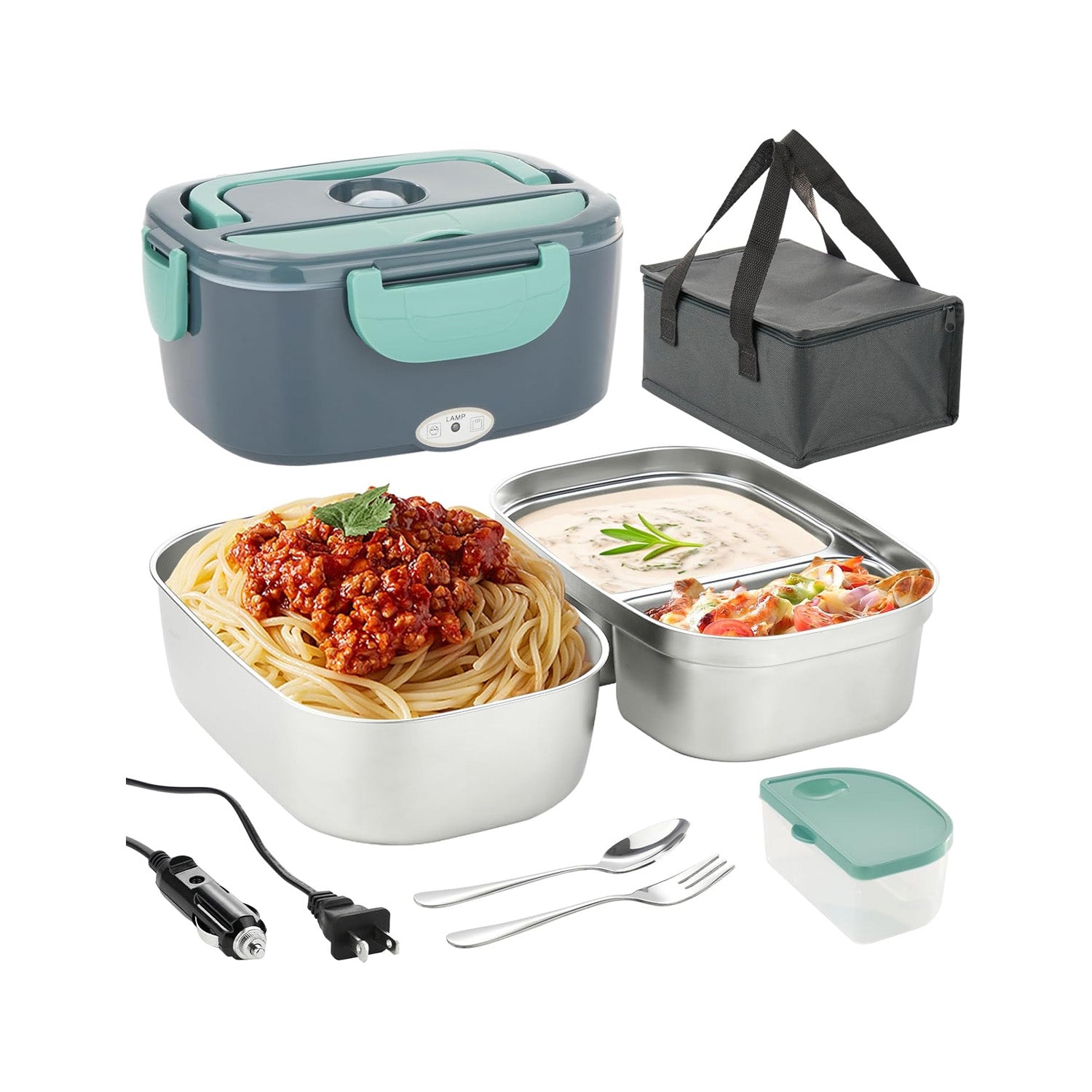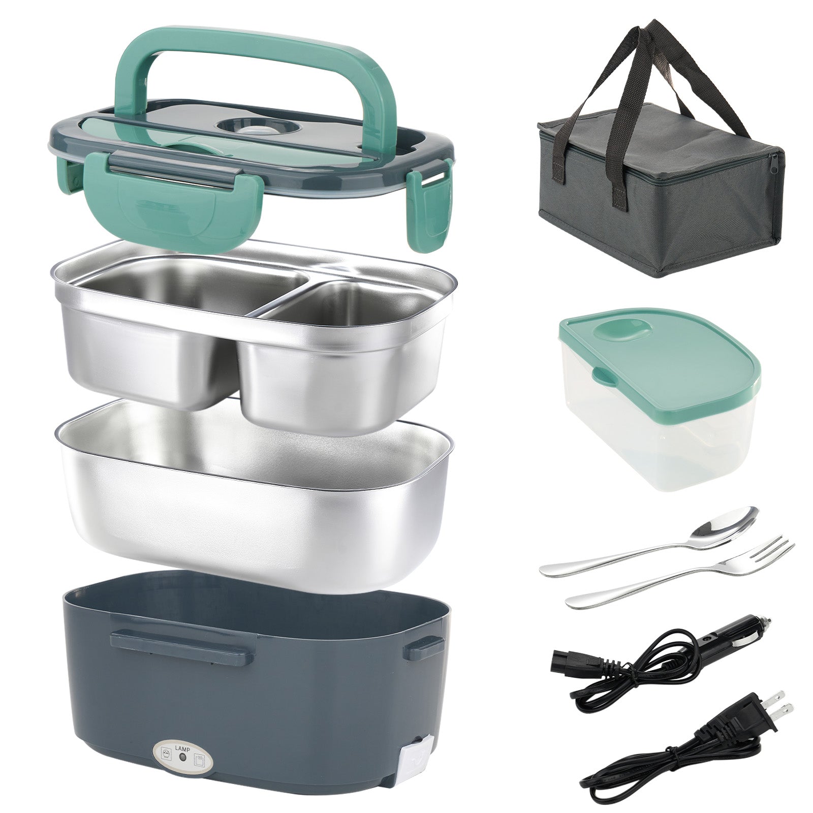 Kerilyn 80W Heated Lunch Box Dual Stainless Steel Containers Insulated Bag
