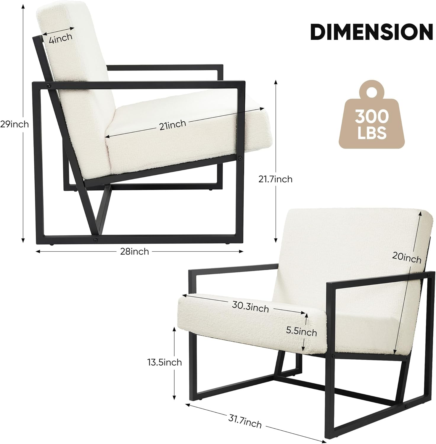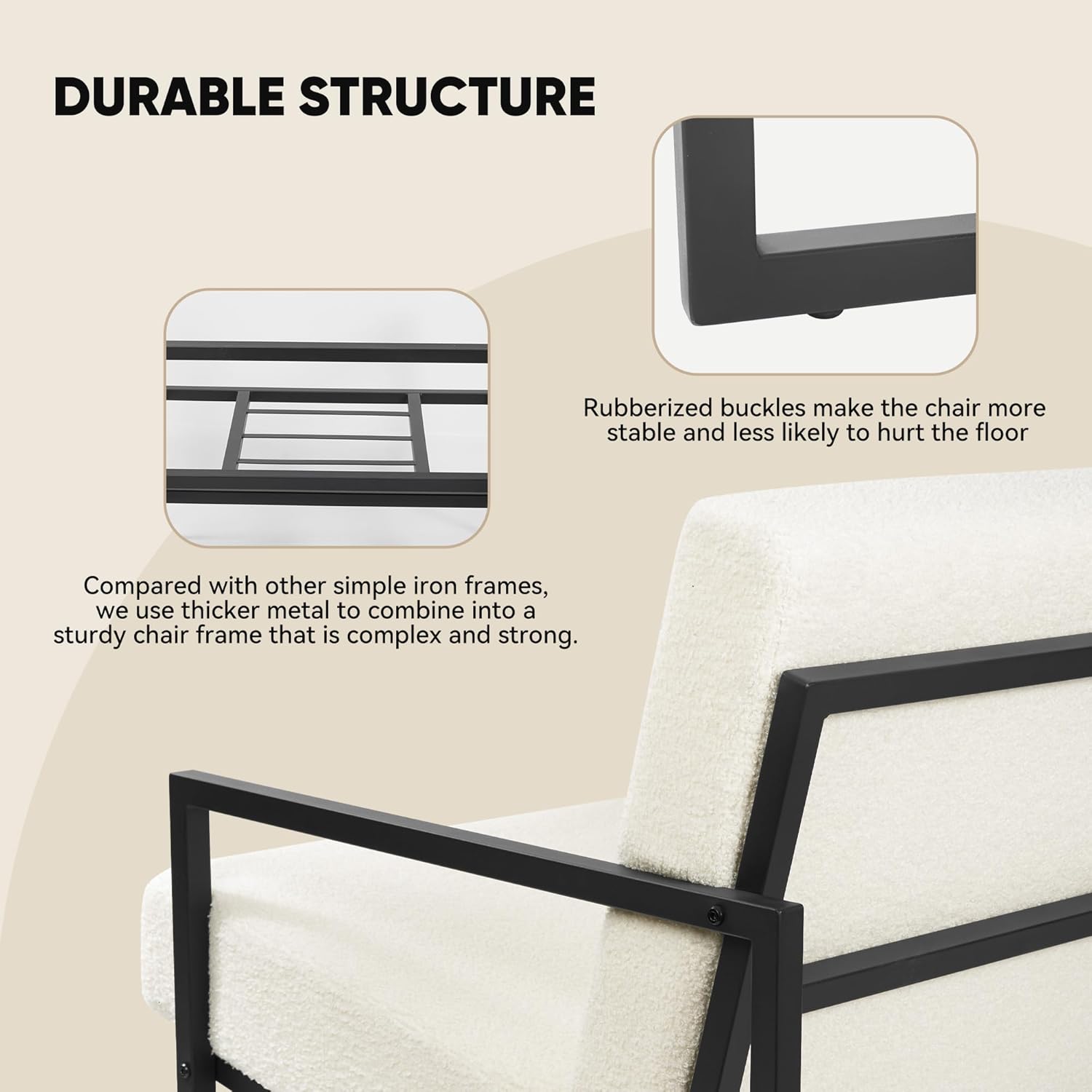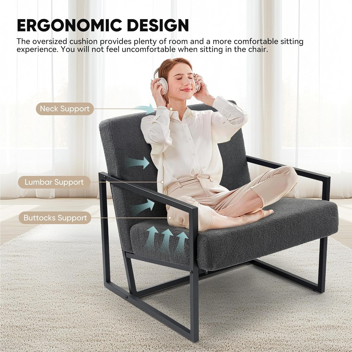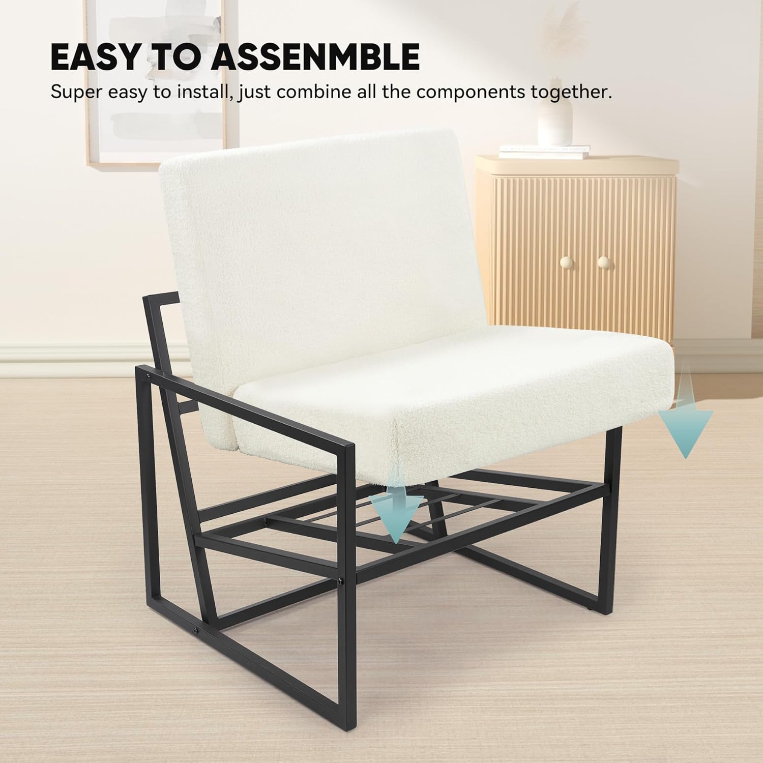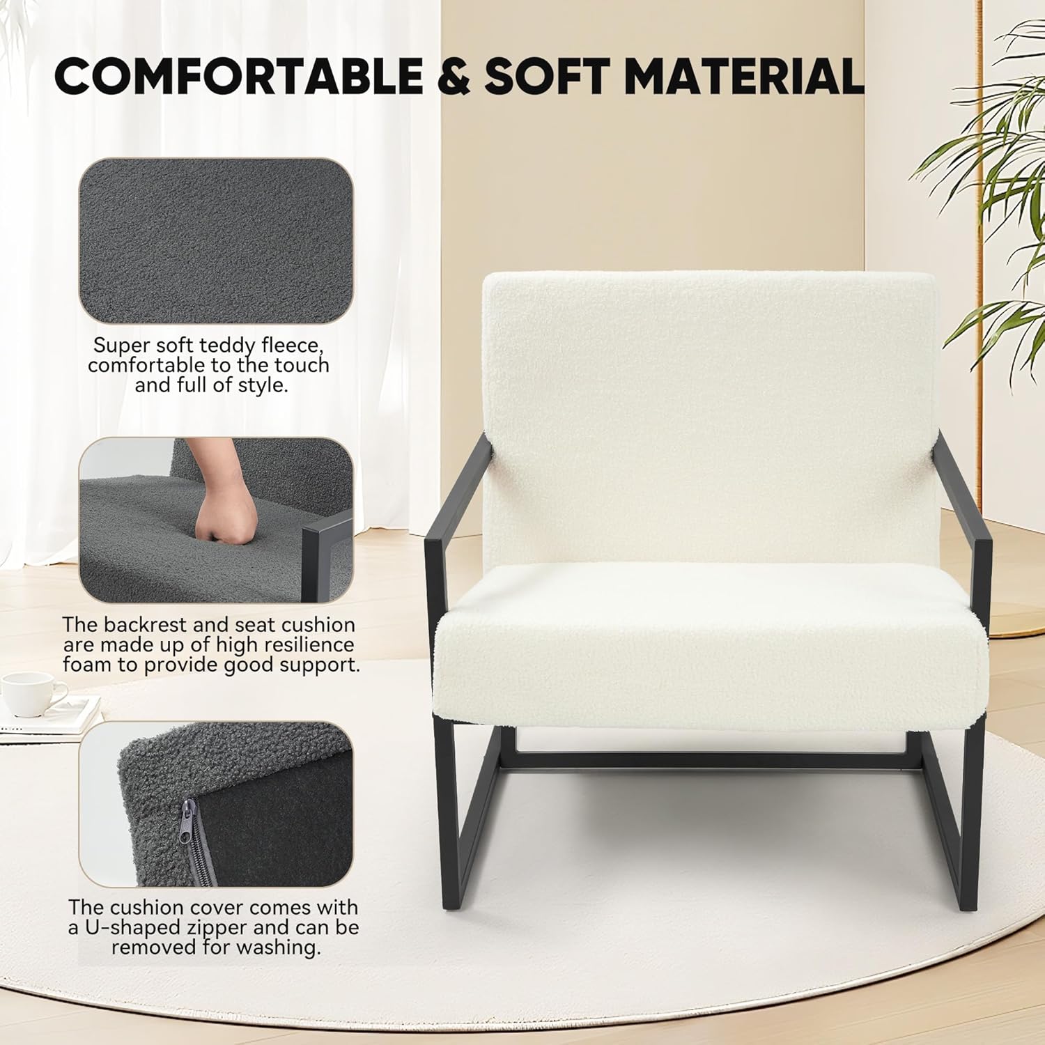 - 【STYLISH DESIGN】: The reinforced black iron frame, clean lines and teddy fabric add a touch of modern beauty to the living room. It fits easily into any space and blends perfectly with your interior.