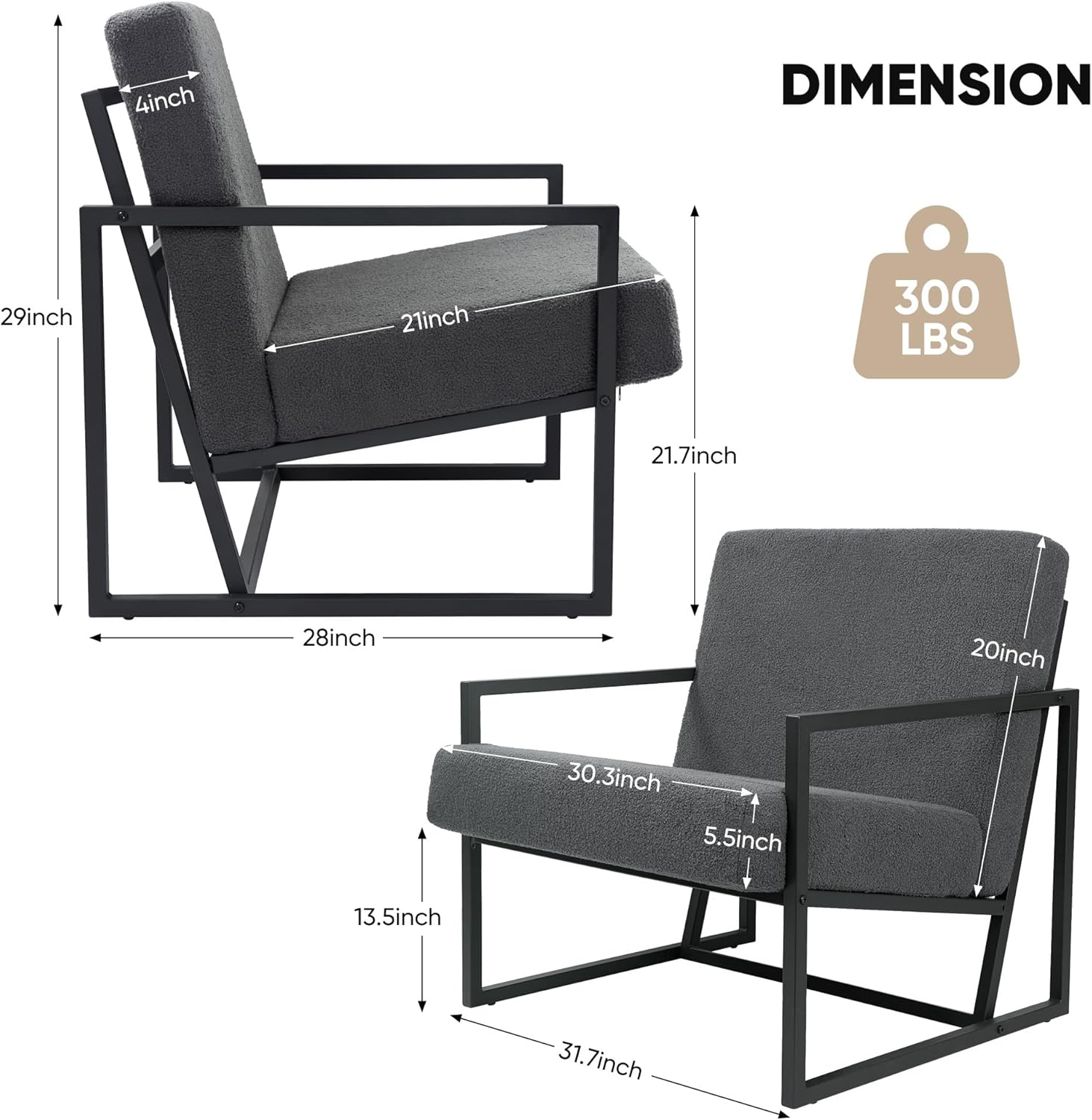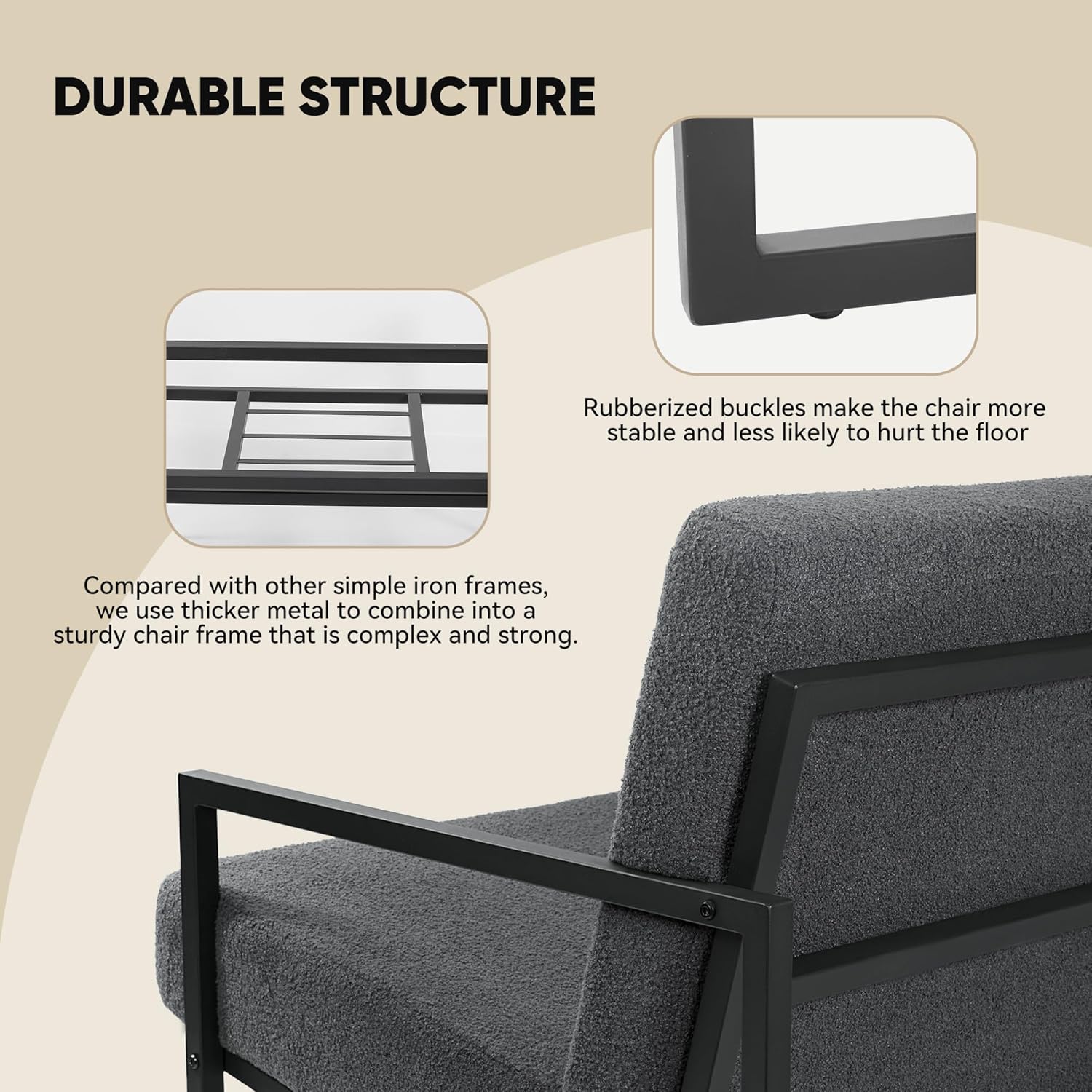 - 【STURDY METAL】:Thickened metal frame is used as the support of the accent chair, making it more durable and stronger to ensure the stability andlongevity of the armchair.