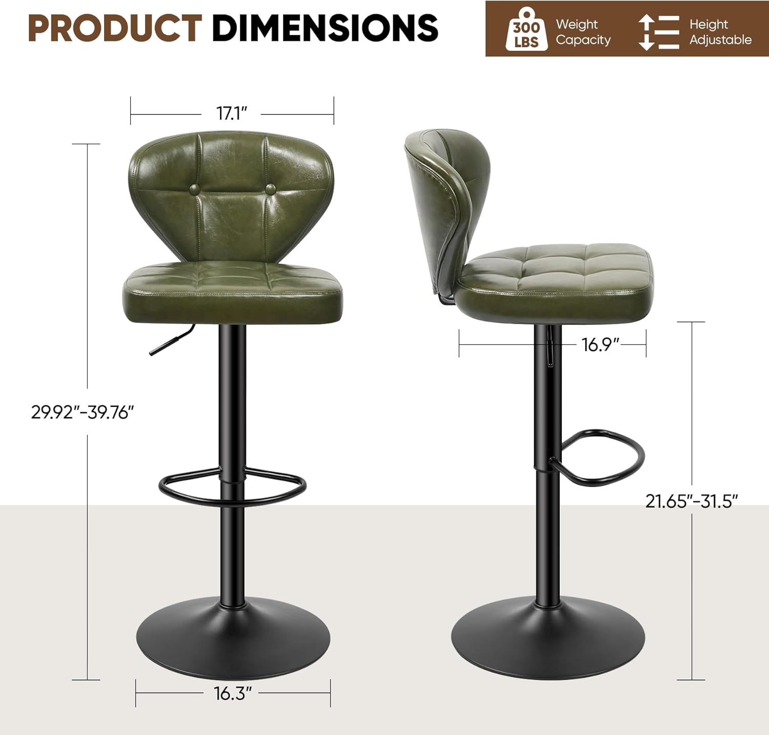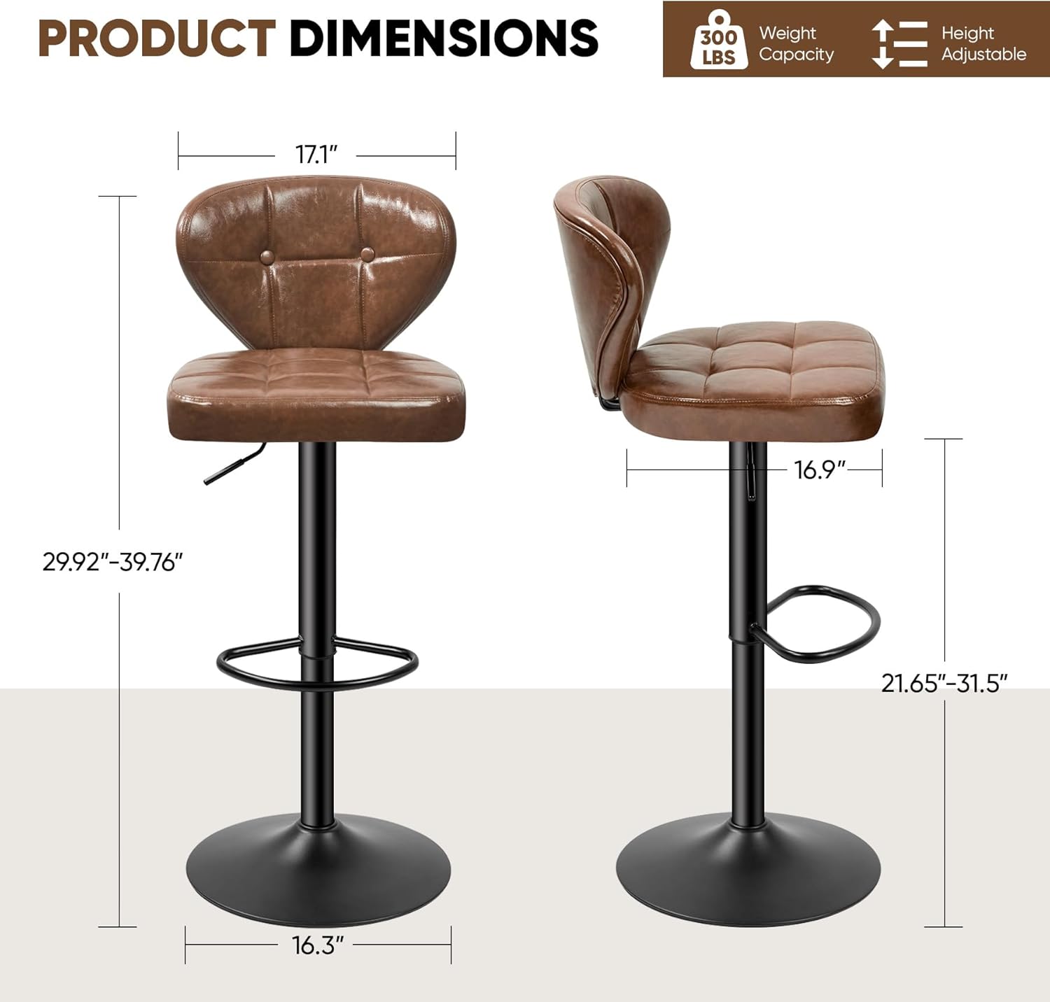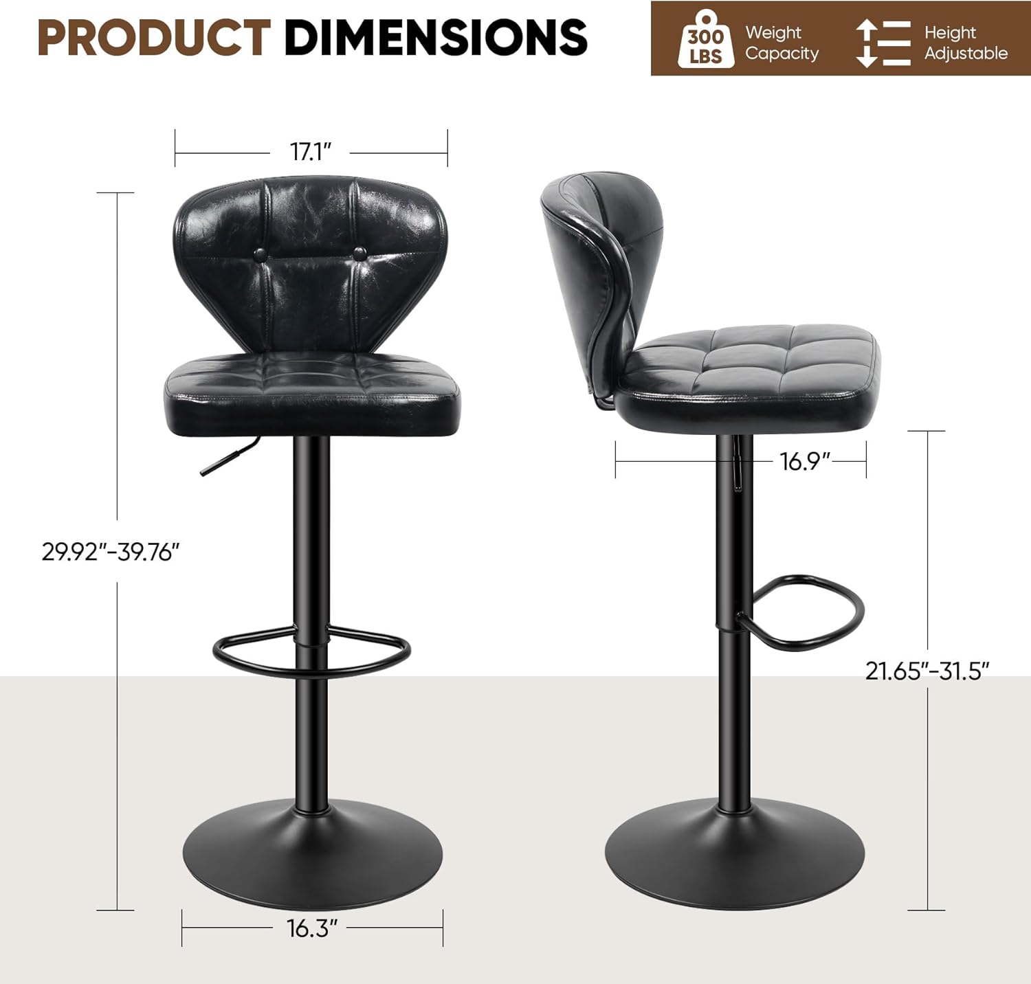 - ⚖️ Supports up to **300 lbs per stool** — rigorously tested for safety and stability