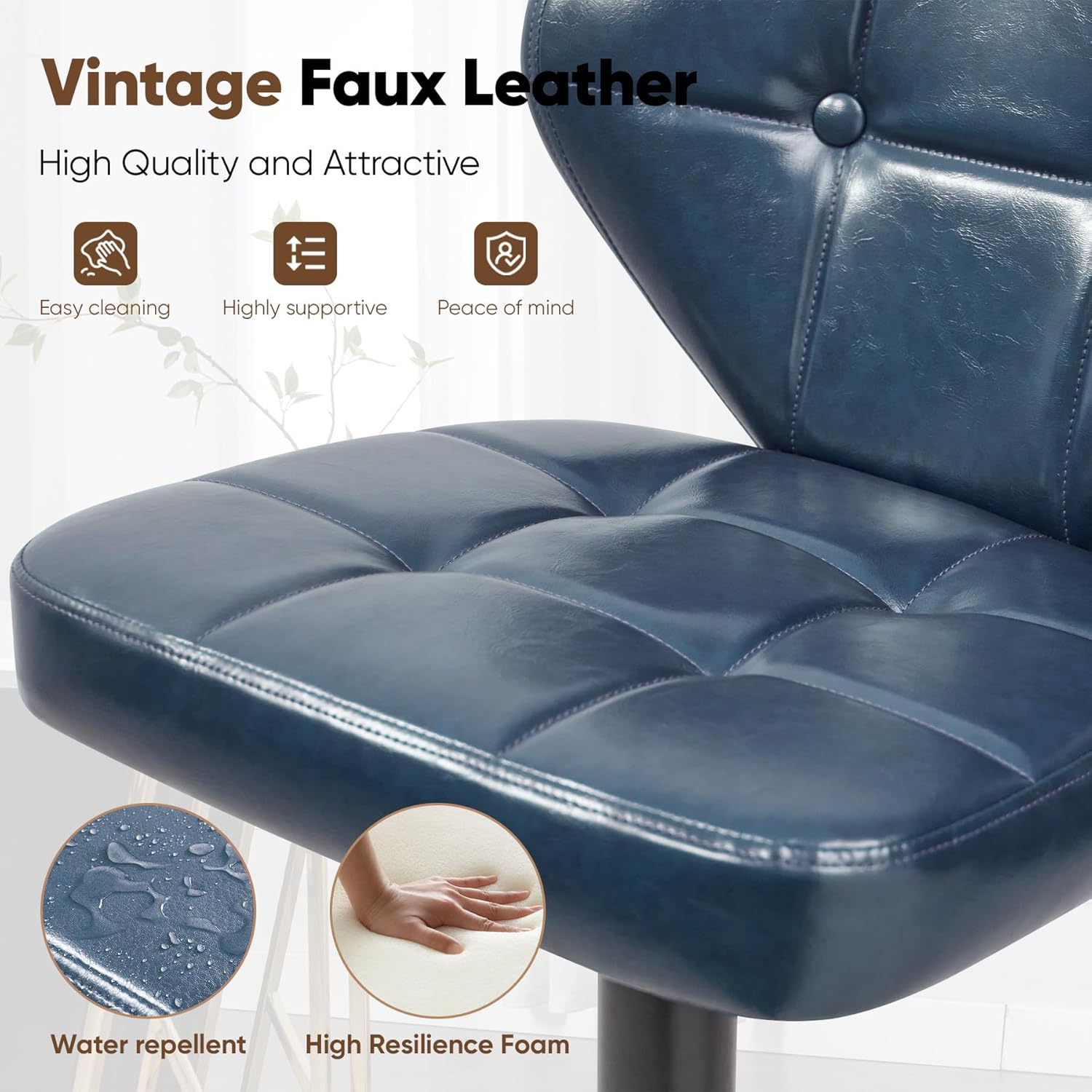 Elevate your kitchen island or home bar with these **sleek, modern bar stools** — expertly designed for comfort, style, and everyday durability. Featuring **adjustable height**, **smooth 360° swivel**, and luxurious vegan leather upholstery, they’re perfect for everything from morning coffee to evening cocktails. 🍻✨