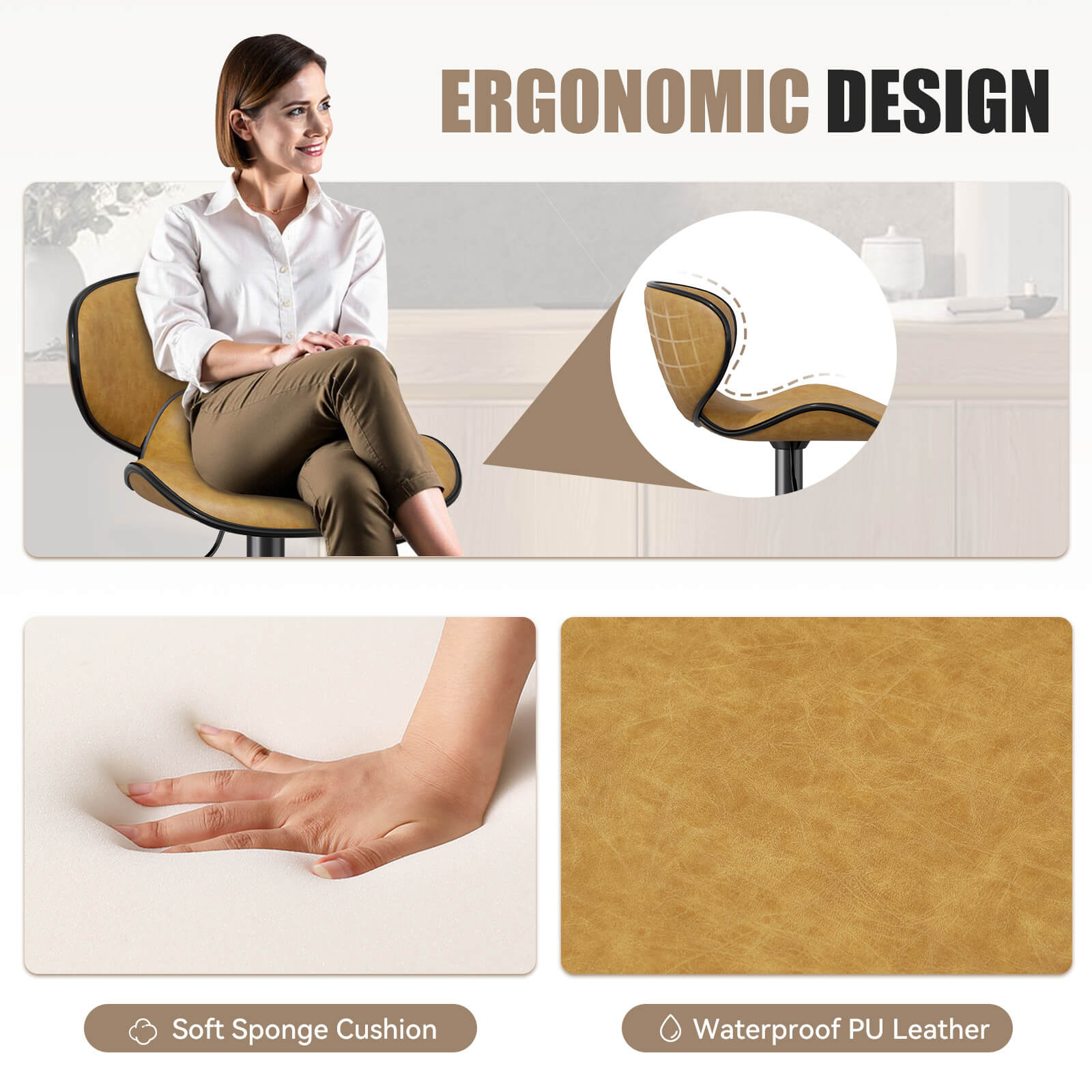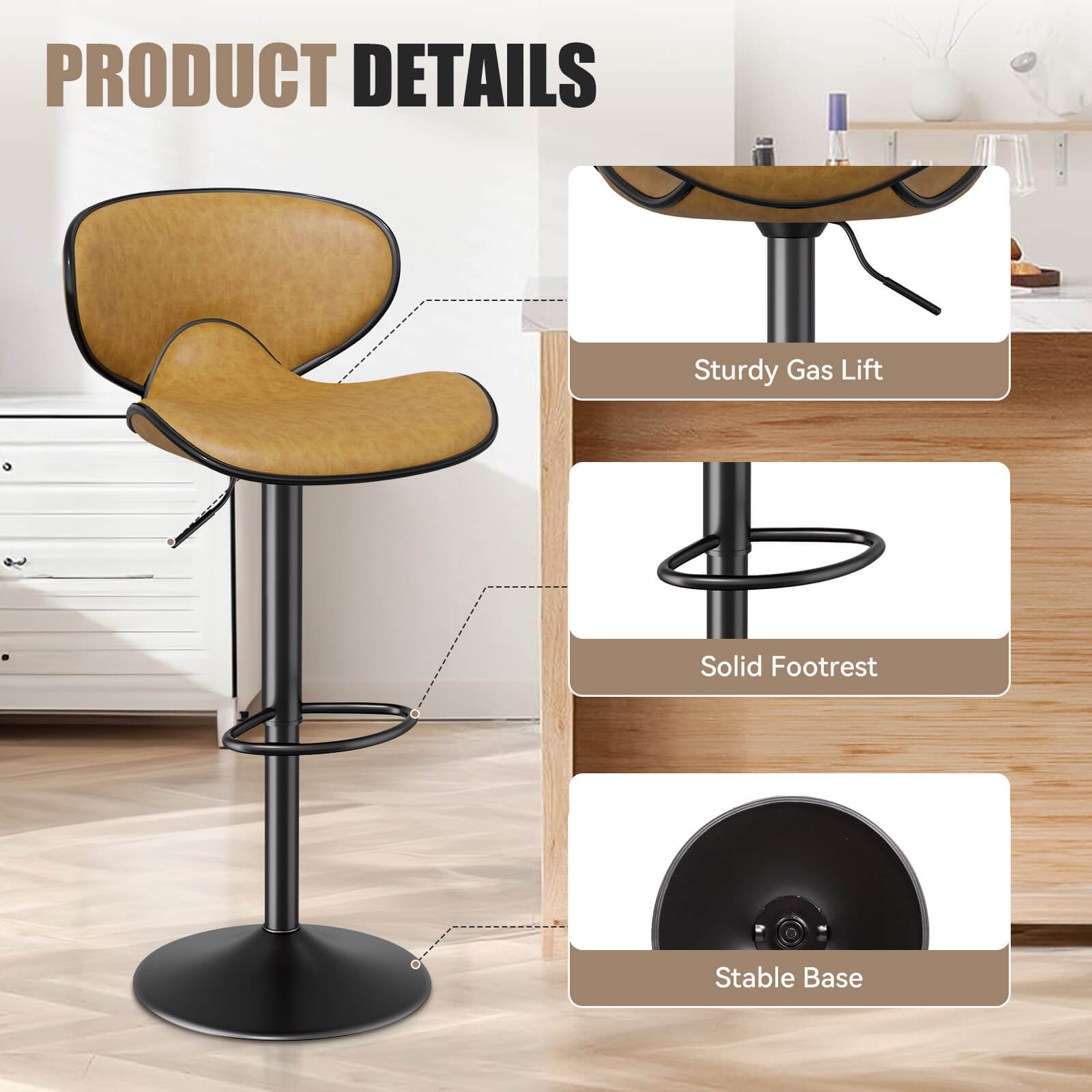 - Durability and Easy Maintenance- Crafted with high-quality modern leather upholstery, this bar stool is built to withstand daily use. The surface of bar stools is also easy to clean and maintain, ensuring its long-lasting beauty.