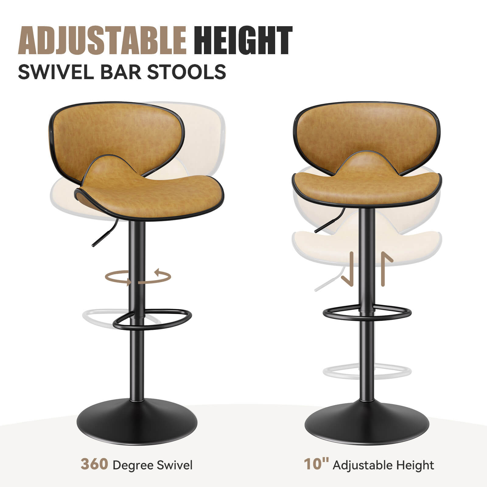 - Easy Rotation- The barstools' 360-degree swivel function allows you to effortlessly turn and interact with your surroundings. No more awkward twisting or reaching in kitchen, making it a convenient choice for socializing or multitasking.