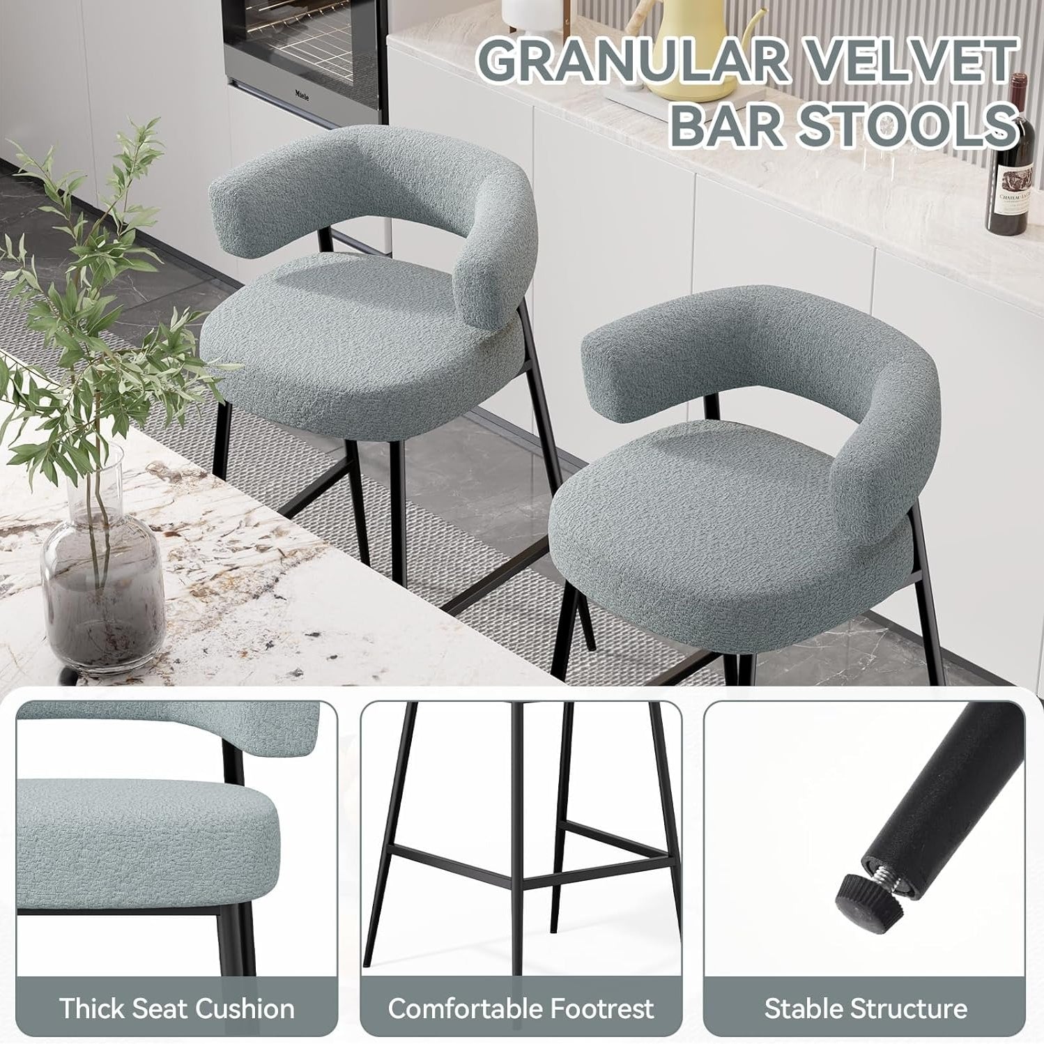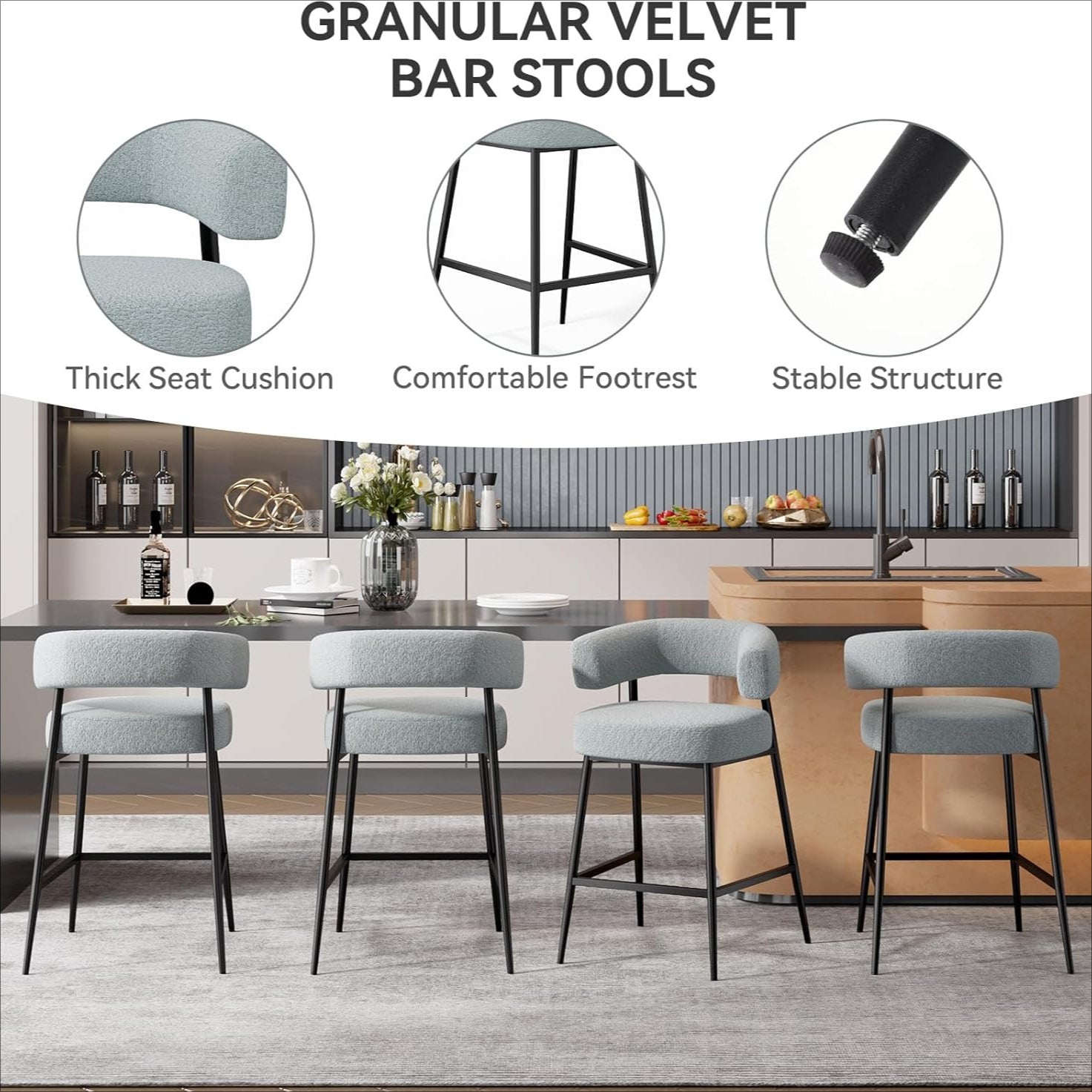 Elevate your kitchen or bar with these **premium granular velvet bar stools** — where plush comfort meets modern elegance. Designed for long sits and everyday use, they offer a perfect blend of **luxurious fabric, ergonomic support, and rock-solid durability**. ✨🍷