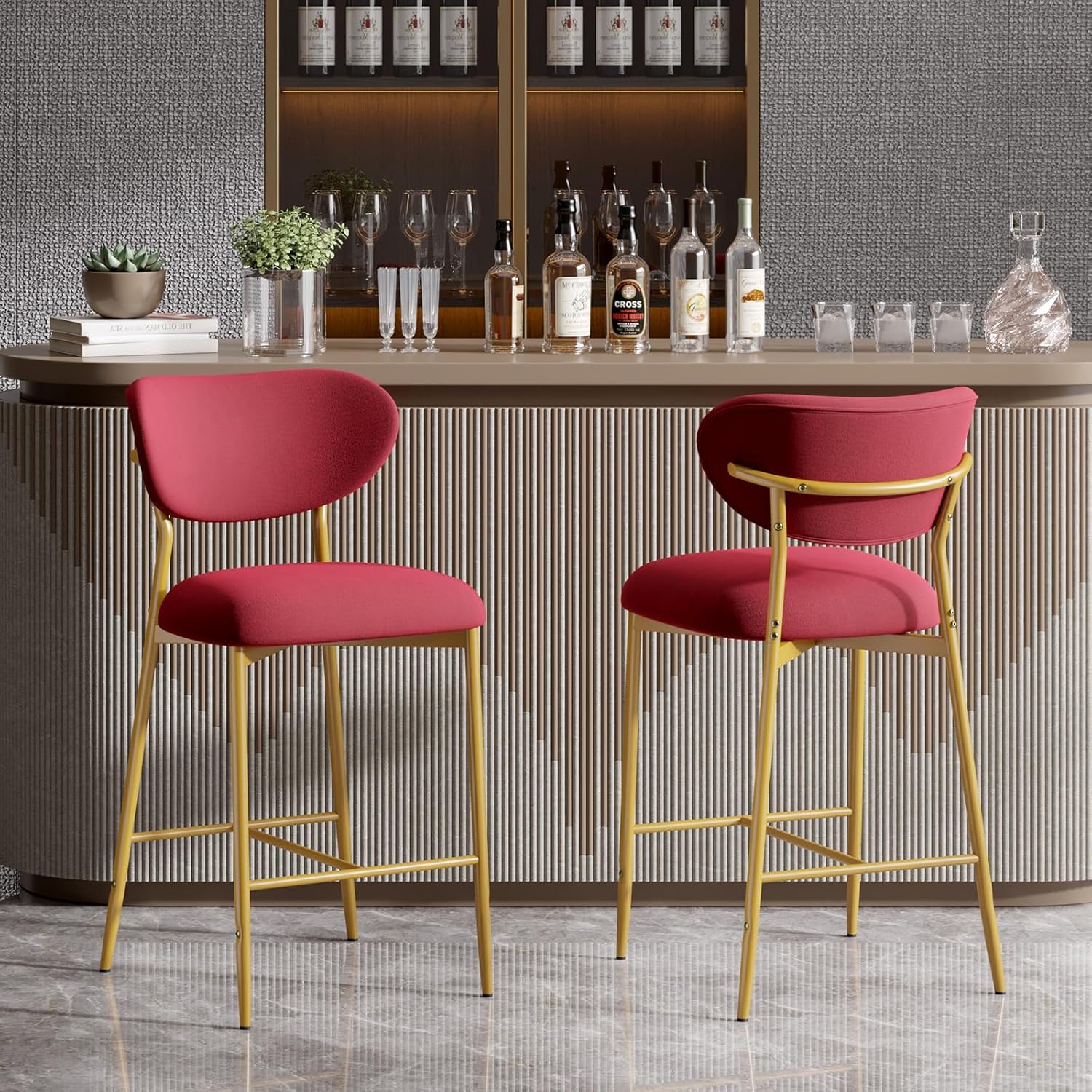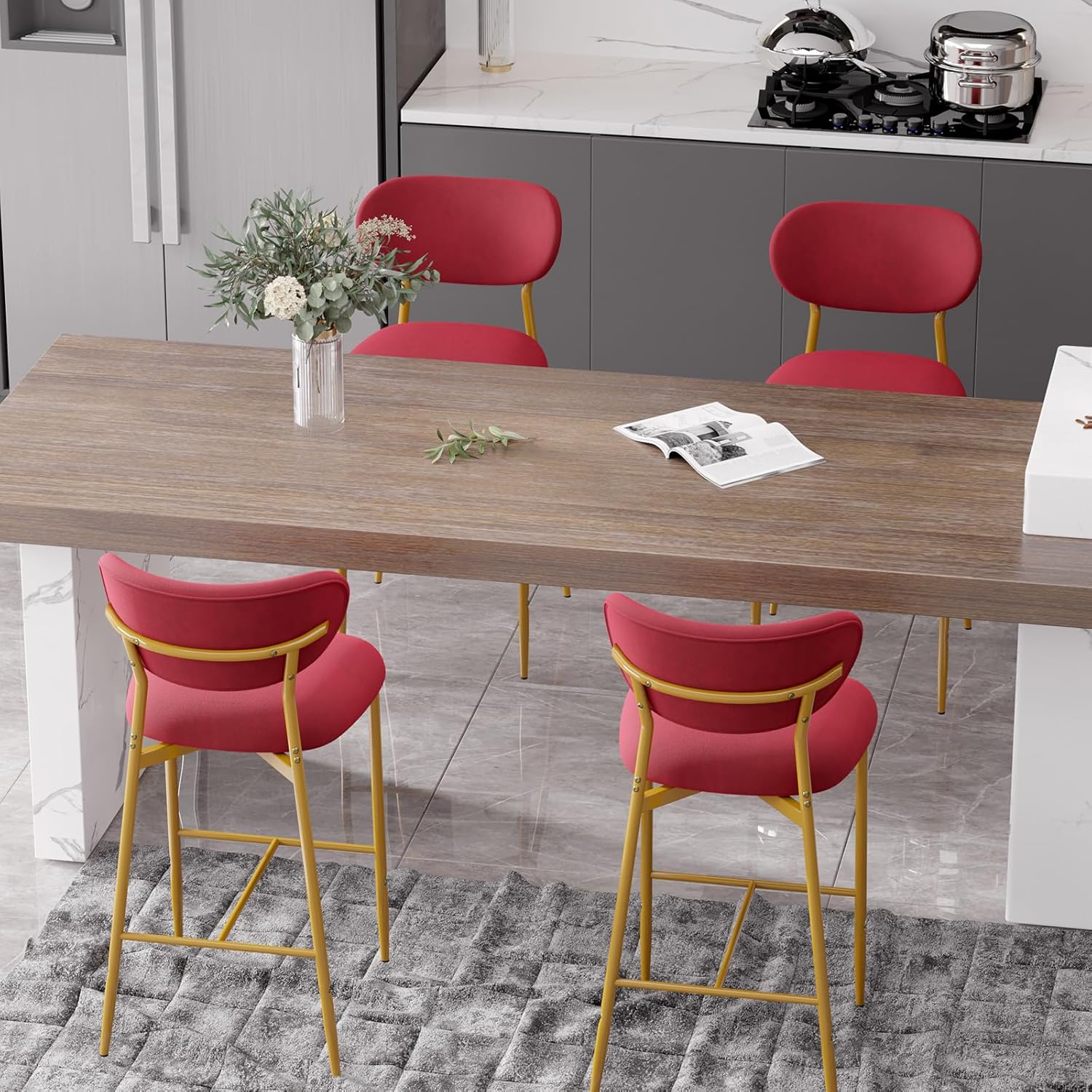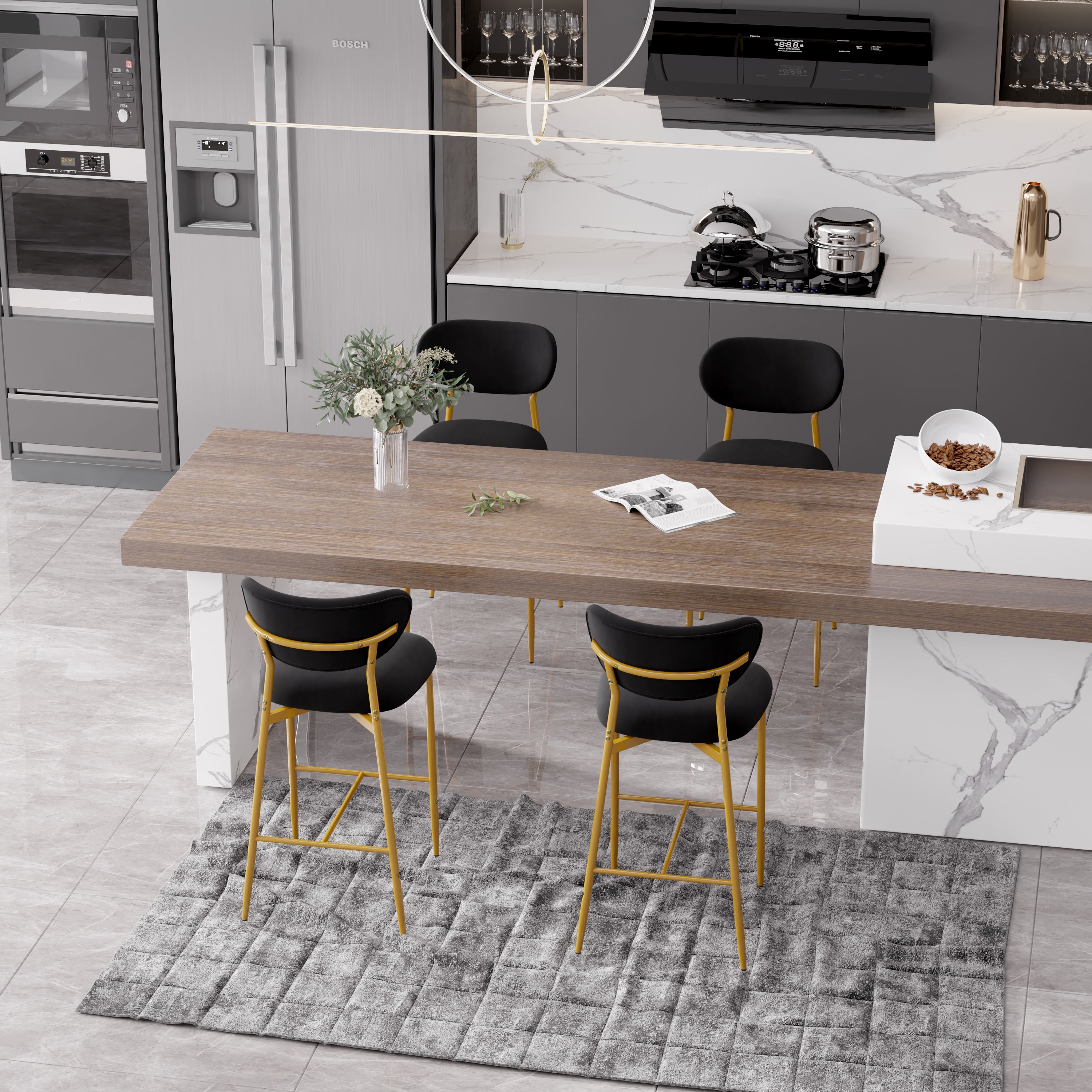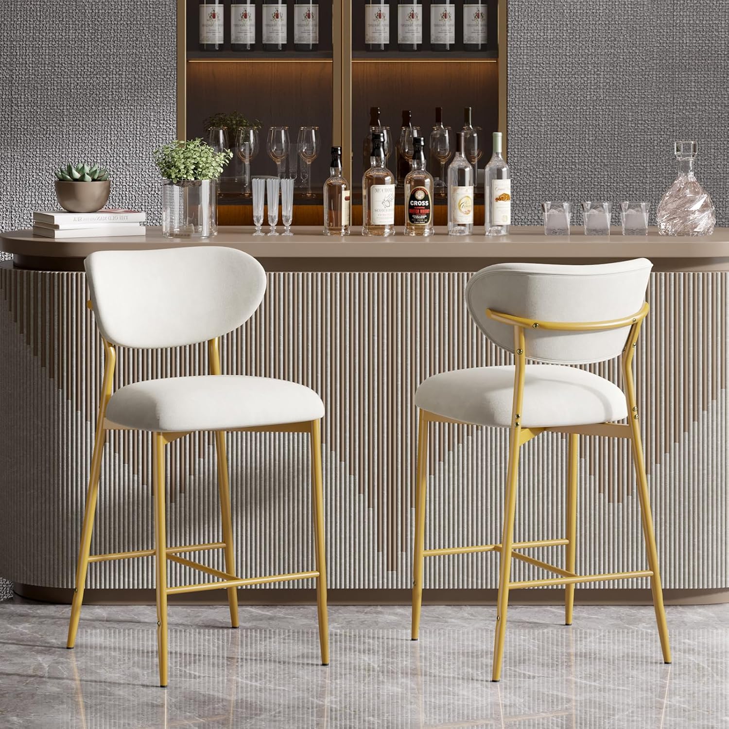 Elevate your kitchen island, home bar, or dining space with these **elegant velvet bar stools** — where **luxurious comfort meets timeless style**. Featuring a plush high-density cushion, sturdy gold metal base, and soft, skin-friendly velvet upholstery, they’re perfect for long sits, casual meals, or entertaining guests. ✨🍷