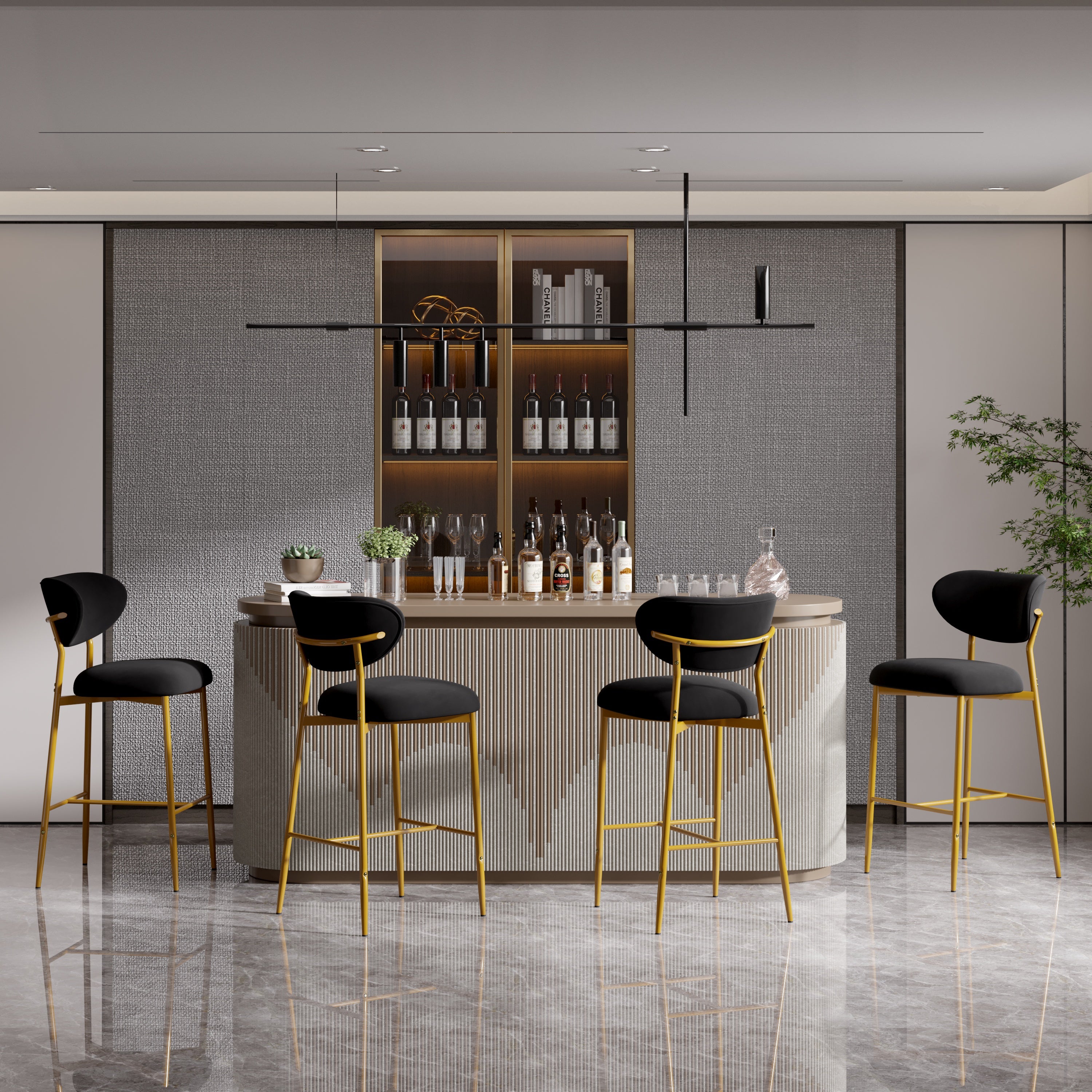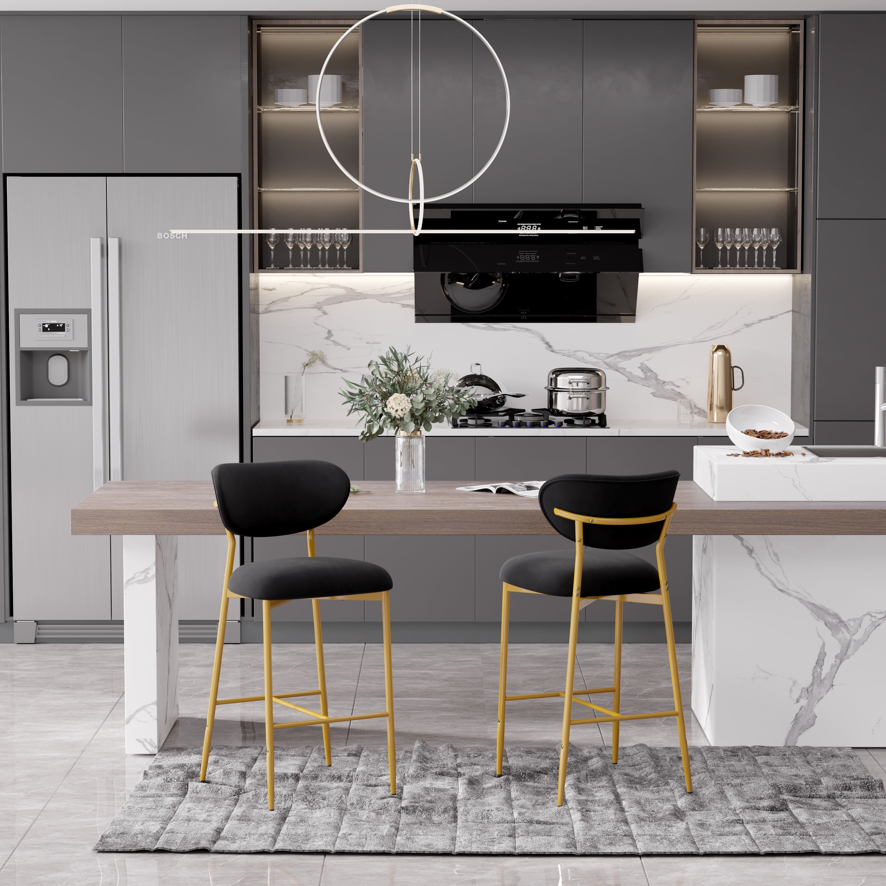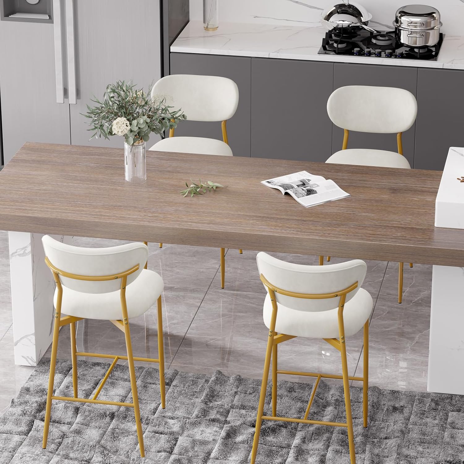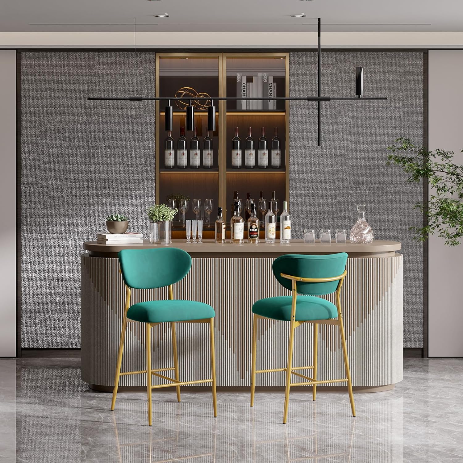 Elevate your kitchen island, home bar, or dining space with these **elegant velvet bar stools** — where **luxurious comfort meets timeless style**. Featuring a plush high-density cushion, sturdy gold metal base, and soft, skin-friendly velvet upholstery, they’re perfect for long sits, casual meals, or entertaining guests. ✨🍷