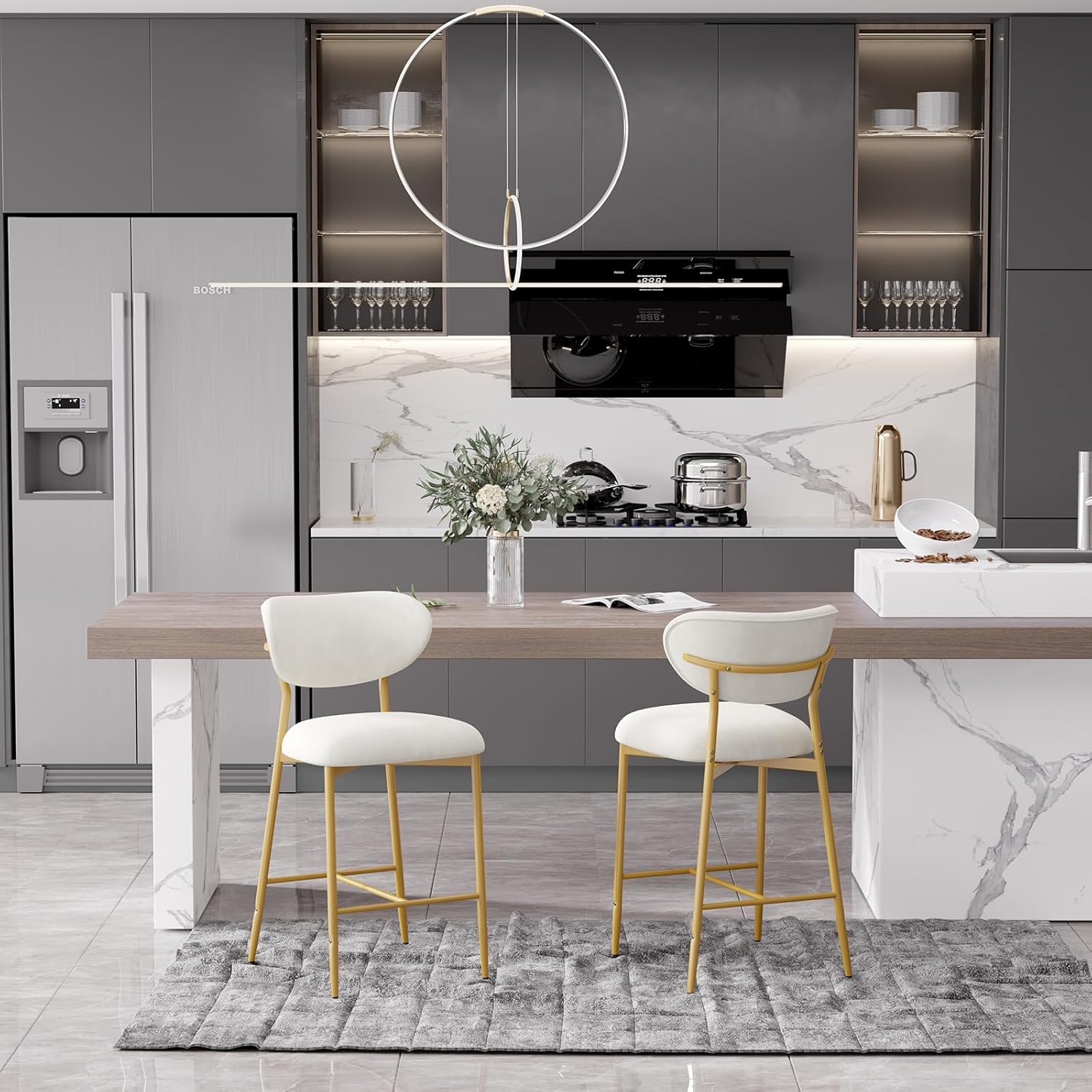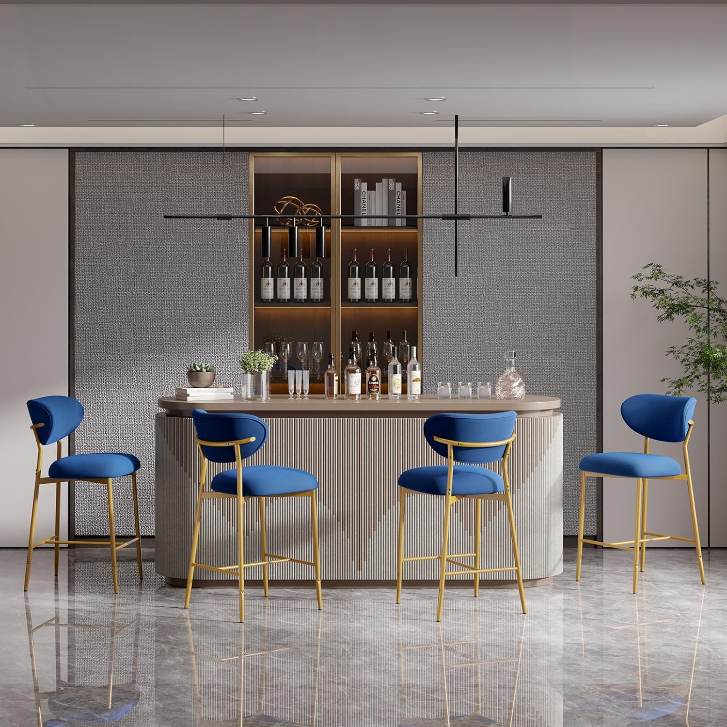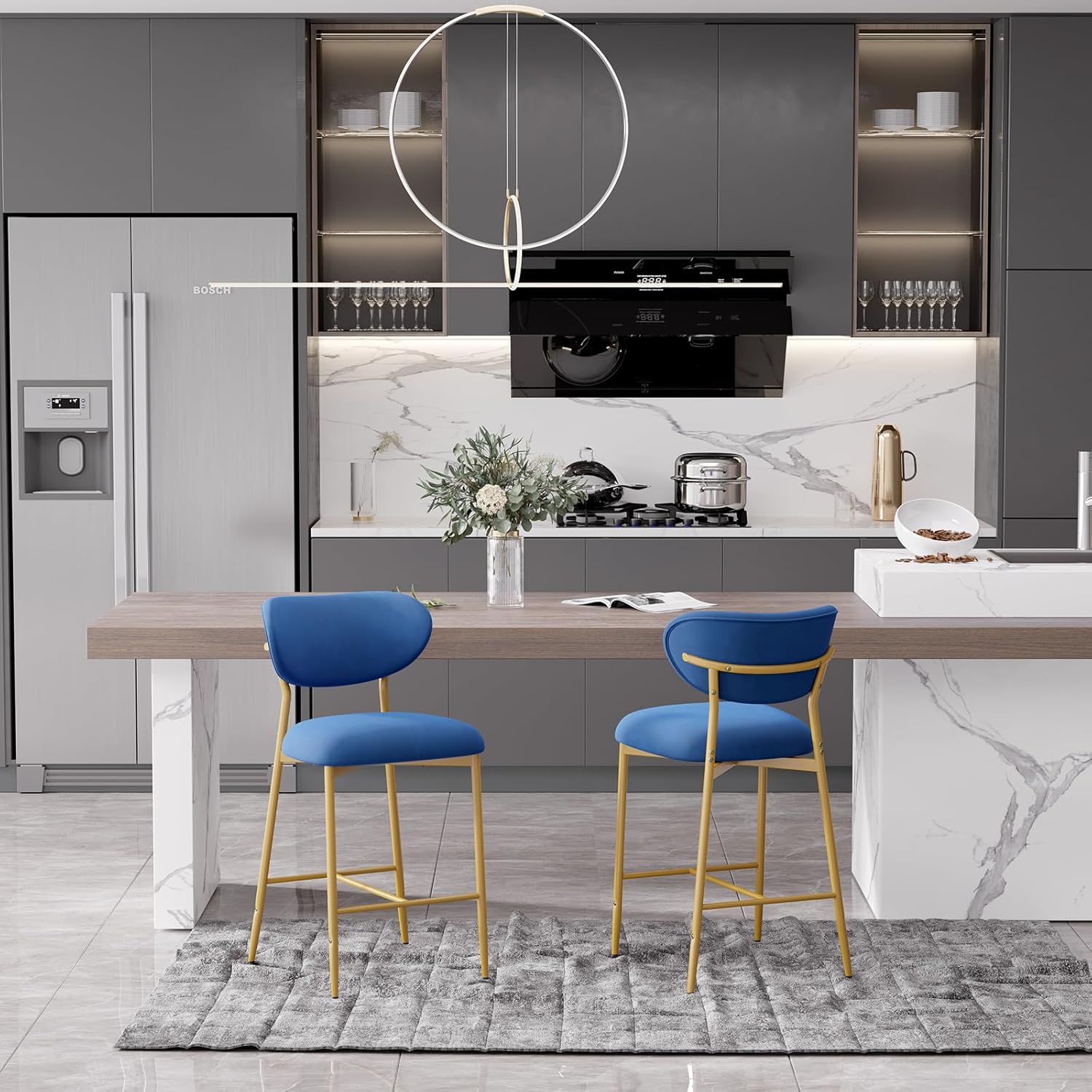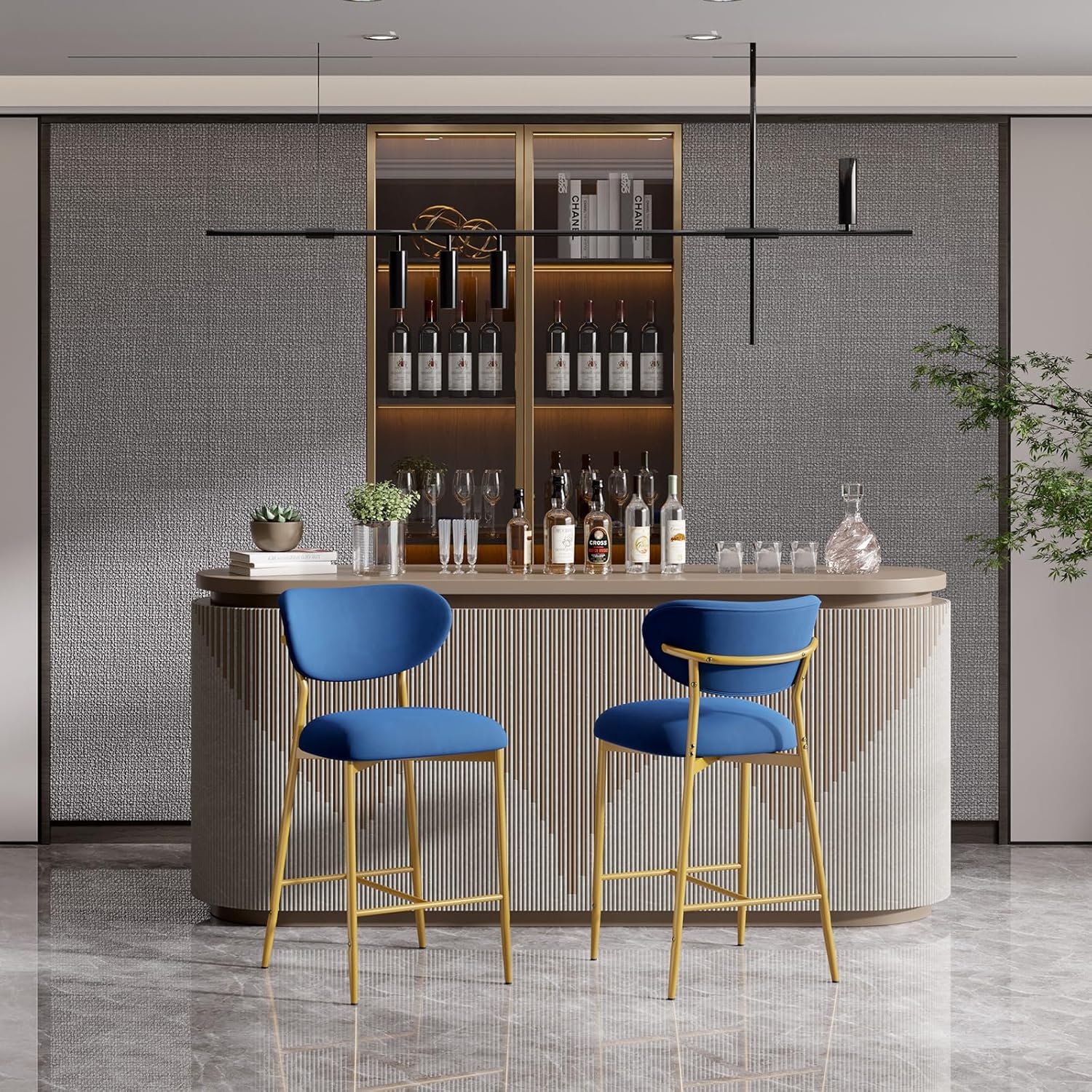 Elevate your kitchen island, home bar, or dining space with these **elegant velvet bar stools** — where **luxurious comfort meets timeless style**. Featuring a plush high-density cushion, sturdy gold metal base, and soft, skin-friendly velvet upholstery, they’re perfect for long sits, casual meals, or entertaining guests. ✨🍷