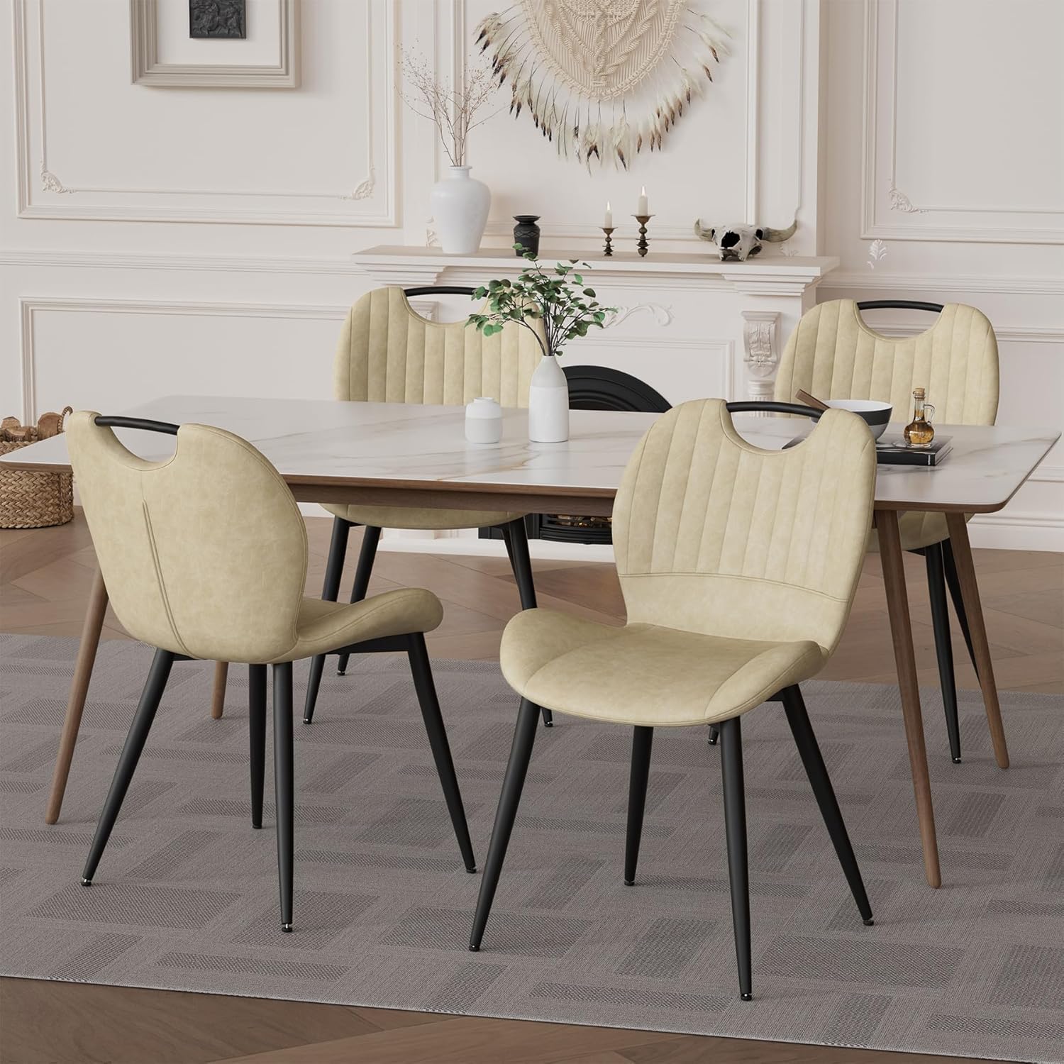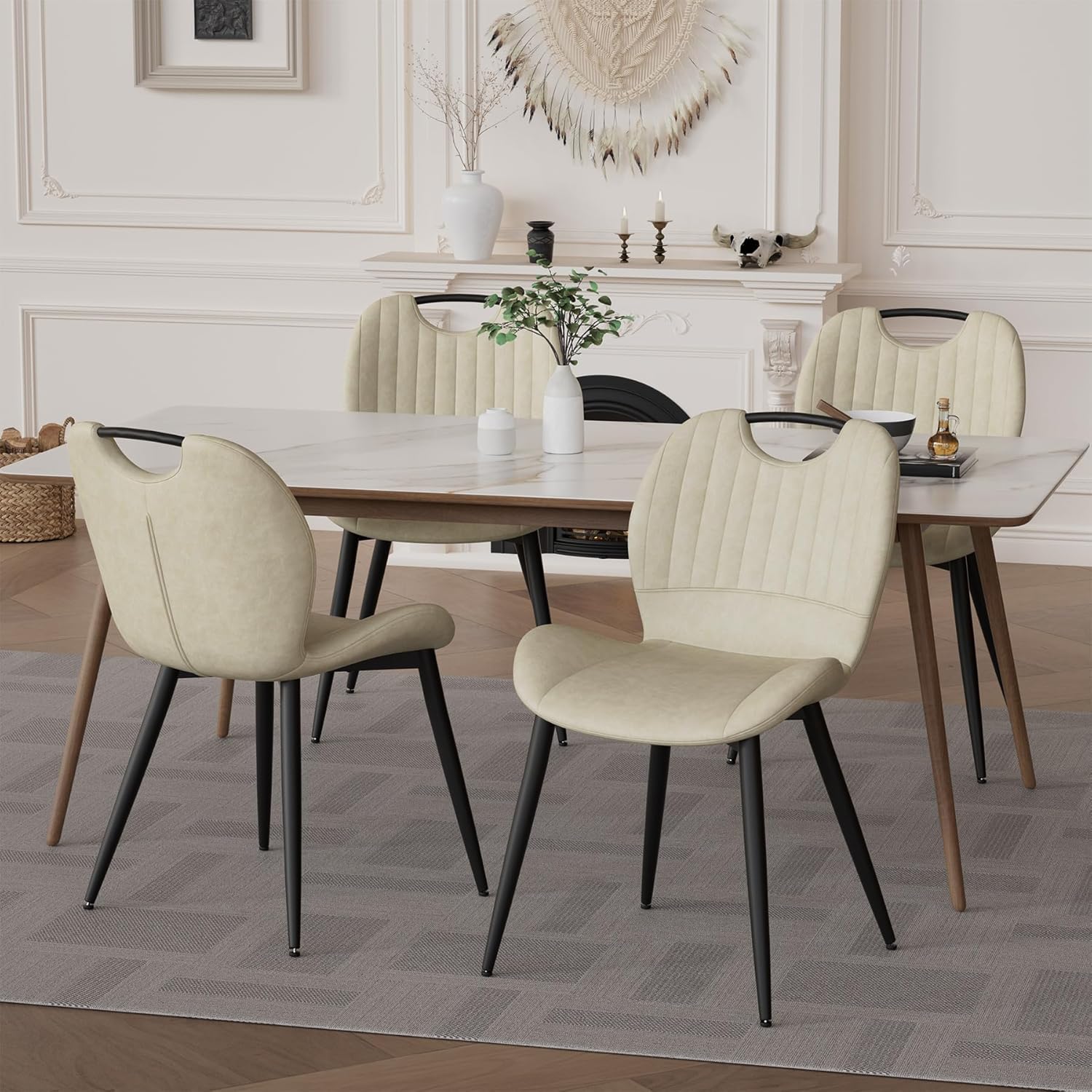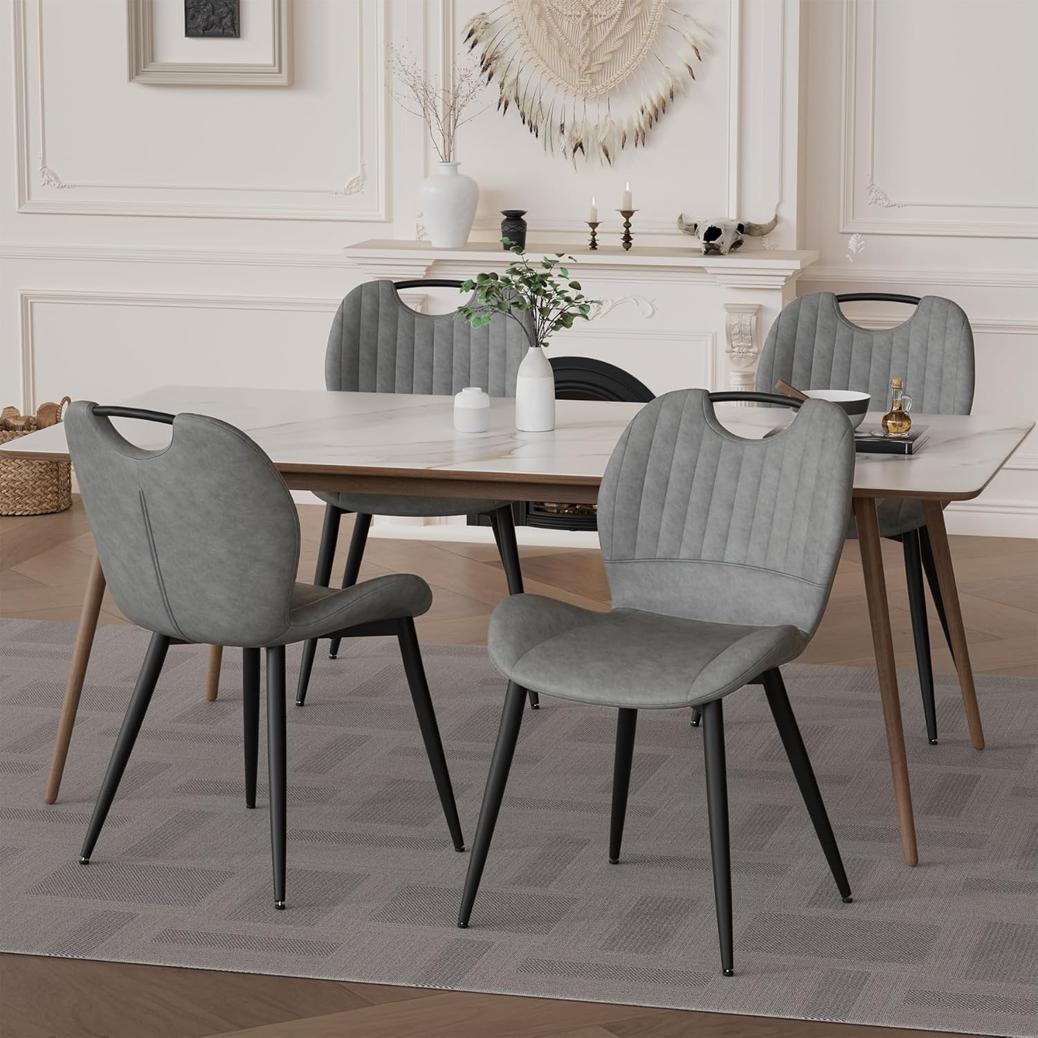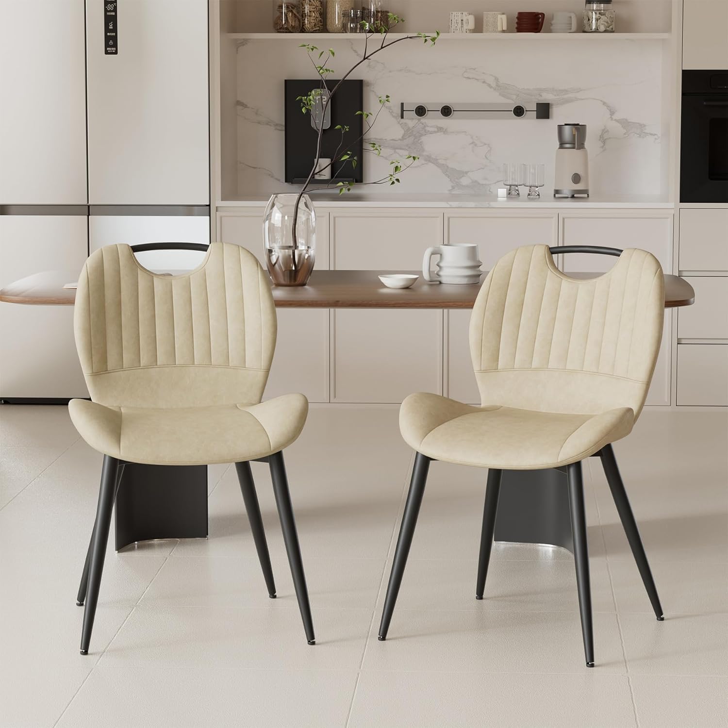 - 【Easy to Clean】The modern dining chairs are covered by water-resistant quality leather, which makes the surface smooth and easy to clean. A piece of wet cloth or rag will wipe the chair clean, which is time-saving and convenient.