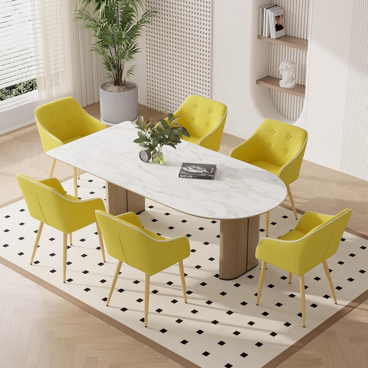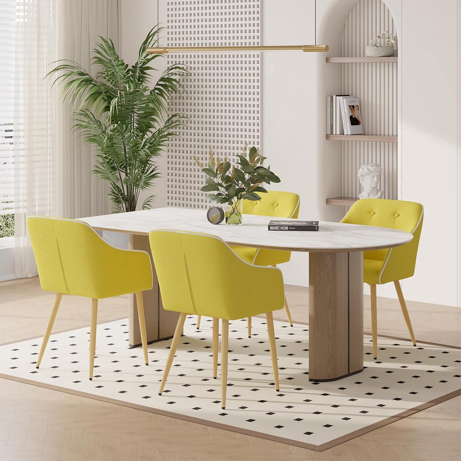 - Elegant and Stylish Design- The dining chair features a timeless and elegant design that can complement a variety of interior styles. The fabric upholstery of dining chairs is available in multiple colors to match your dining room decor, while the wooden legs add a natural and warm touch to the overall look.