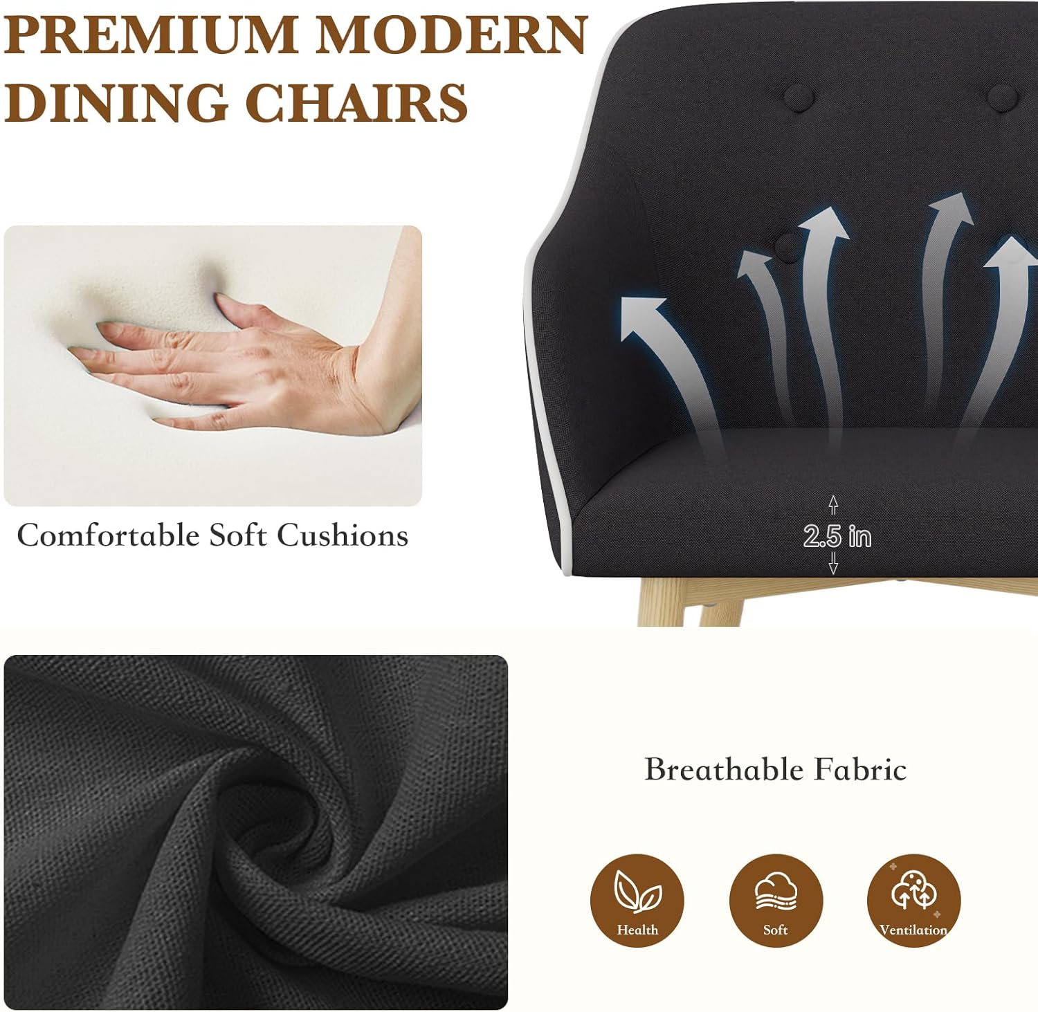 - Comfortable and Supportive Seating- This dining chair is designed with your comfort in mind. The thick foam cushion of dining chairs provides excellent support and a plush seating experience, making it perfect for long, leisurely meals in dining room. The fabric upholstery is soft to the touch and adds an extra layer of comfort.