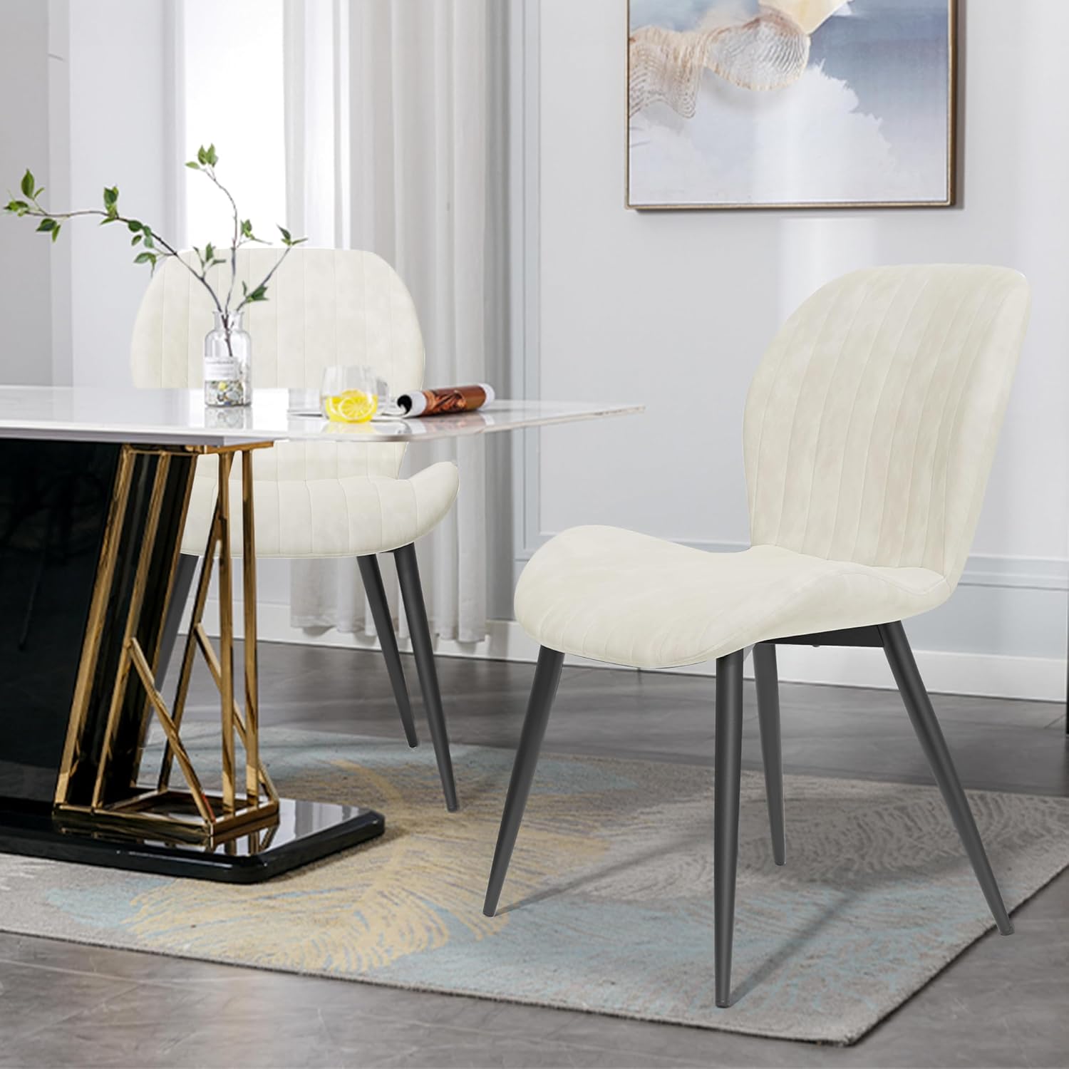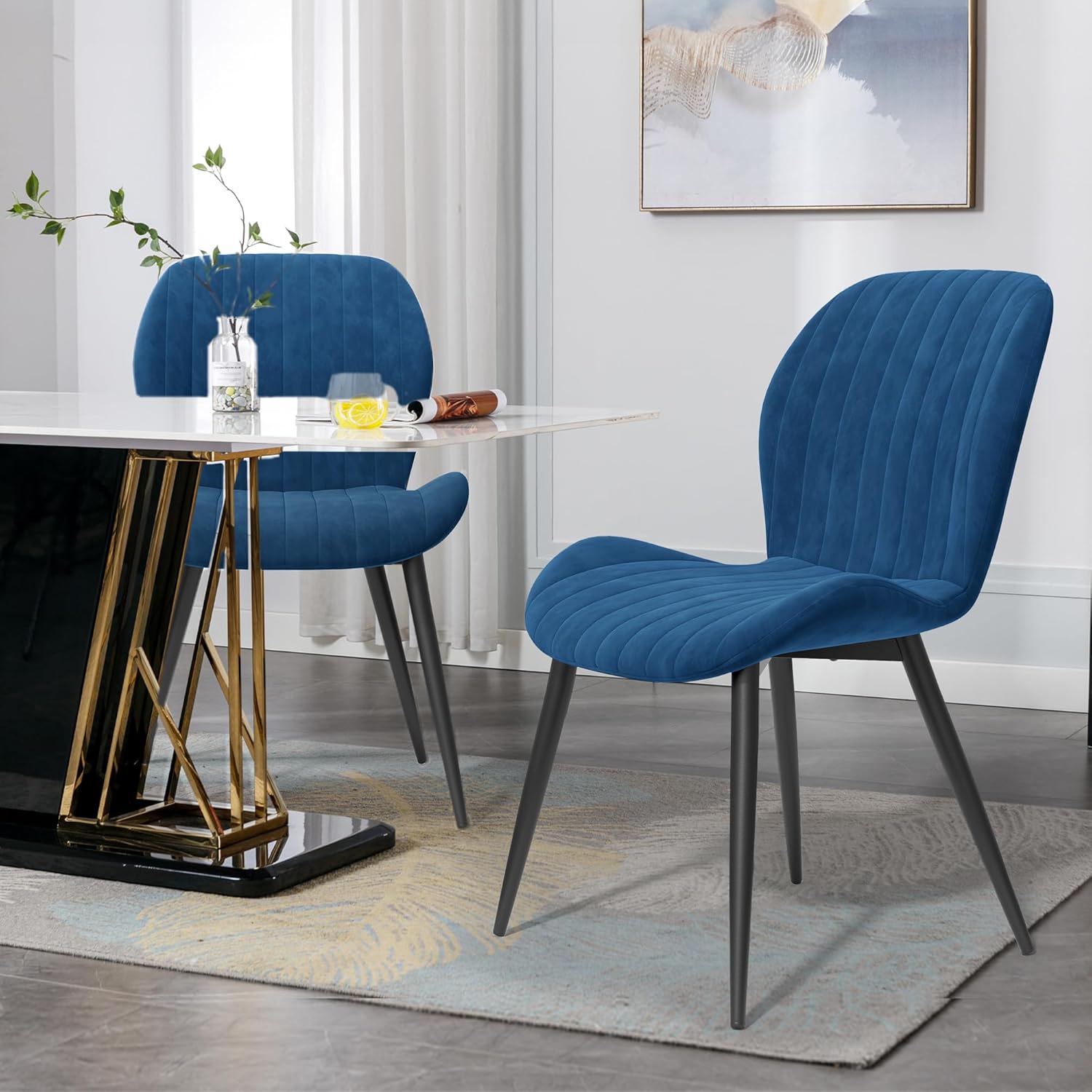 Nalupatio Velvet Dining Chairs – Thick Cushions, Metal Legs Set of 2