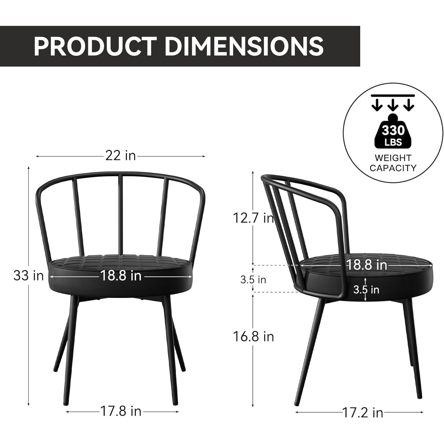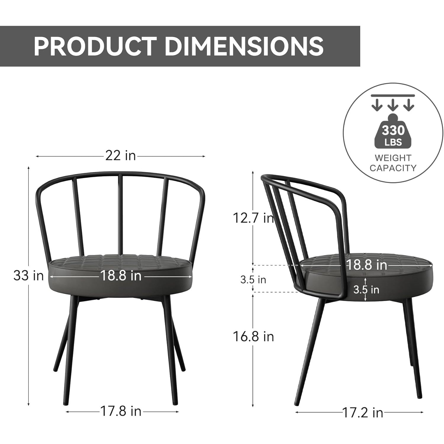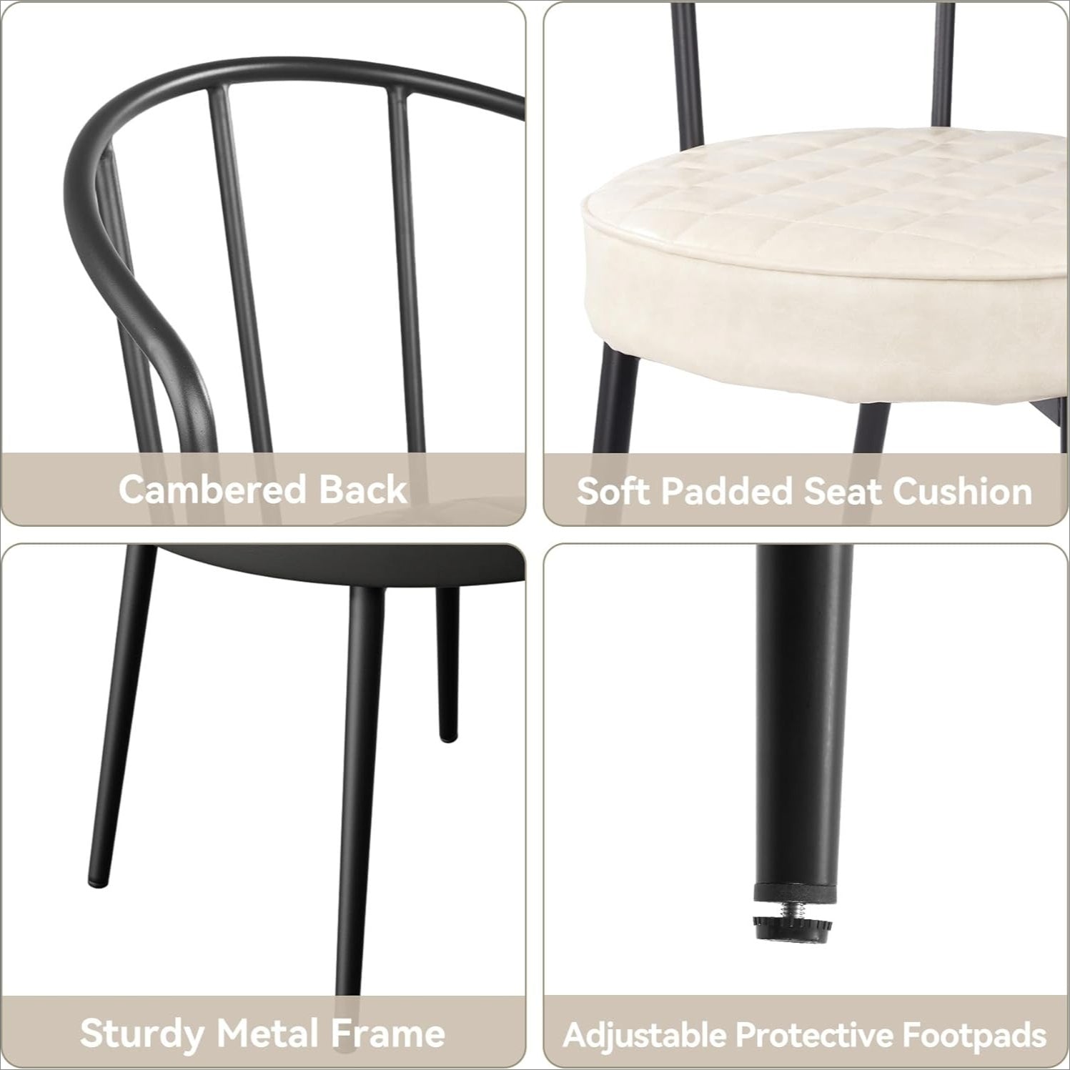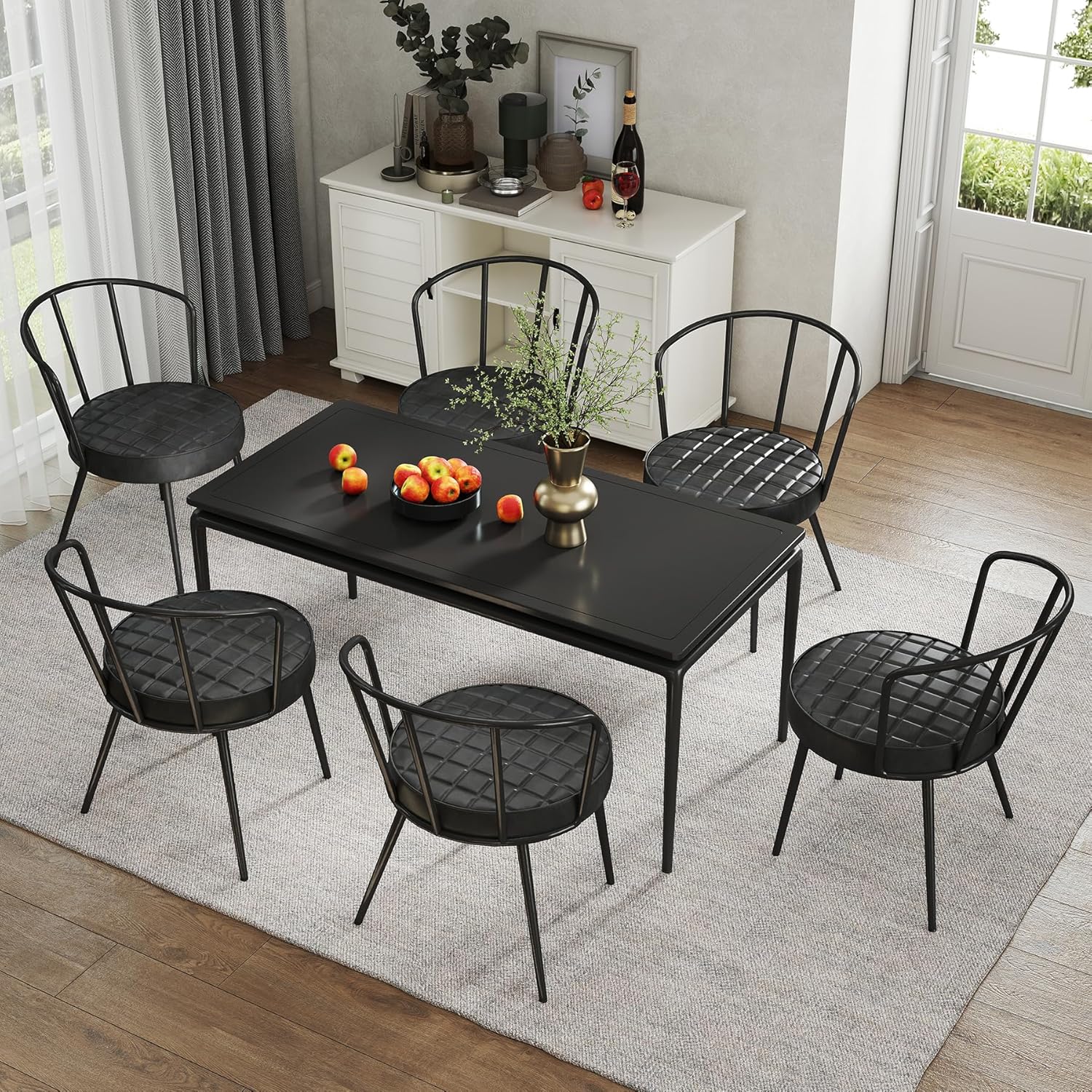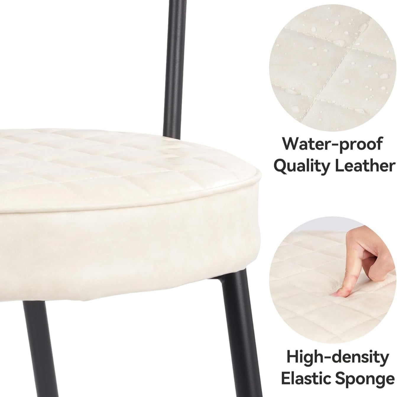 Nalupatio Upholstered Dining Chairs – Leather Seat, Metal Legs Set of 2
