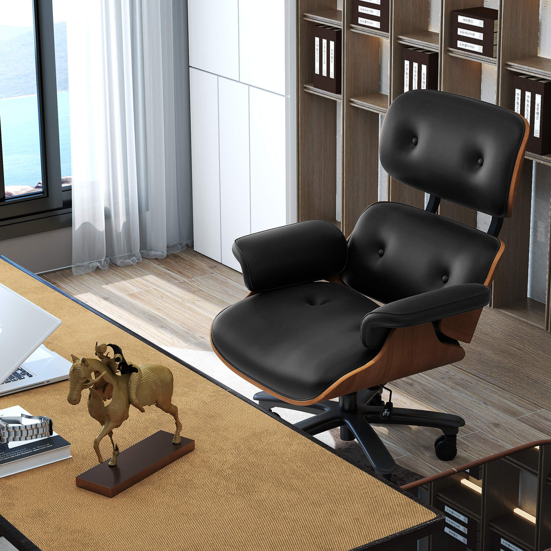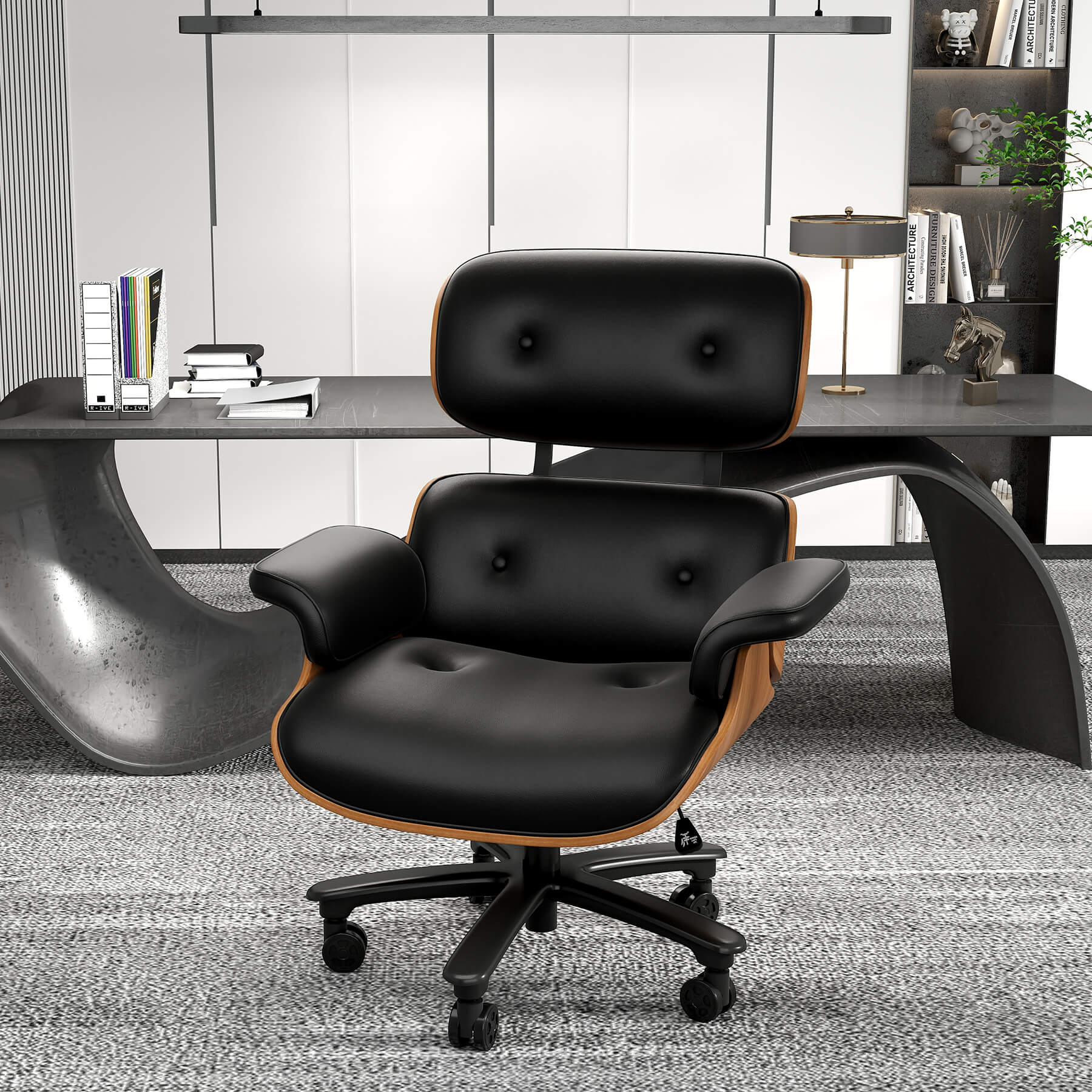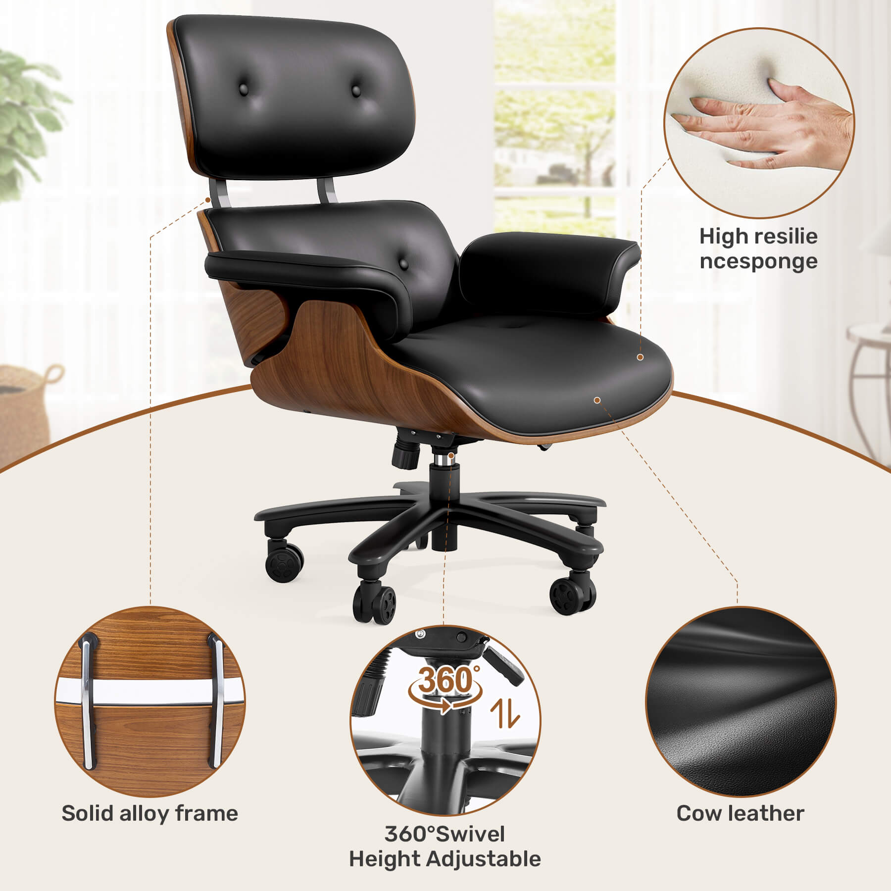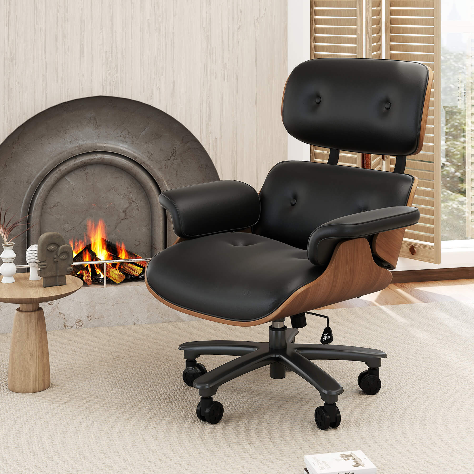 Elevate your workspace with this premium office chair crafted from **genuine leather** and finished with **rich wood accents** for a timeless, mid-century modern look. Designed for comfort, durability, and smooth performance — perfect for home offices, executive spaces, or creative studios. ✨💼