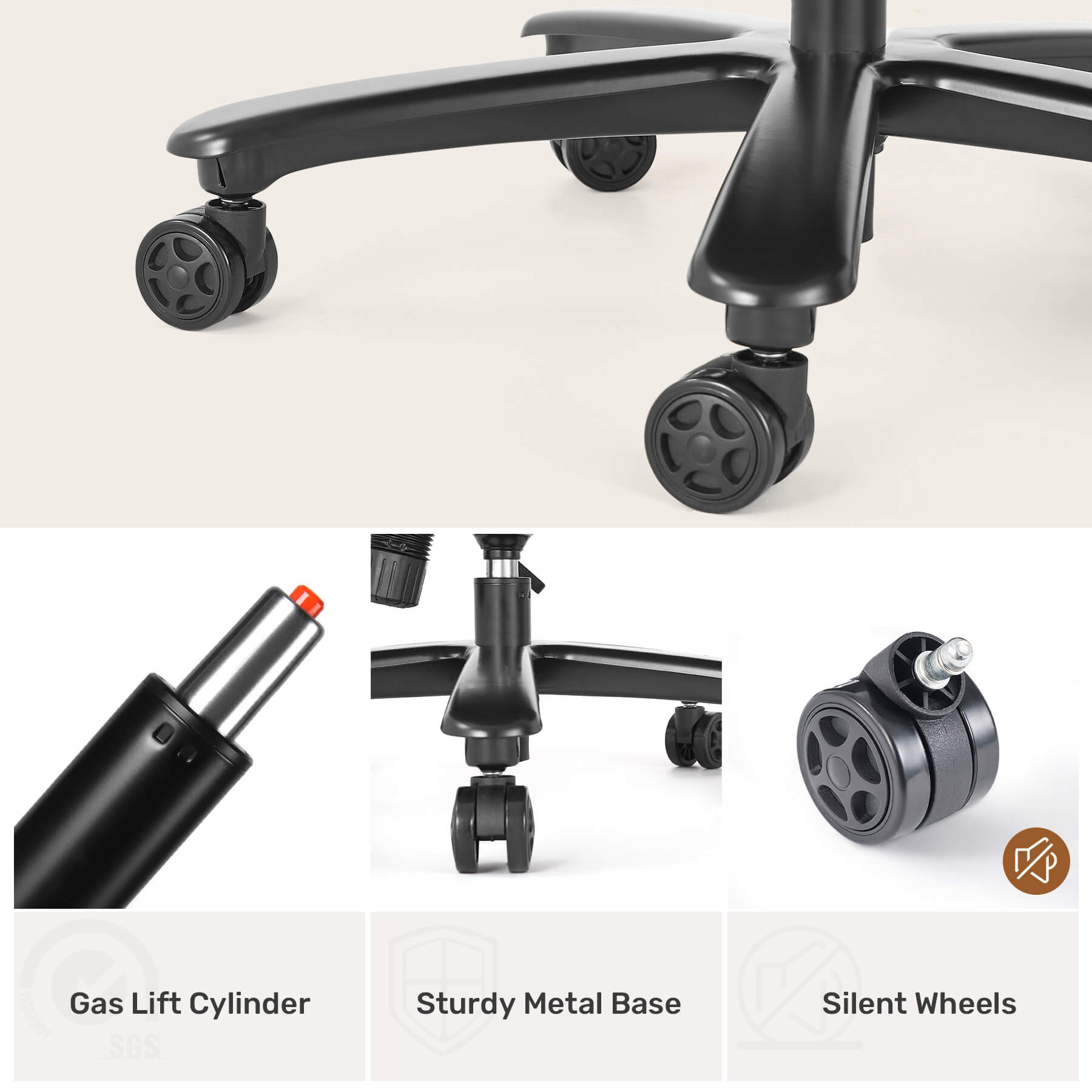 Smooth Gas Lift Mechanism: Effortlessly adjust the seat height to match your desk. Plus, enjoy full 360-degree rotation for easy movement and better workflow.