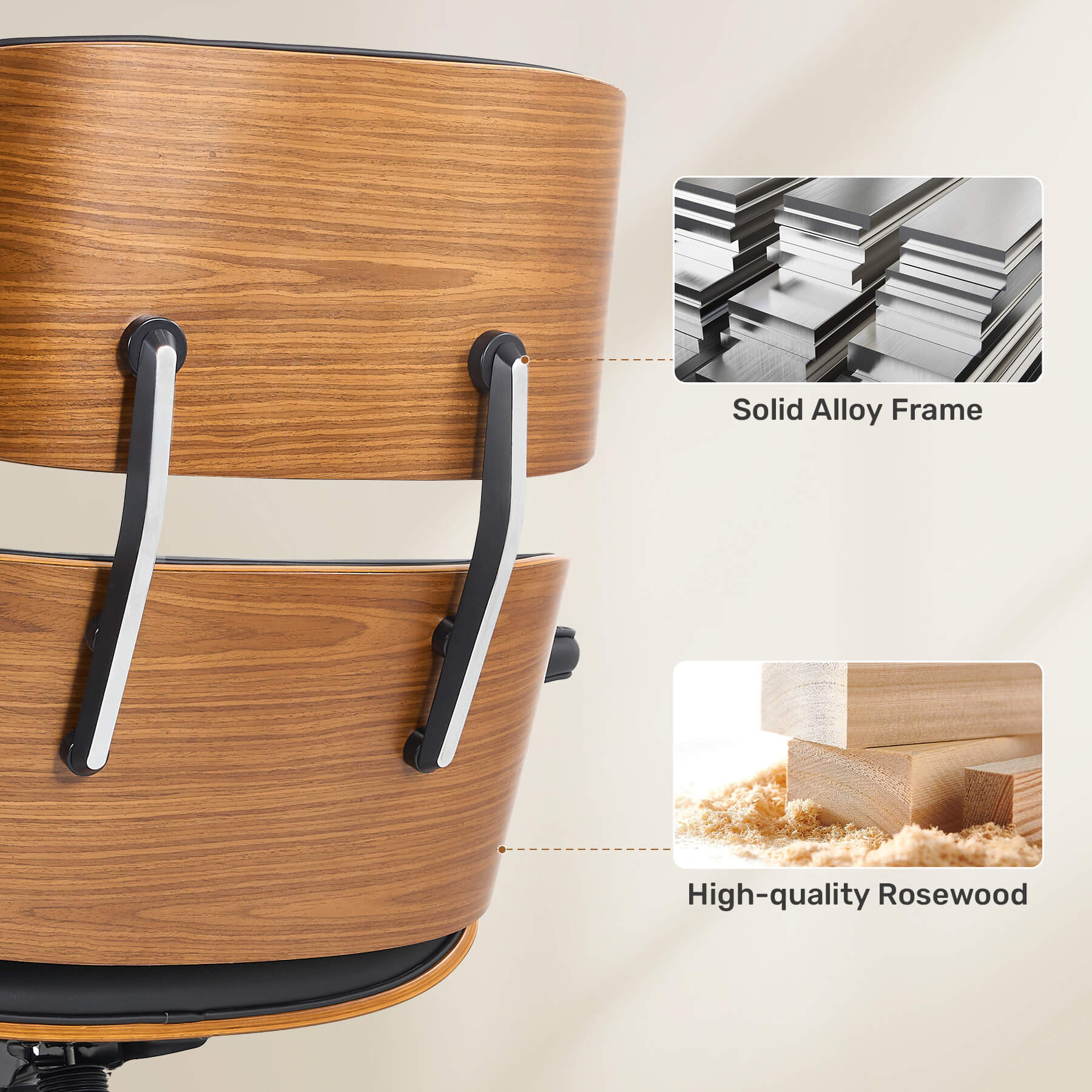 Genuine Leather + Wood Finish: Luxuriously soft genuine leather upholstery paired with a high-quality solid wood base creates a sophisticated, upscale aesthetic that ages beautifully over time.