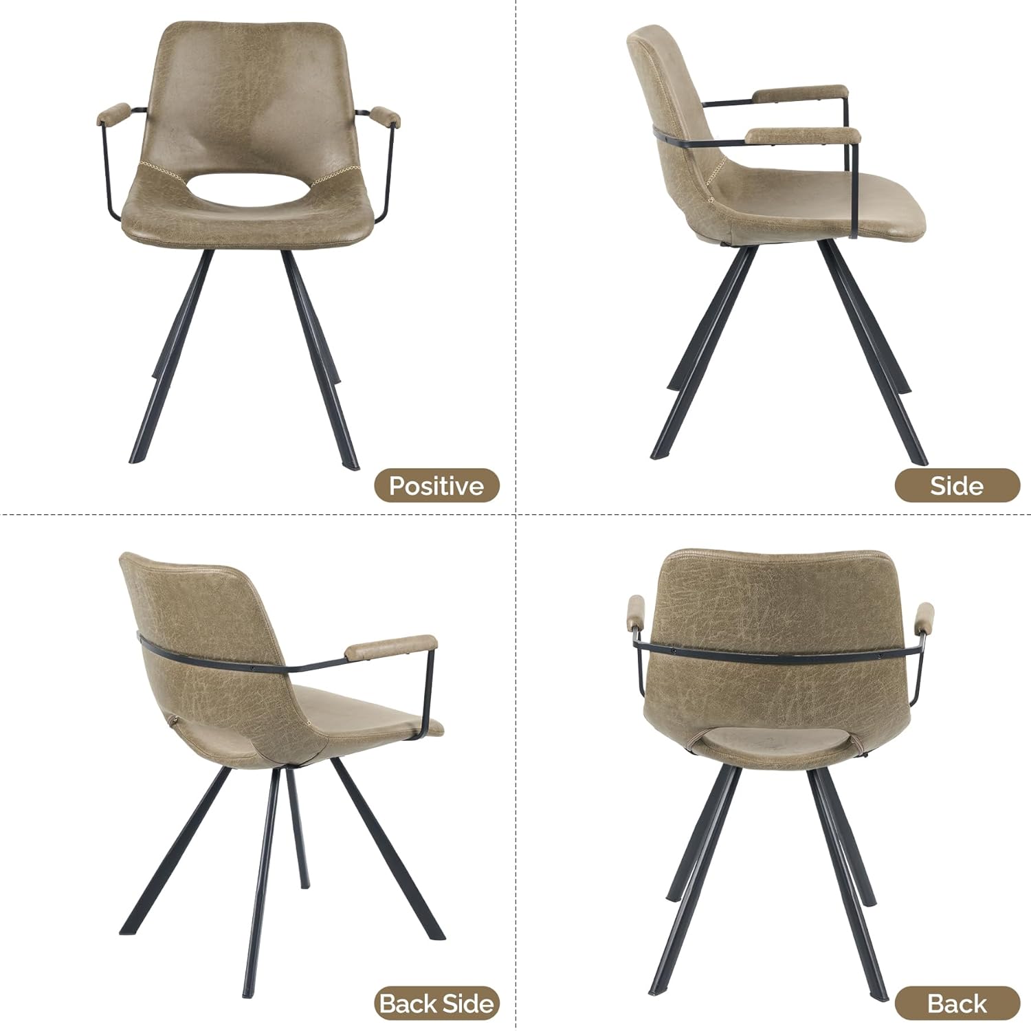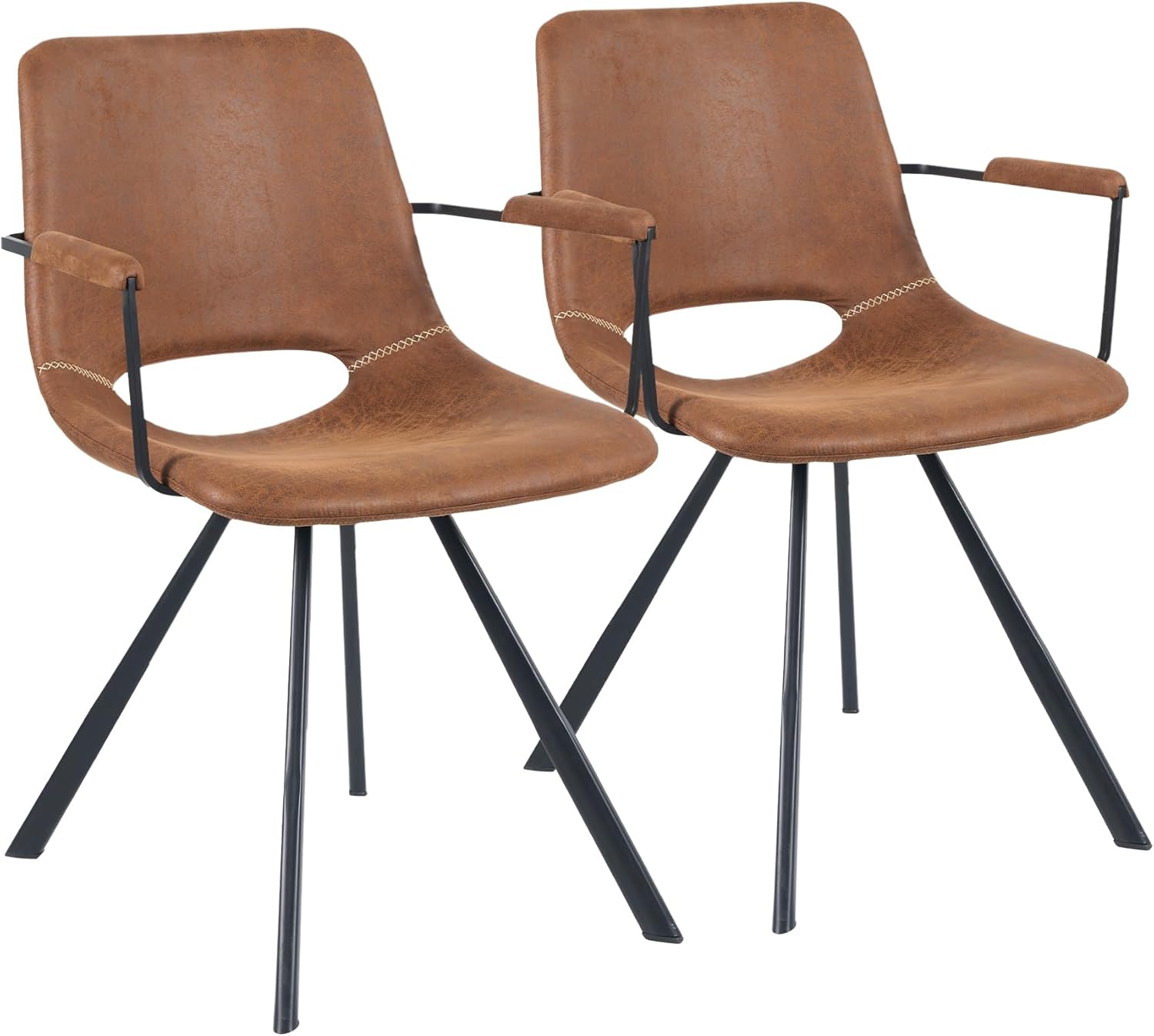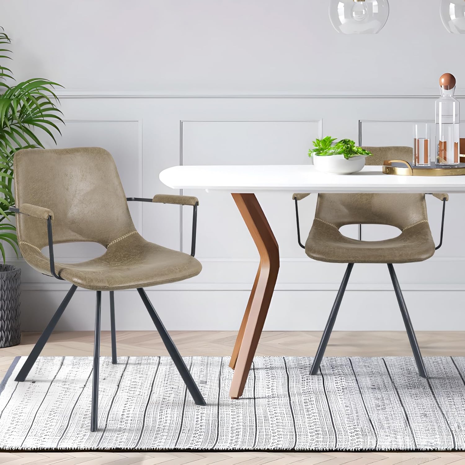 Nalupatio Mid-Century Leather Dining Chairs Metal Legs, Padded Seat Set of 2