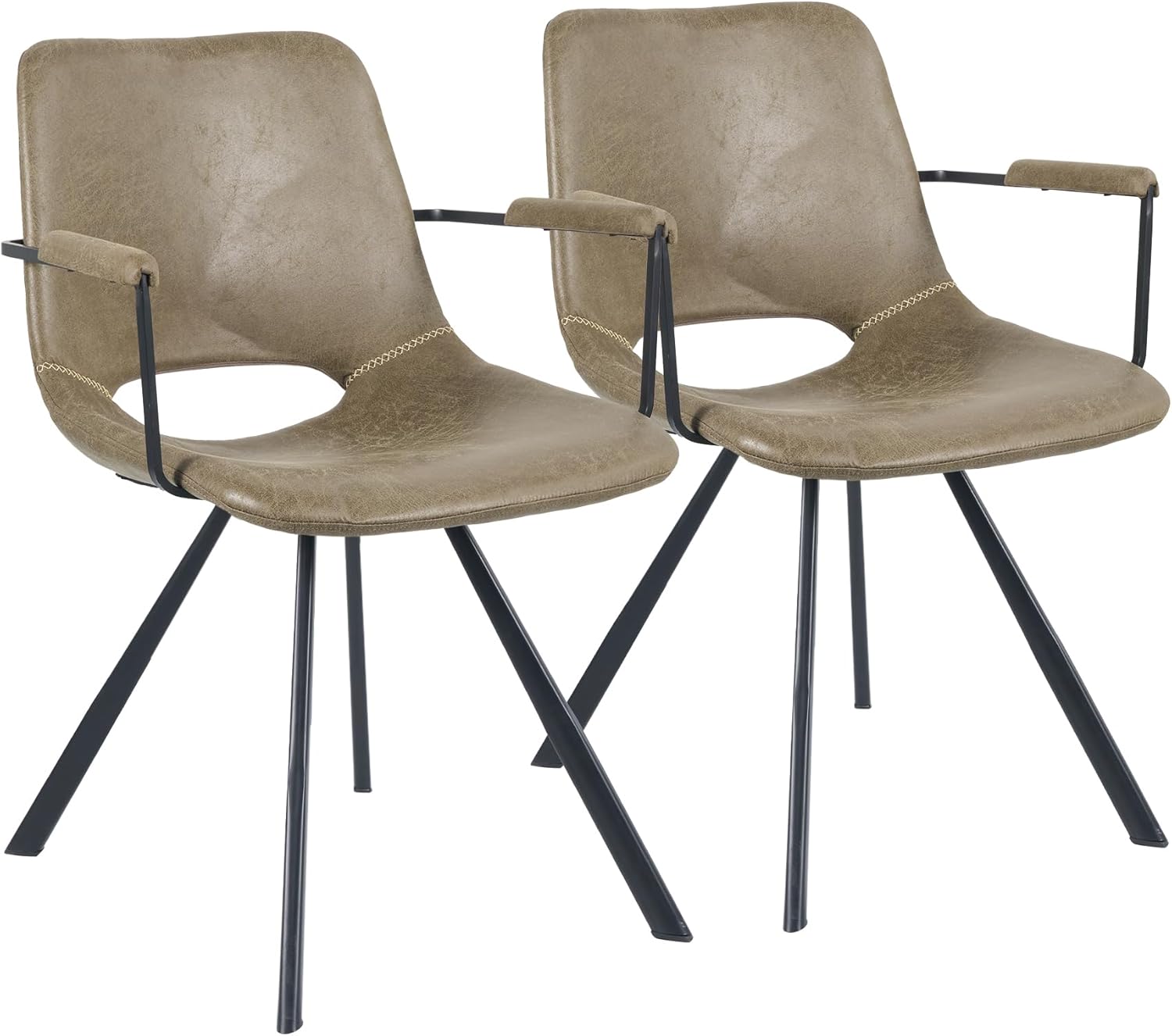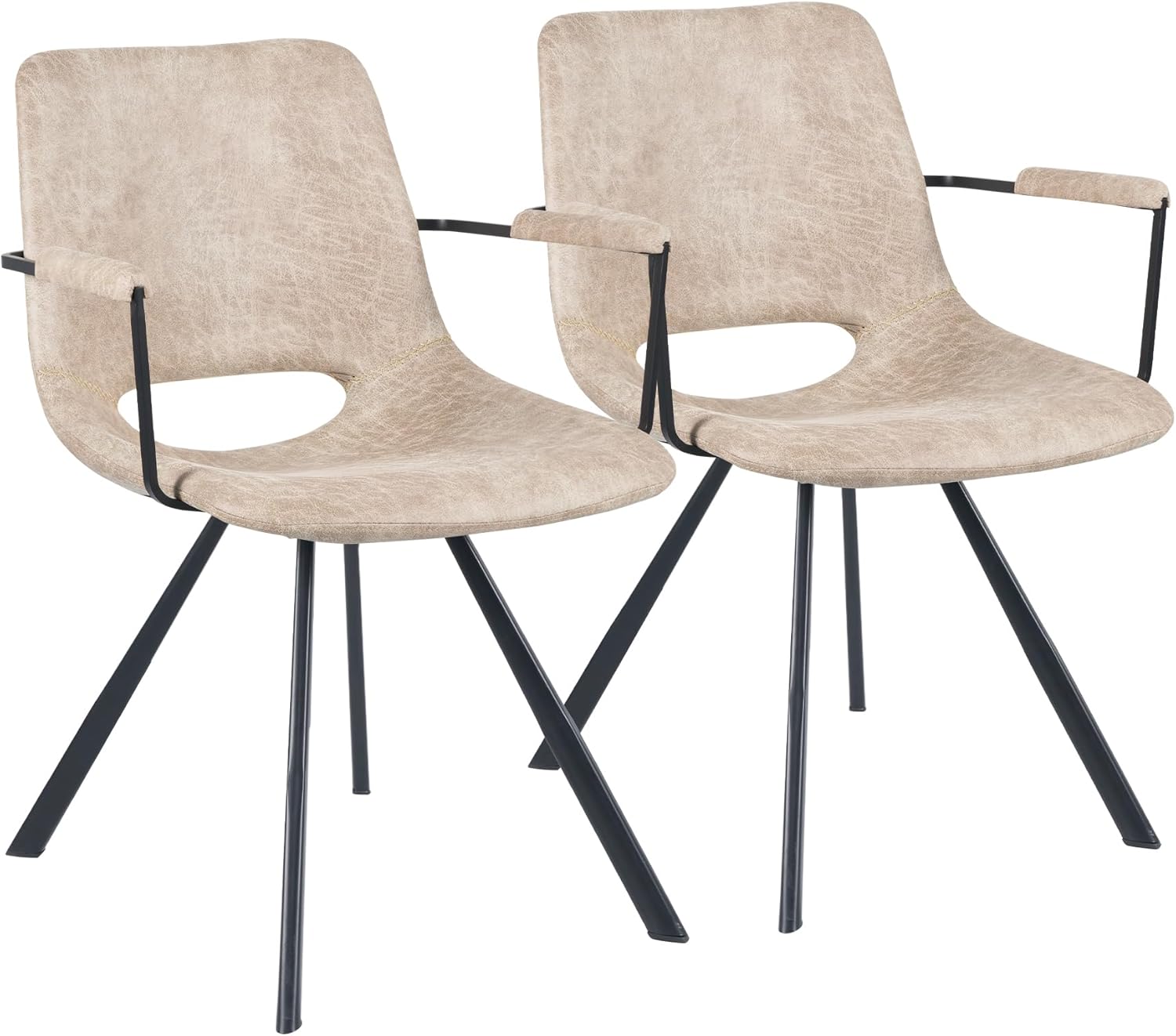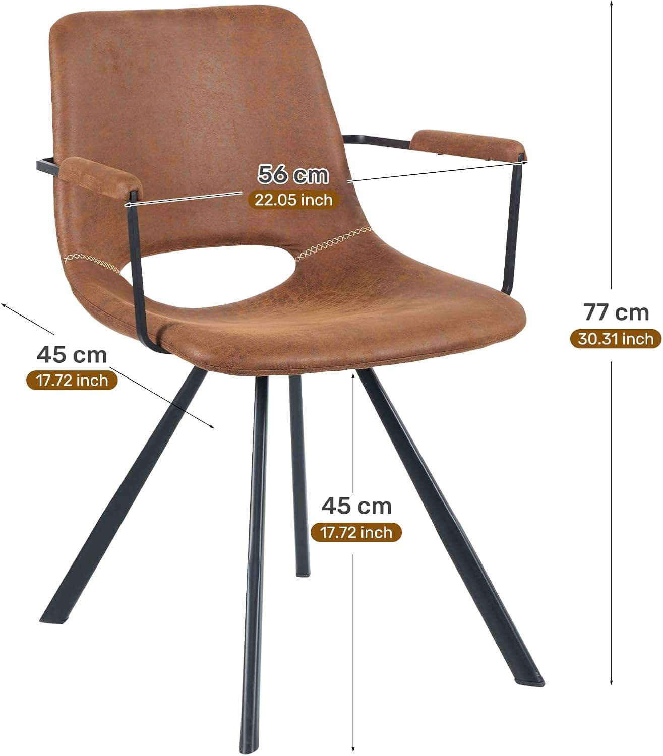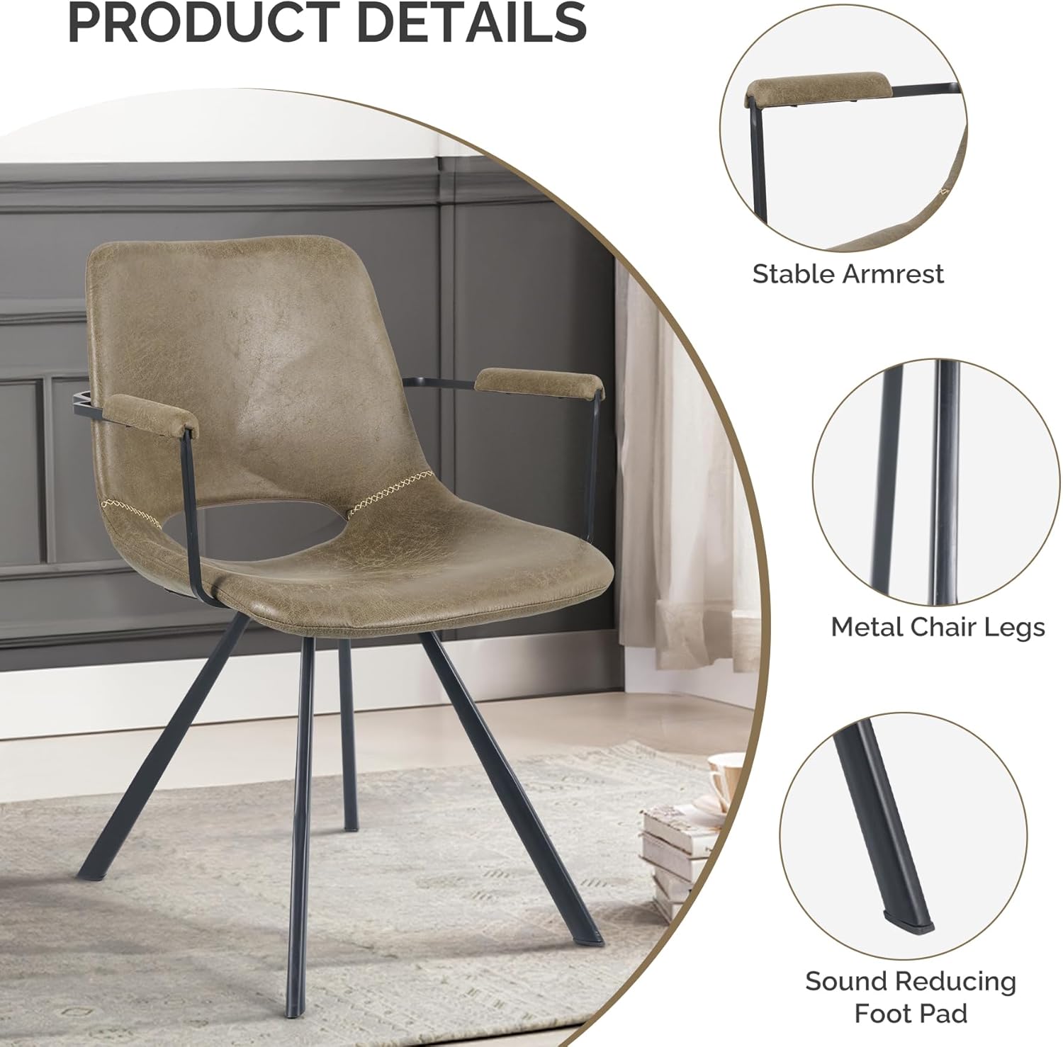 Nalupatio Mid-Century Leather Dining Chairs Metal Legs, Padded Seat Set of 2