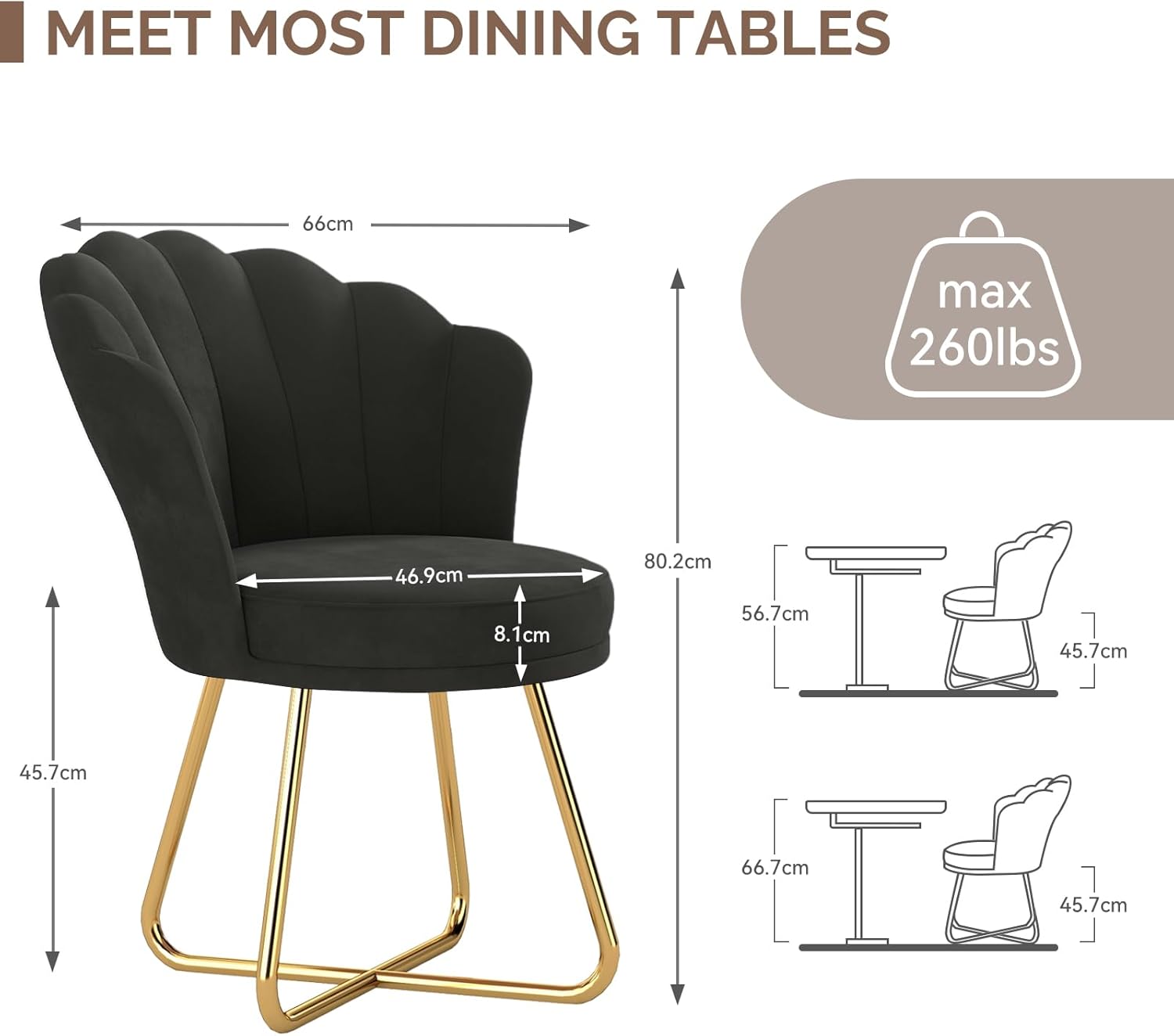 Nalupatio Modern Accent Chair – Petal Back Gold Metal Legs 130kg Capacity