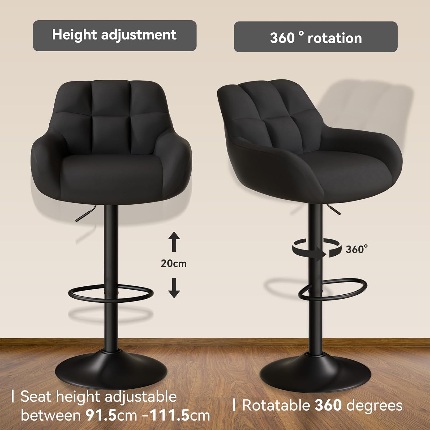 Nalupatio Adjustable PU Leather Bar Stools – 360° Swivel, with Armrest Set of 2