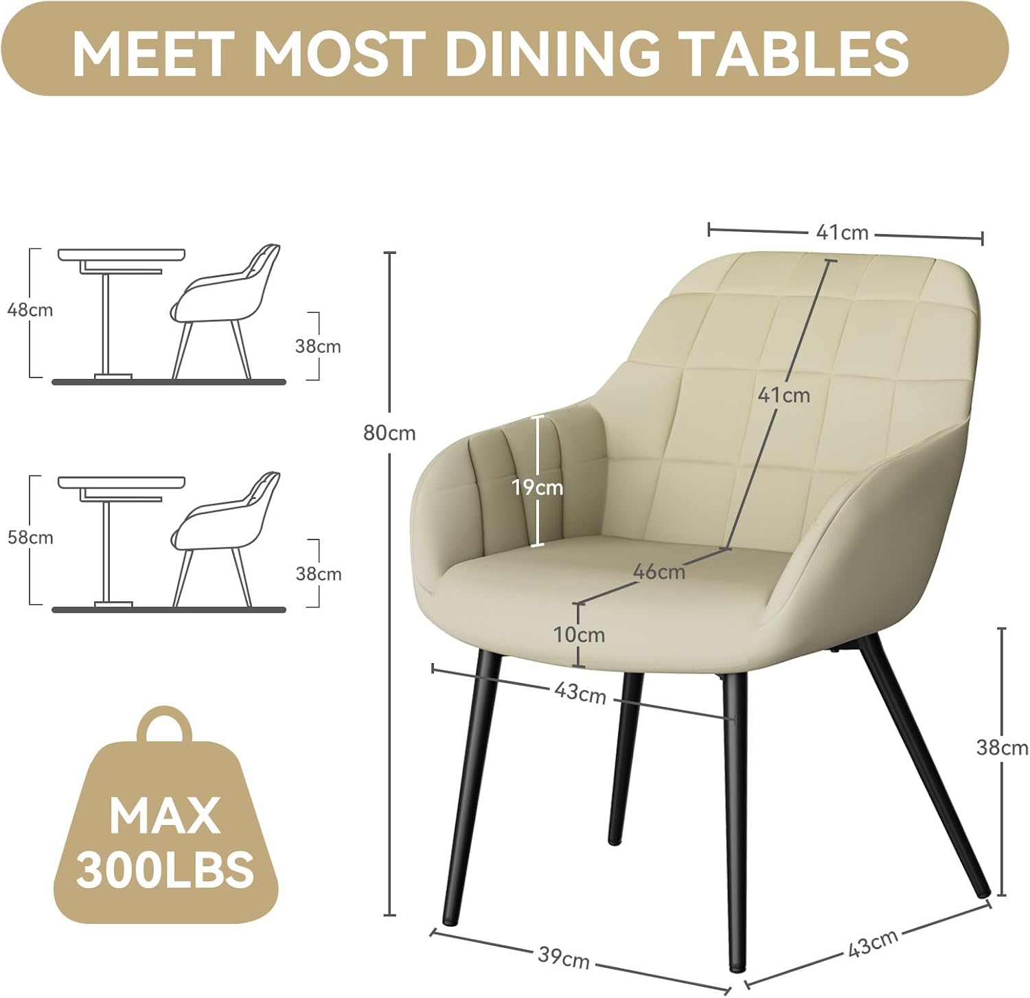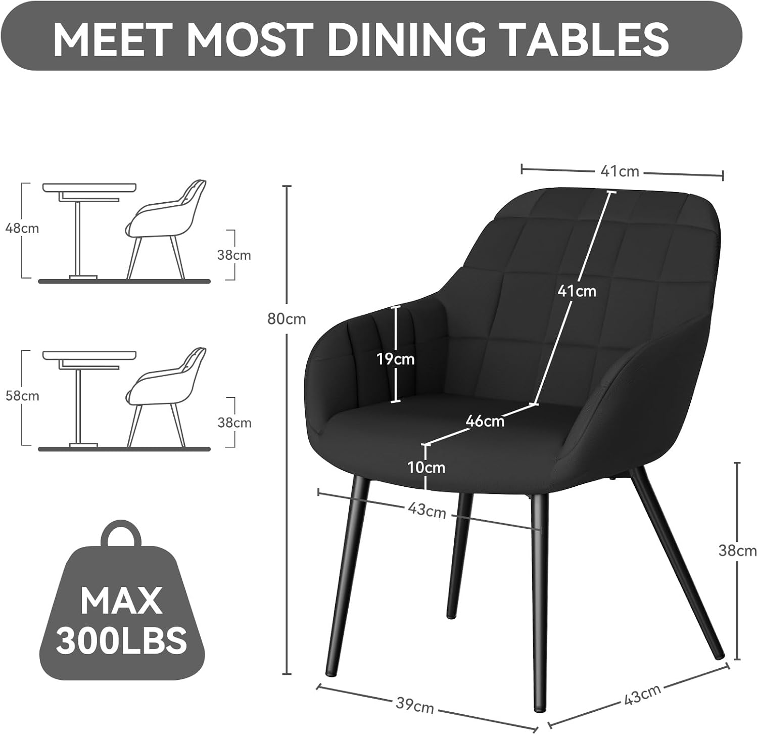 - Sturdy and durable: the padded seat is covered with faux leather, which is tear-resistant, easy to clean, non-fading and easy to wipe clean. The metal tube legs of the dining chair provide stable support for the seat and a high load capacity. Maximum load capacity: 150 kg